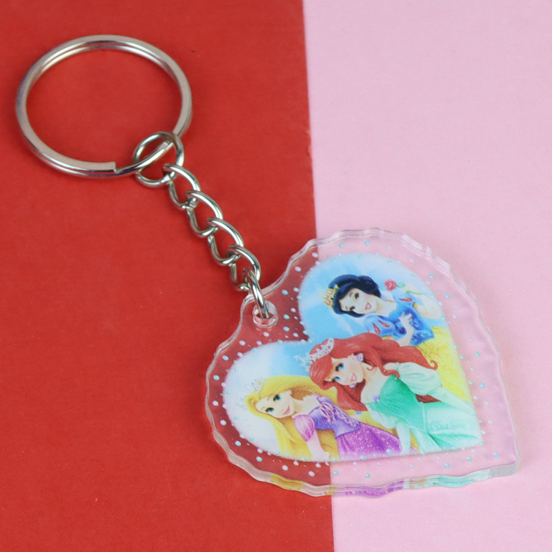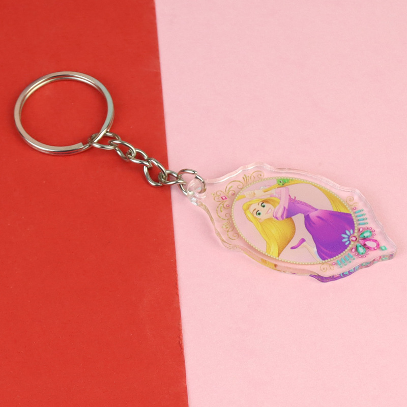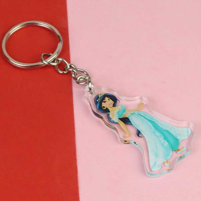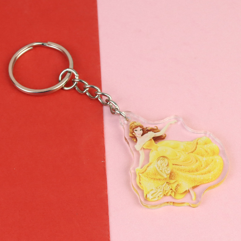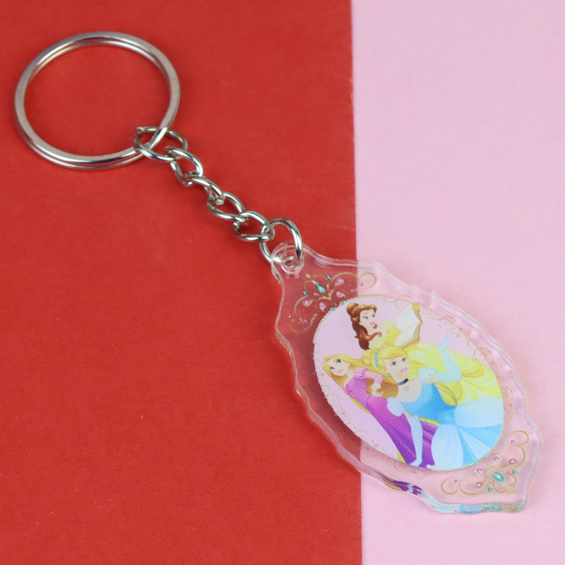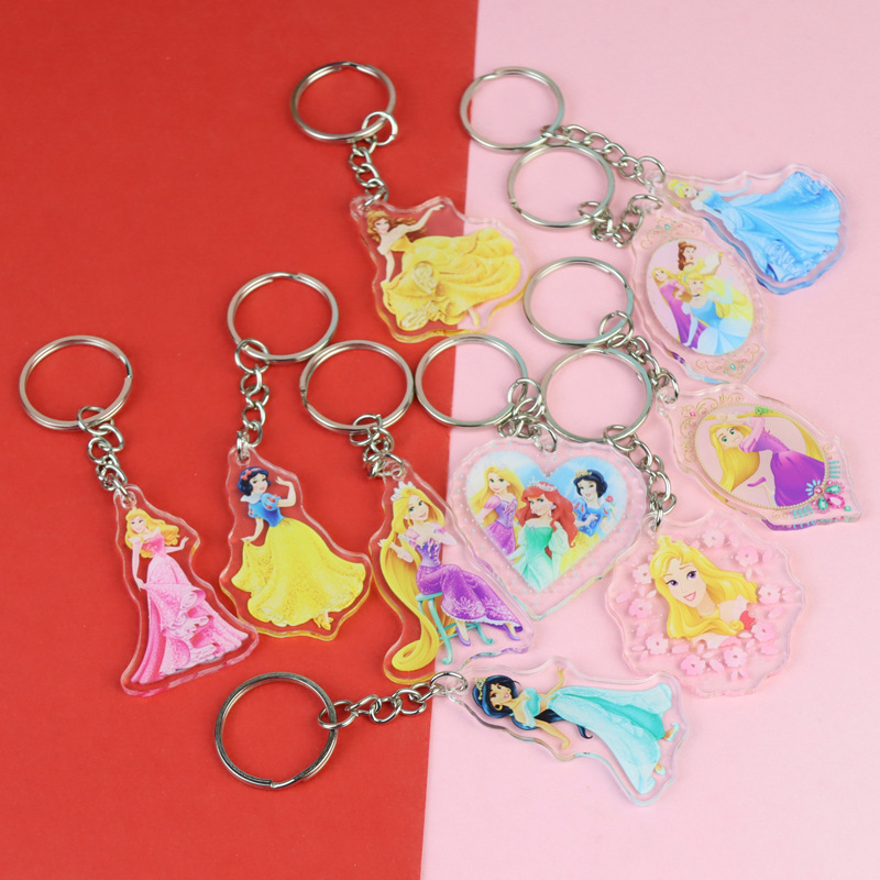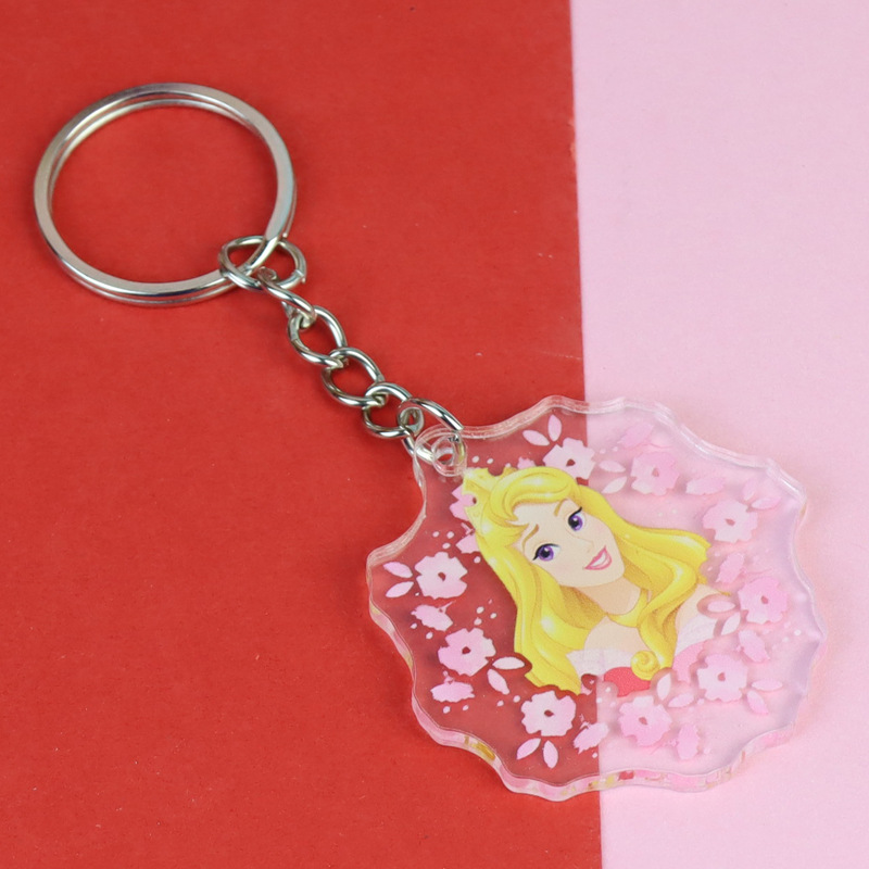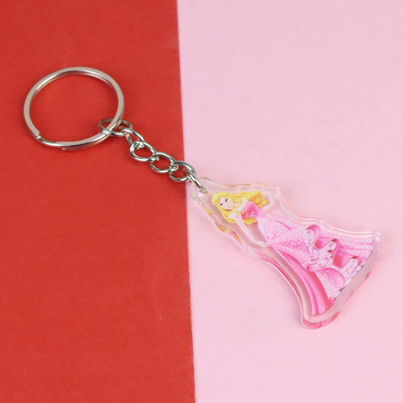 잠자는 아름다움 신데렐라 백설 공주 아크릴 키 체인 재고 도매 애니메이션 주변 학생 스쿨 백 펜던트스토어 가기