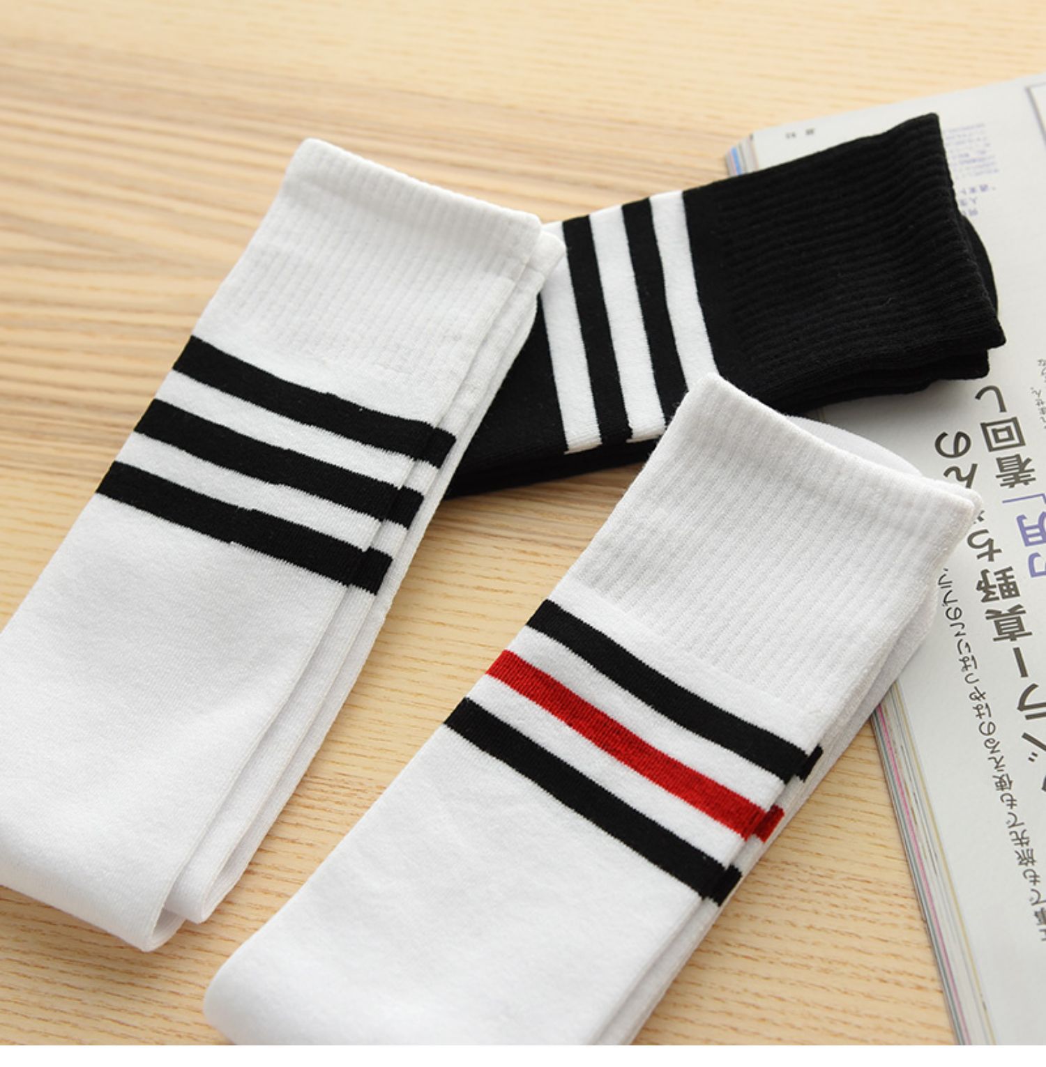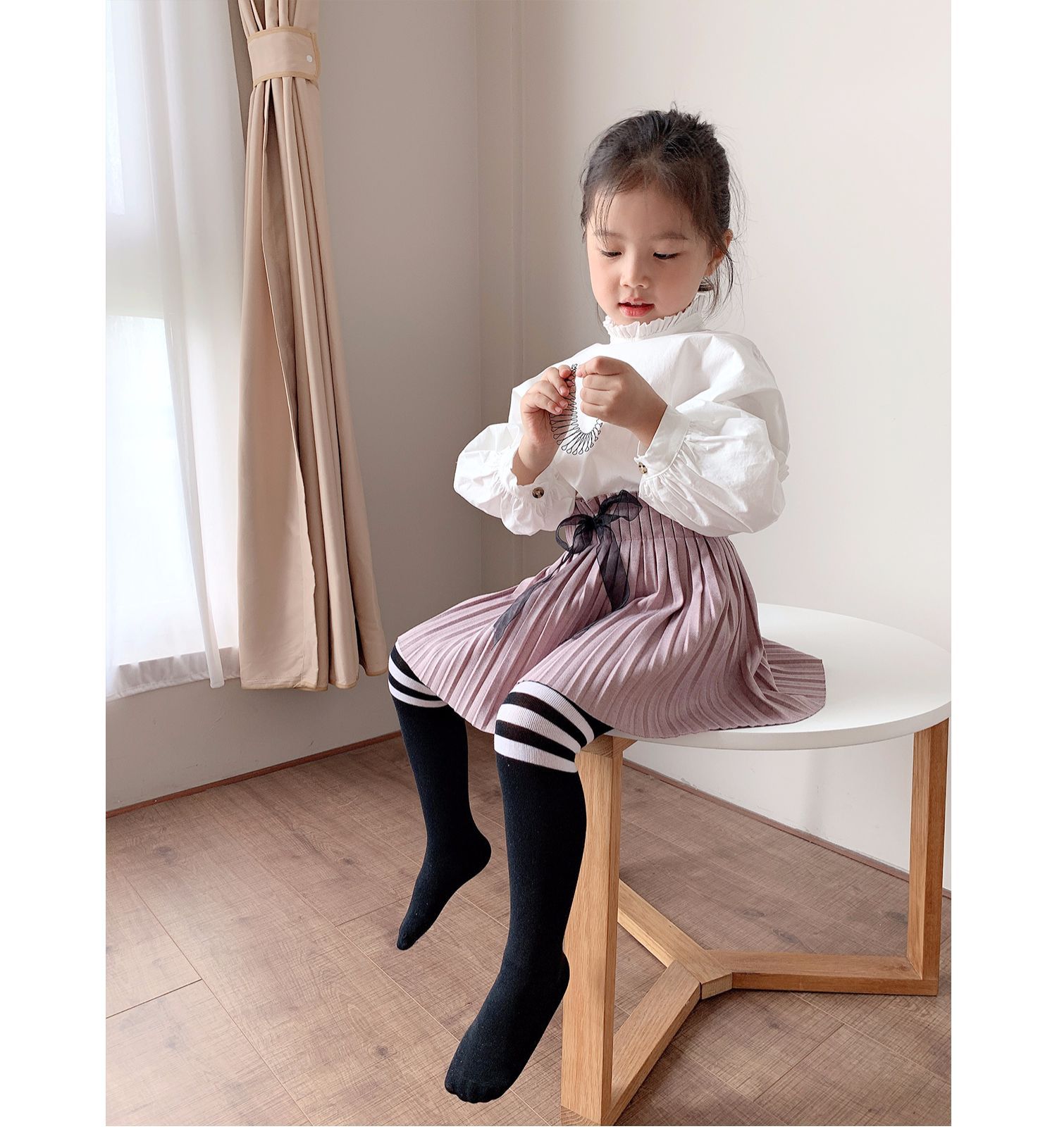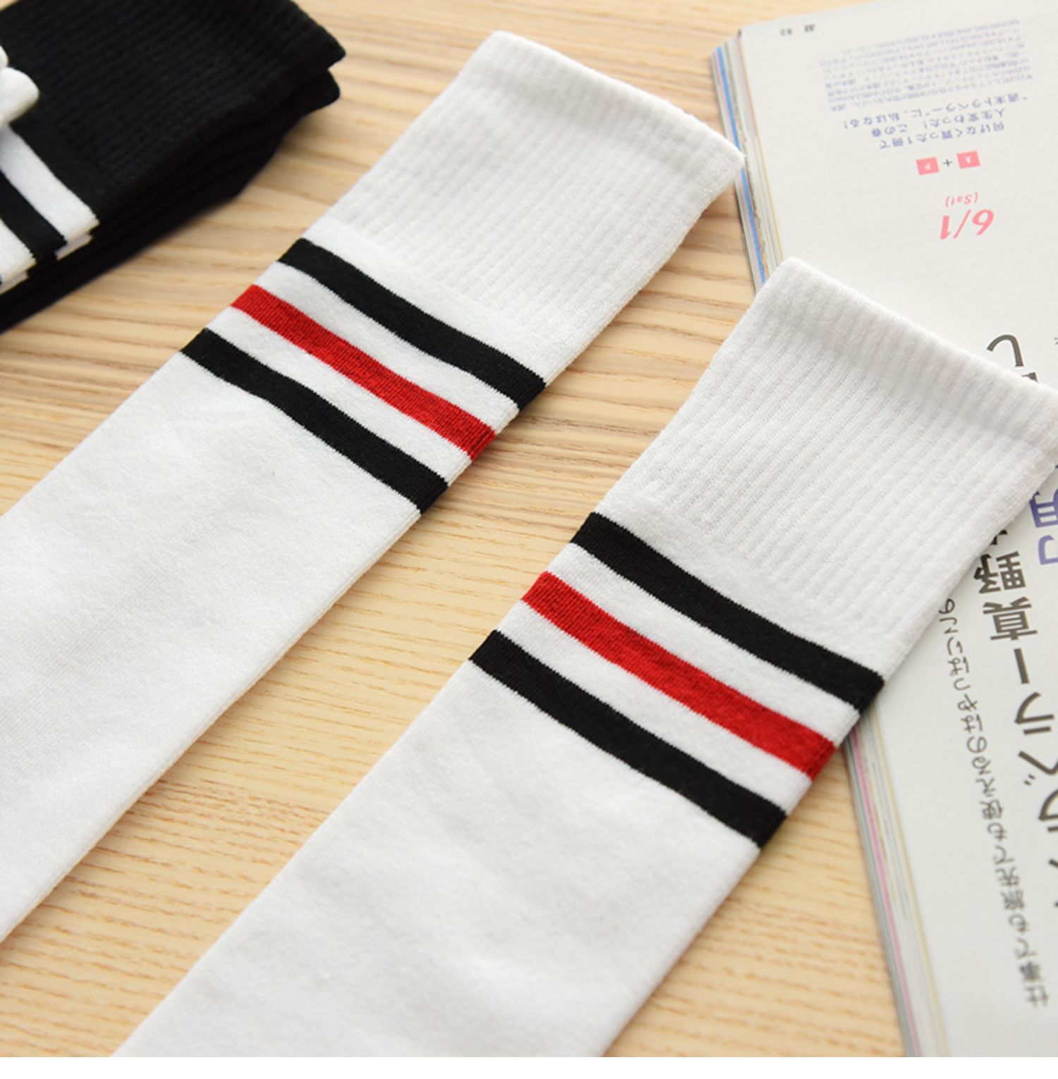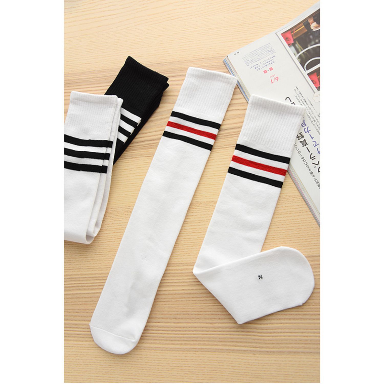 学院风满满的一款过膝袜 搭配短裤或短裙都不错