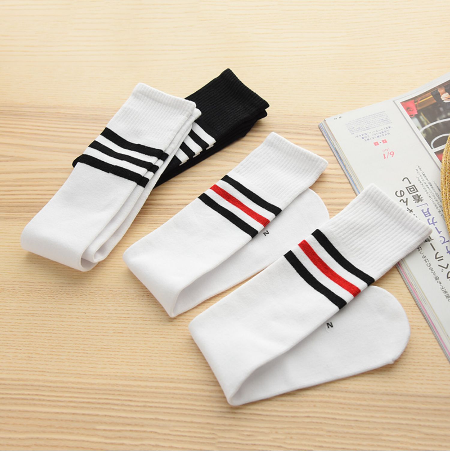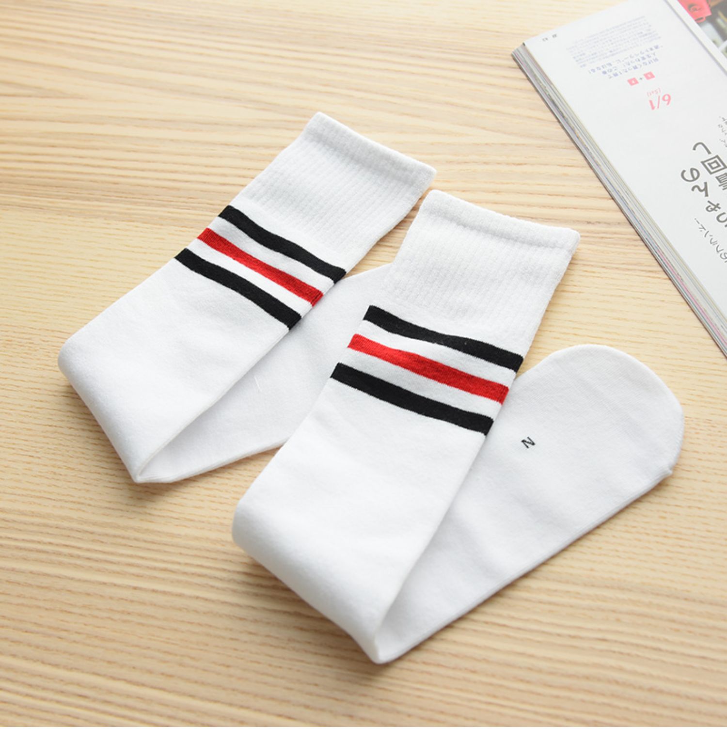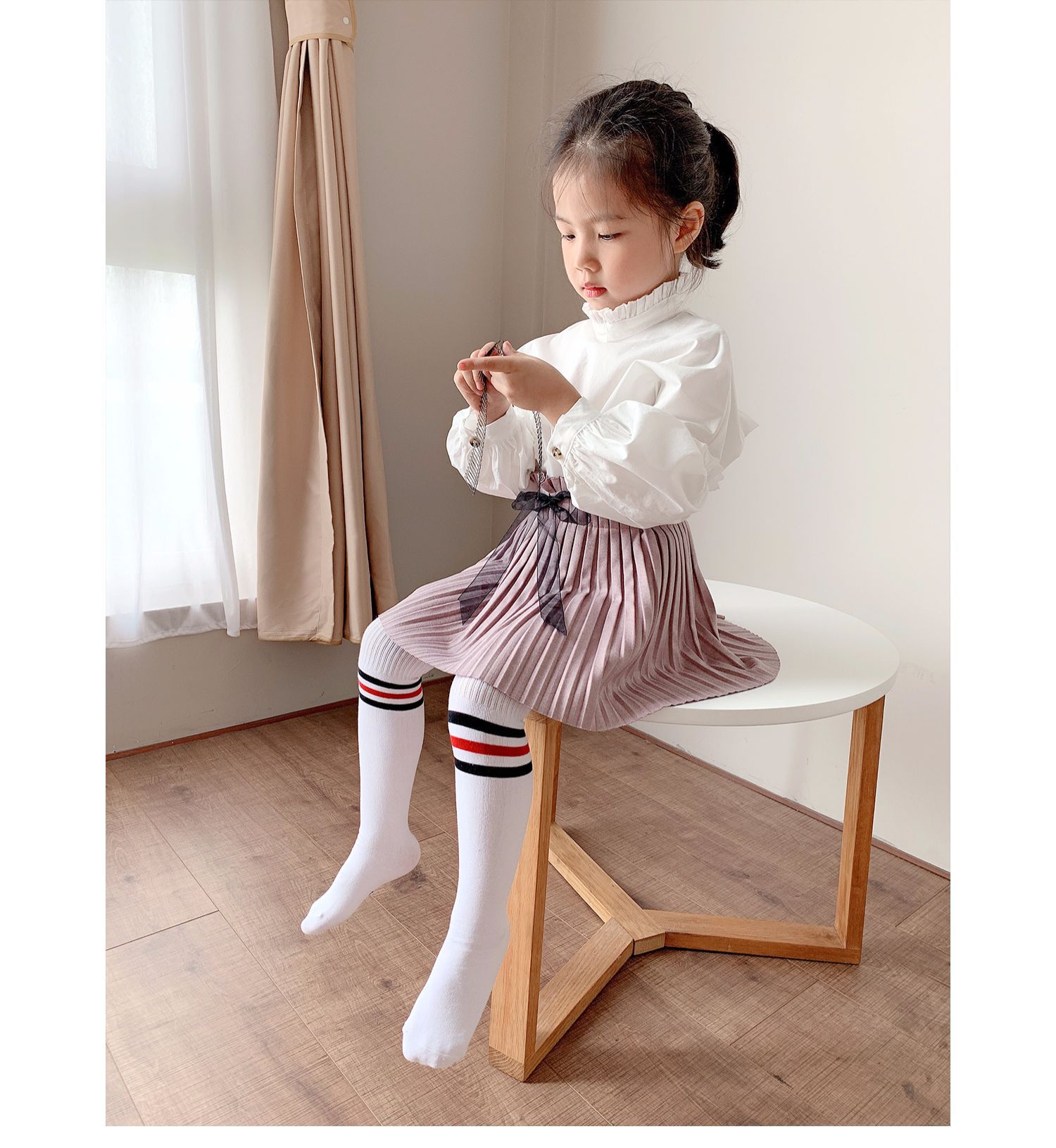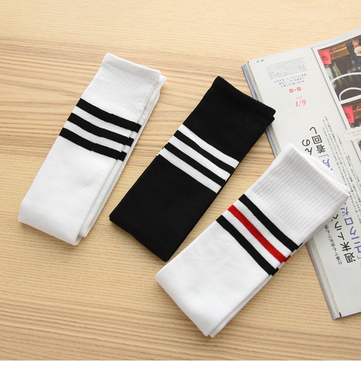 学院风满满的一款过膝袜 搭配短裤或短裙都不错
