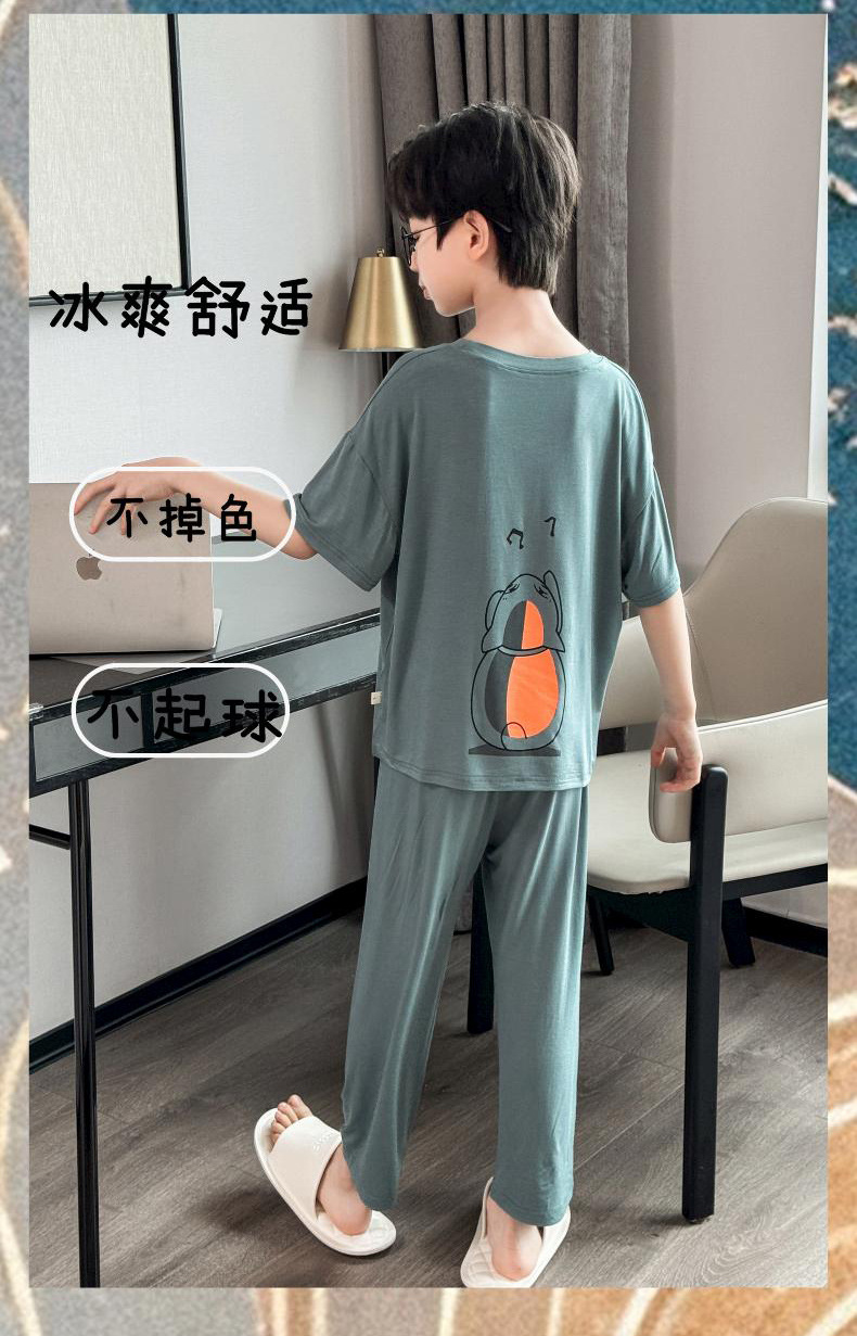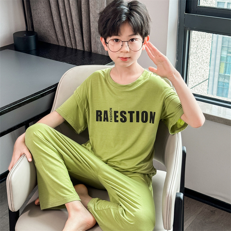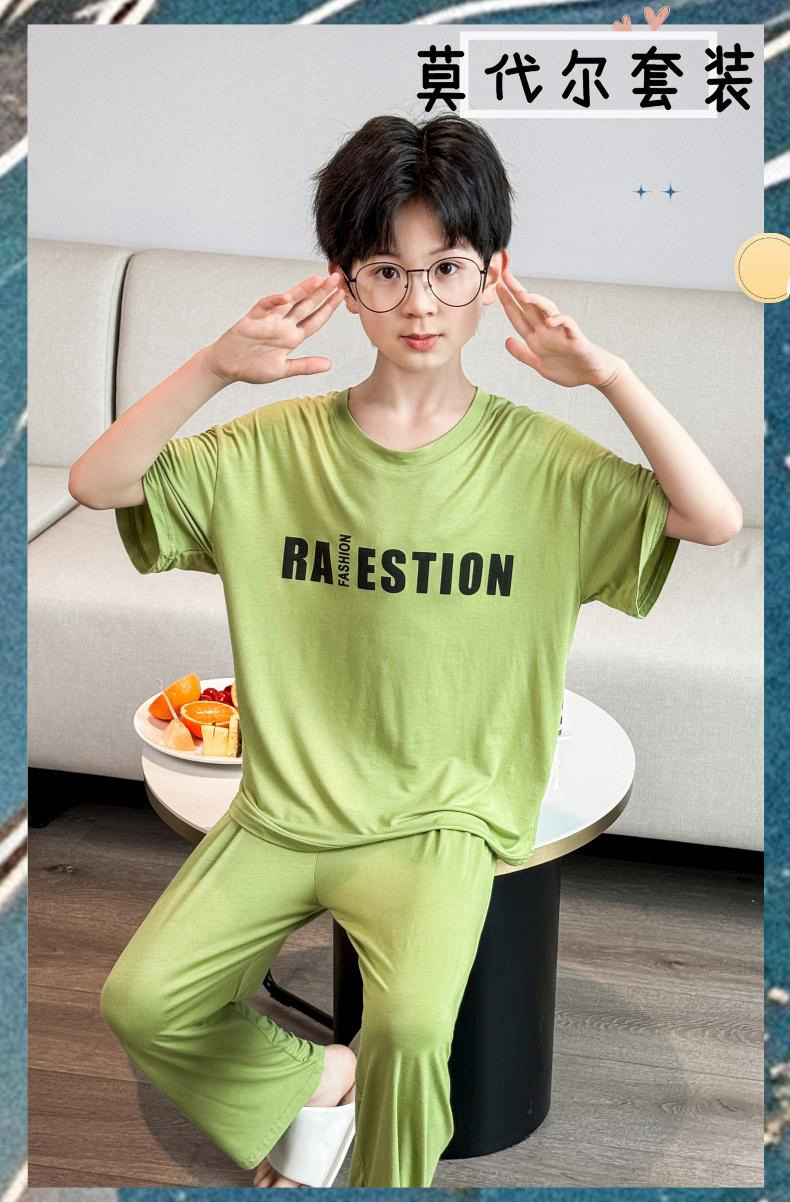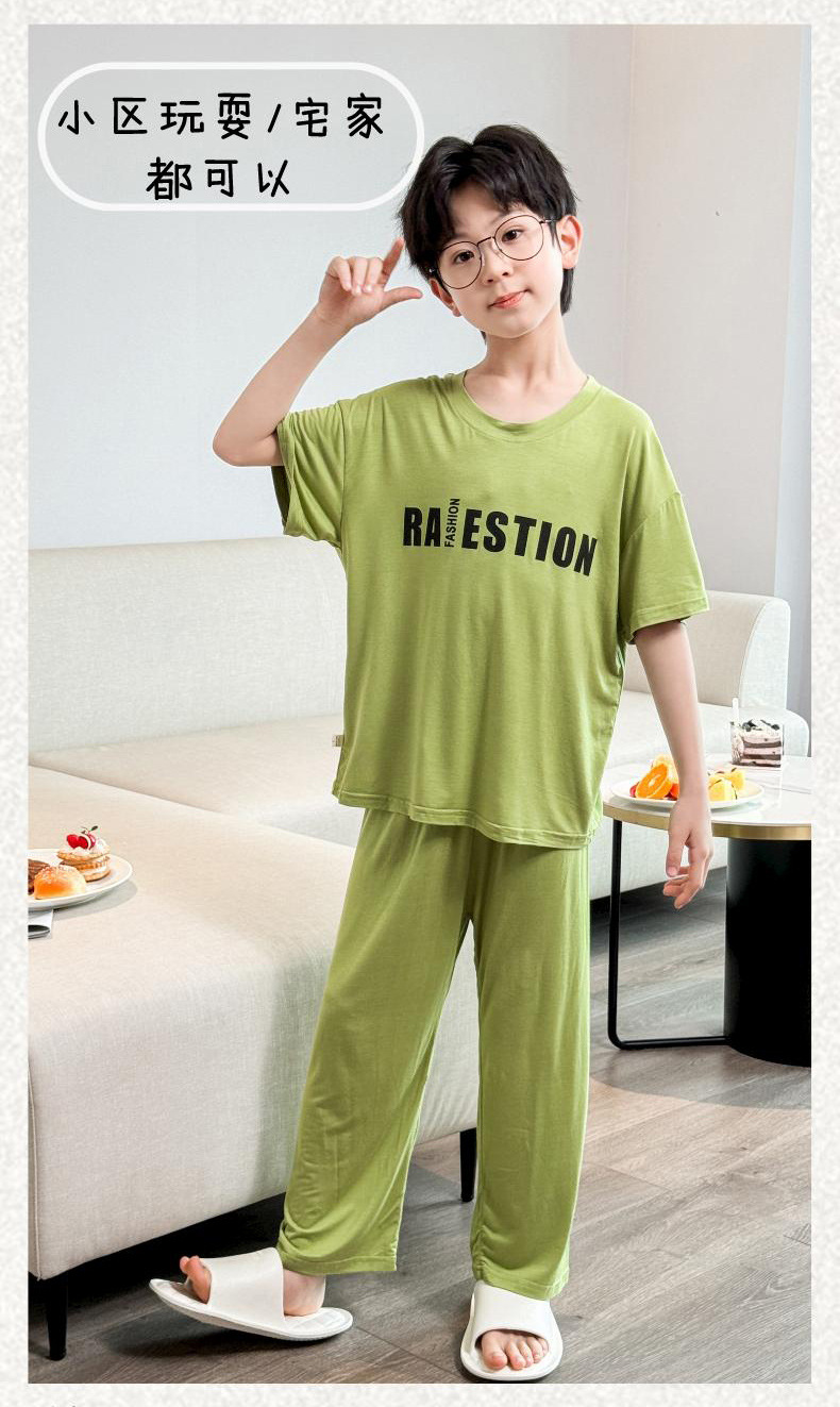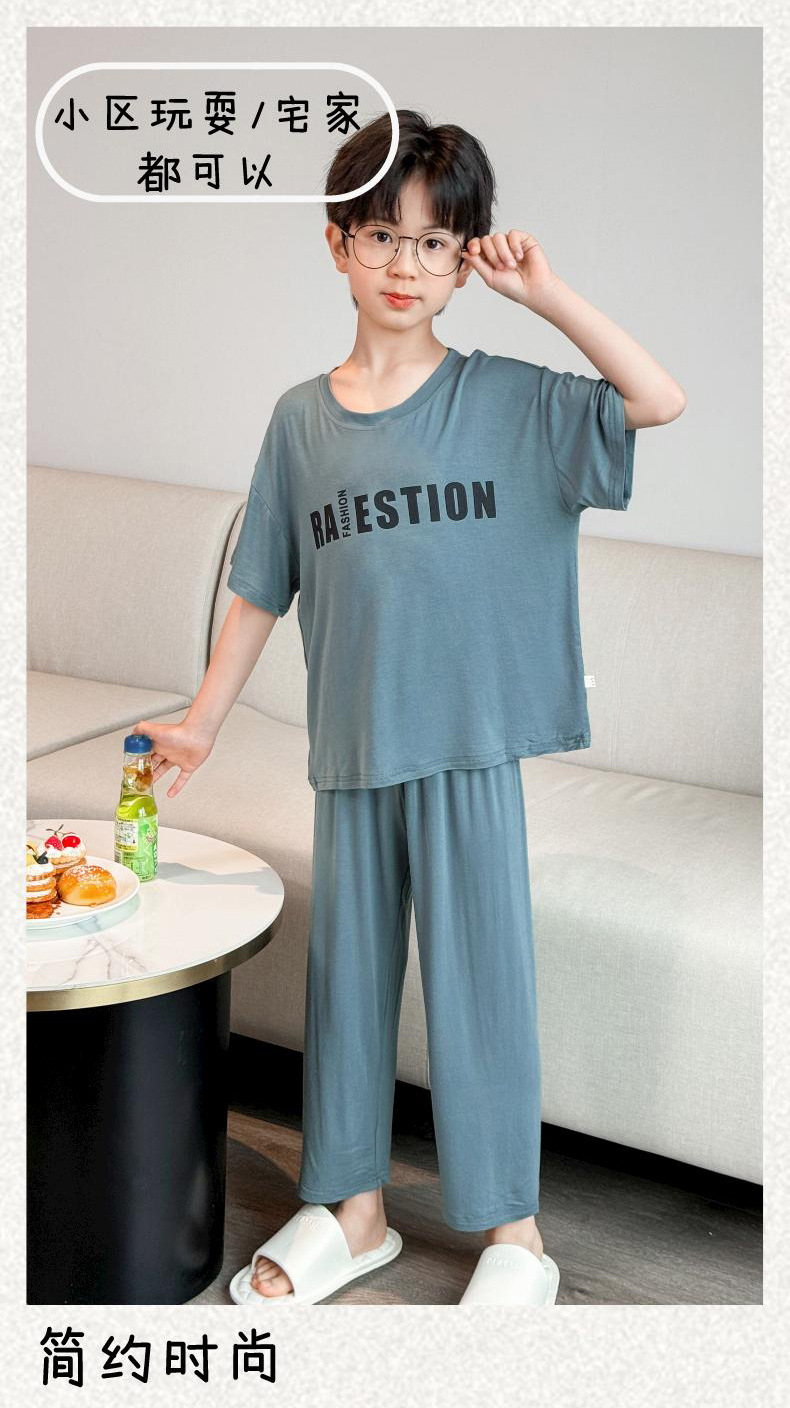 어린이 잠옷 2025년 신상 여름 얇은 남아용 모달 반팔 세트 남아용 여름 아이스 실크 에어컨 의류스토어 가기