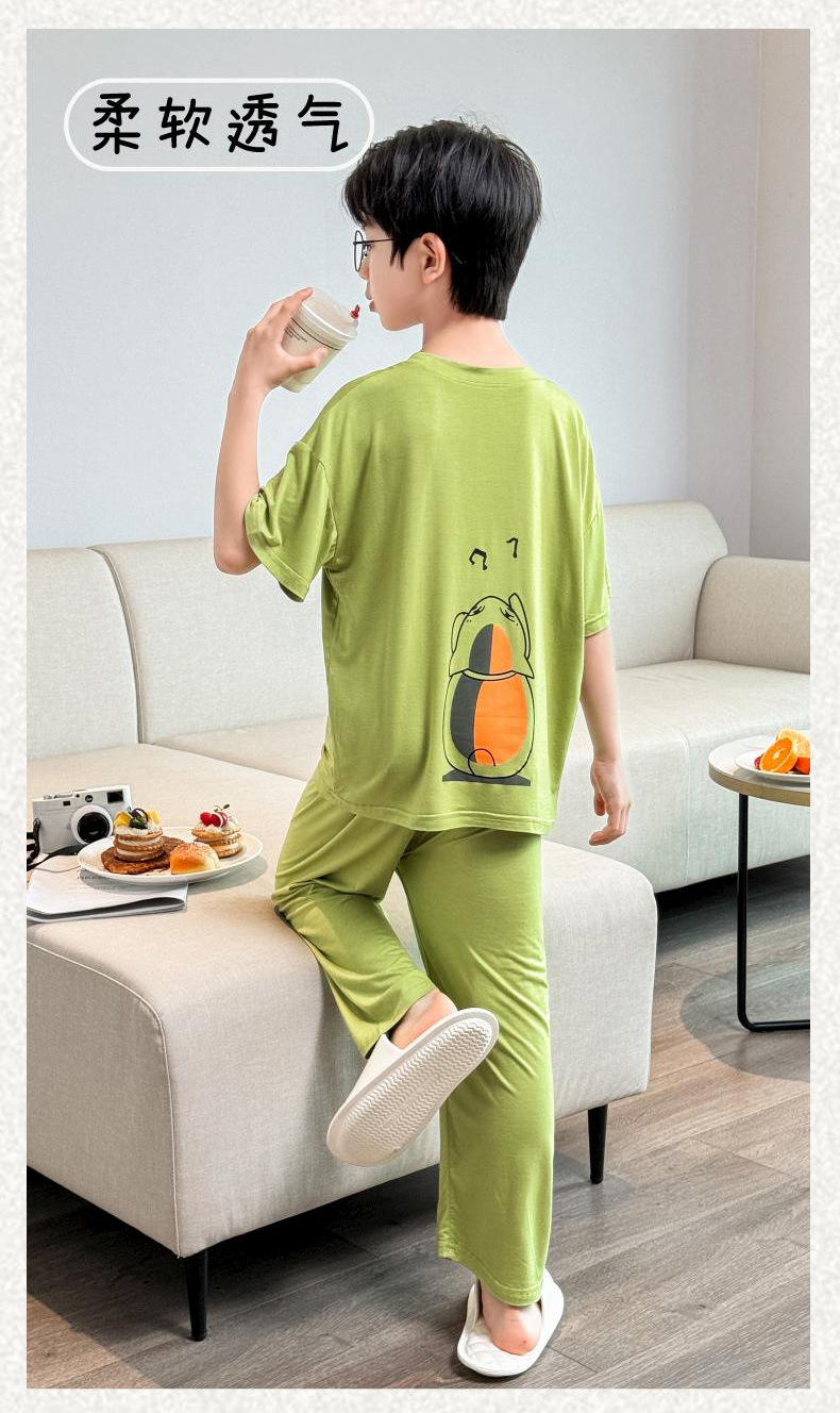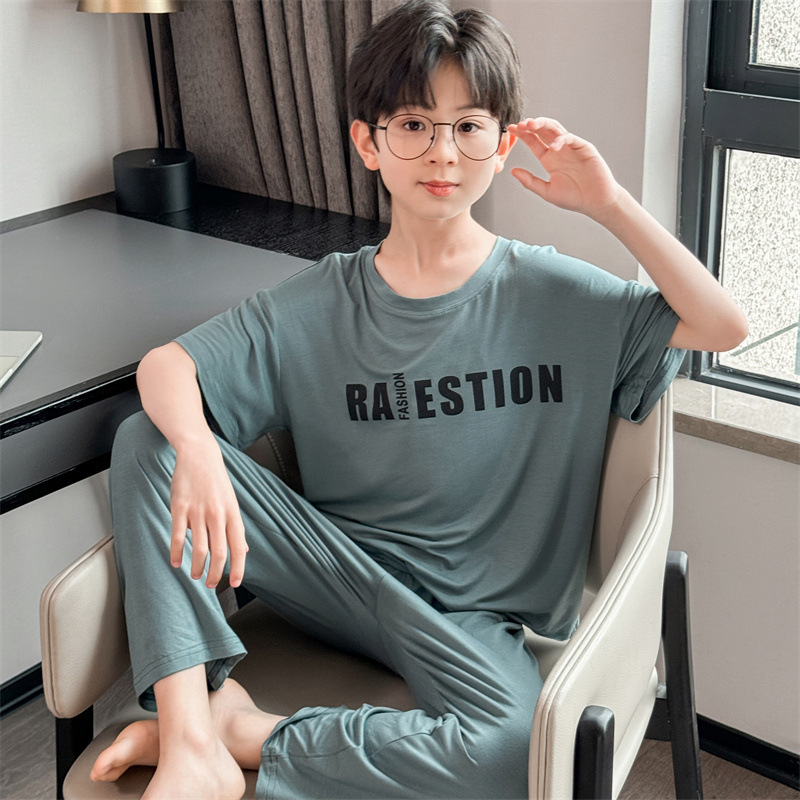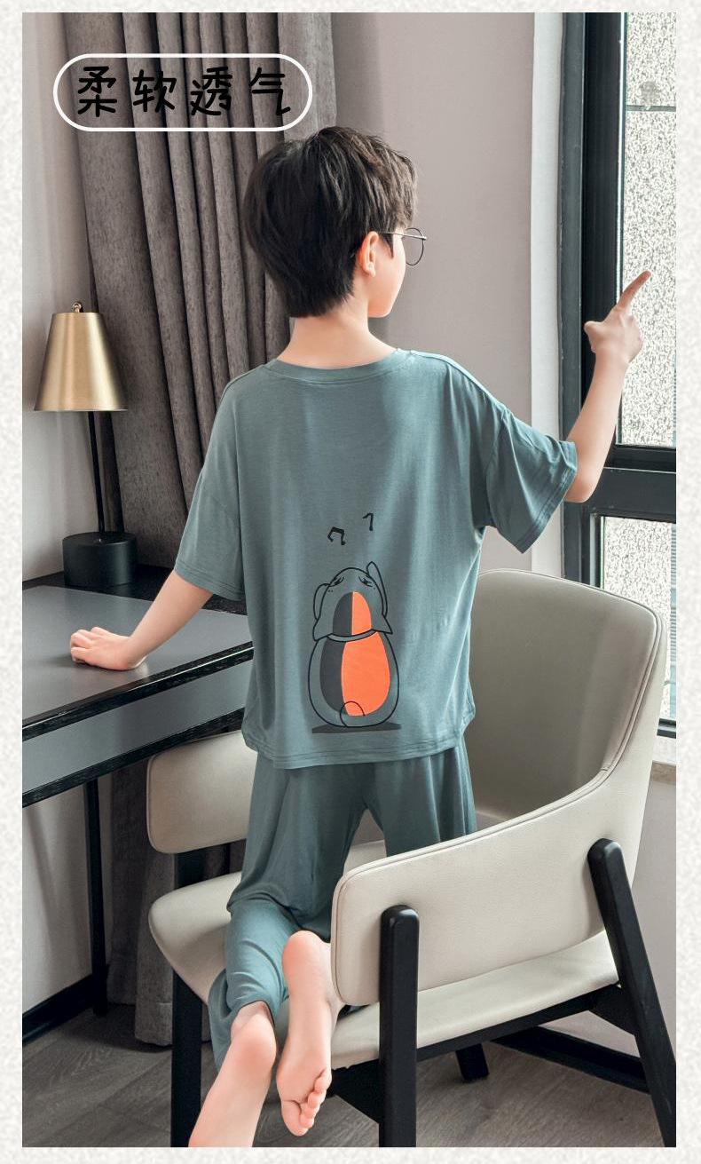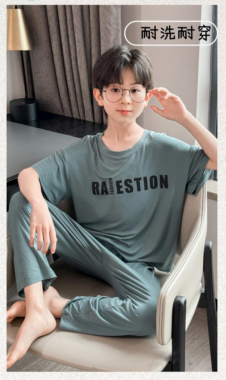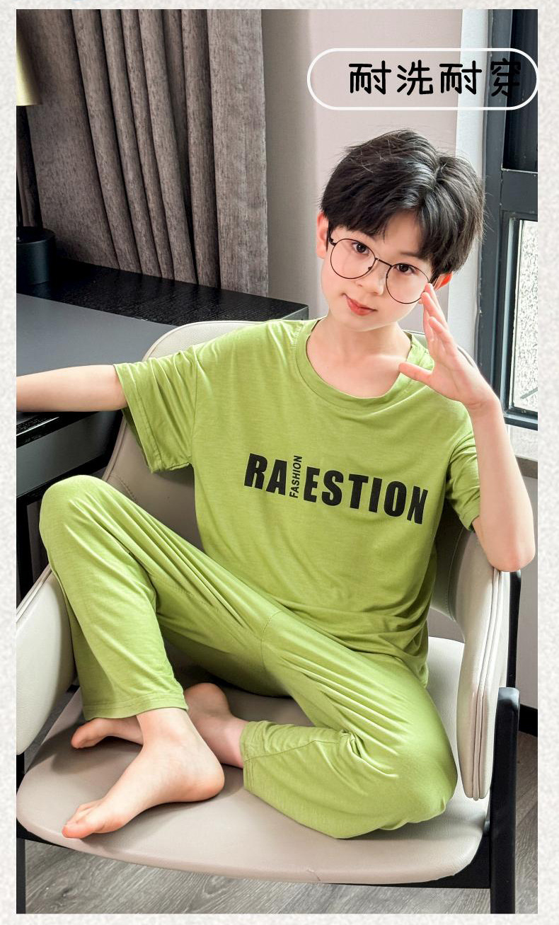 어린이 잠옷 2025년 신상 여름 얇은 남아용 모달 반팔 세트 남아용 여름 아이스 실크 에어컨 의류스토어 가기