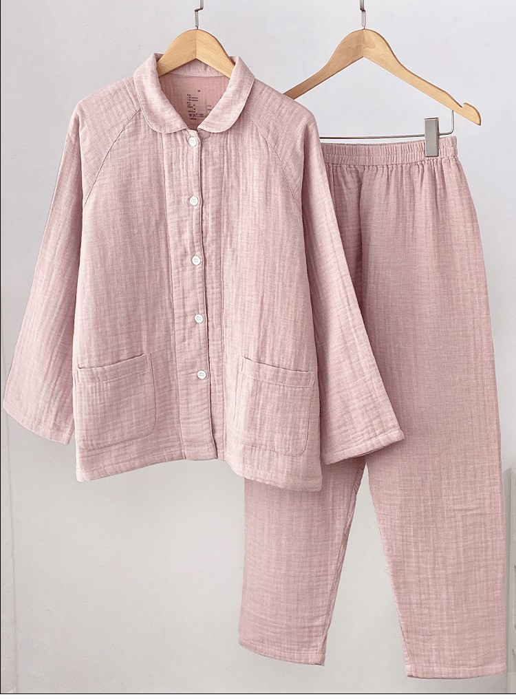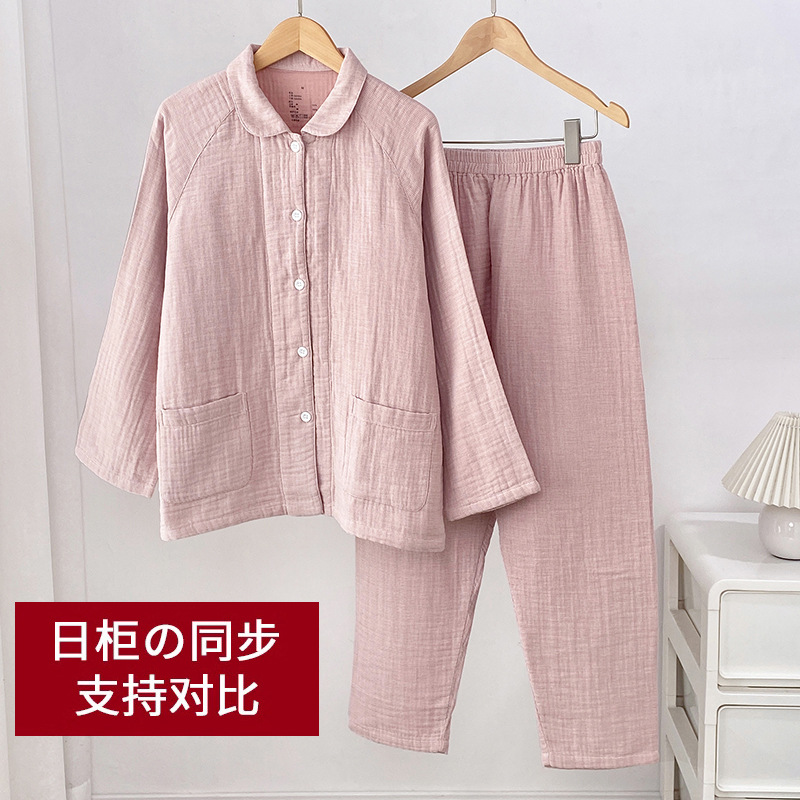 MUJI 일본식 퓨어 코튼 4 층 거즈 파자마 여성의 봄과 가을 긴팔 홈 의류 남성용 의류스토어 가기
