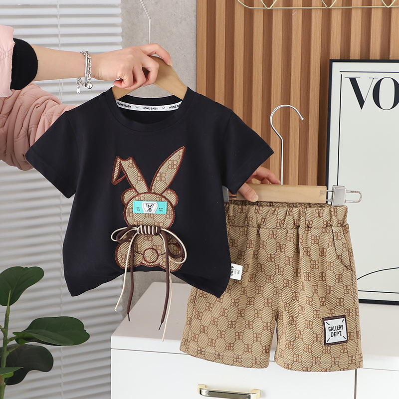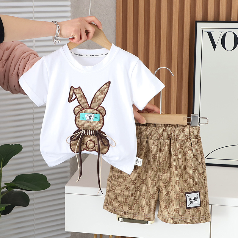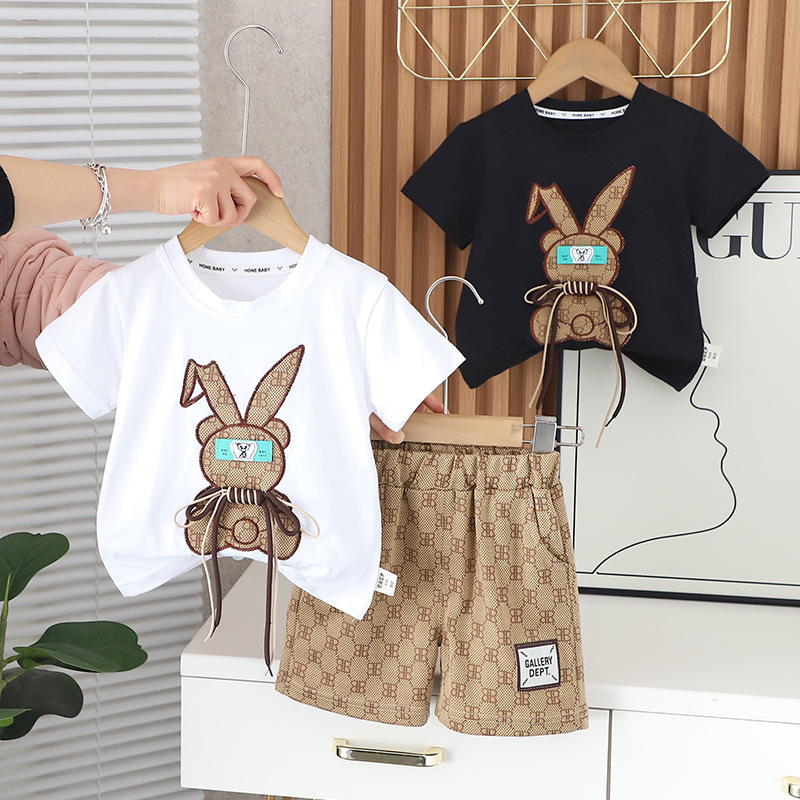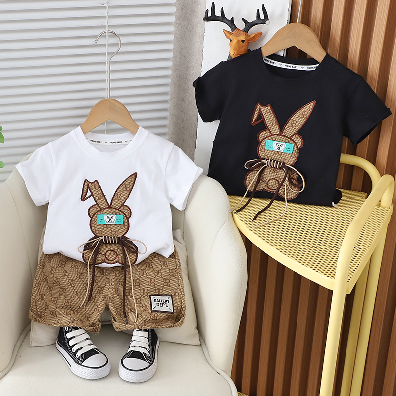 2024 소년 여름 세트 새로운 어린이 반팔 어린이 여름 소년 아기의 여름 서양식 유행 옷