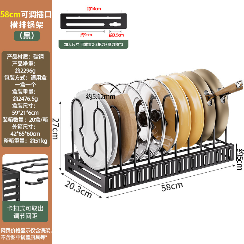 • 58cm 조정 가능한 소켓 수평 행 냄비 랙 (검정)