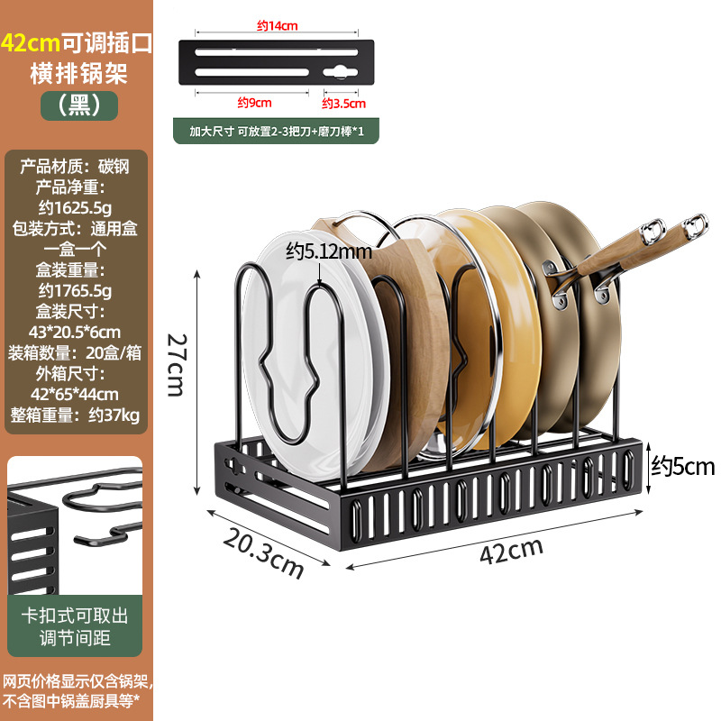 • 42cm 조정 가능한 소켓 수평 행 냄비 랙 (검정)