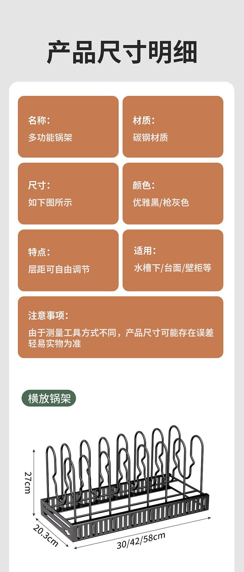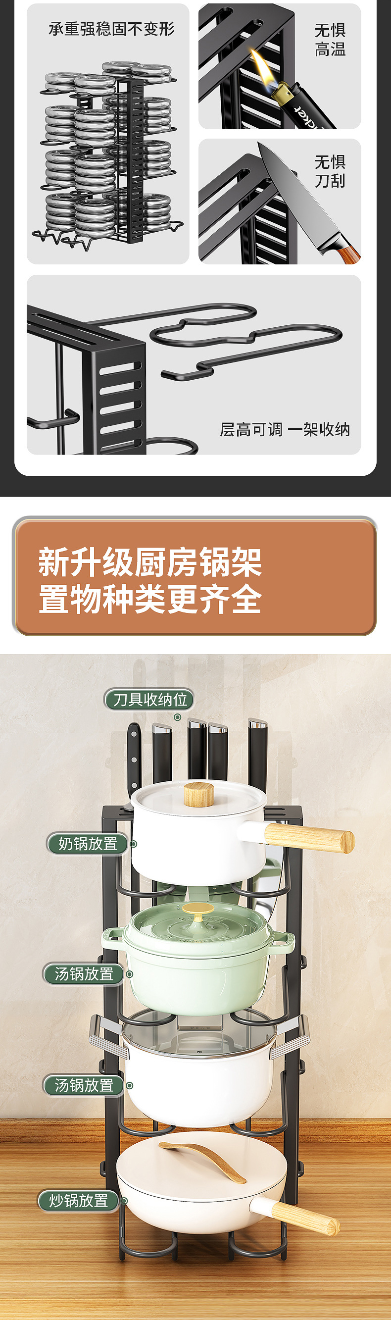 铁艺厨房置物架可调节收纳多层厨具砧板菜板锅盖锅架收纳用品