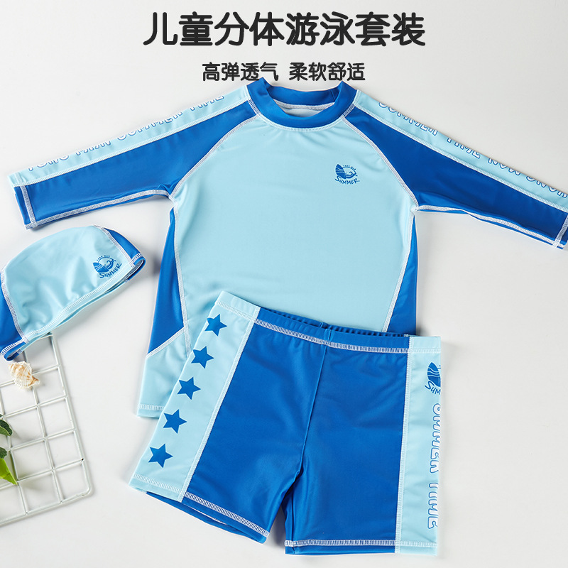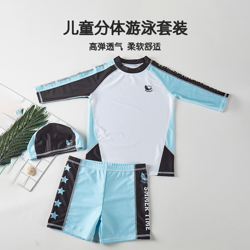 어린이 수영복 분할 긴 소매 태양 보호 수영복 수영 트렁크 학생 수영복 큰 아이 소년 소녀를위한 빠른 건조 학교 수영복 세트
