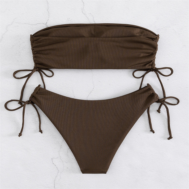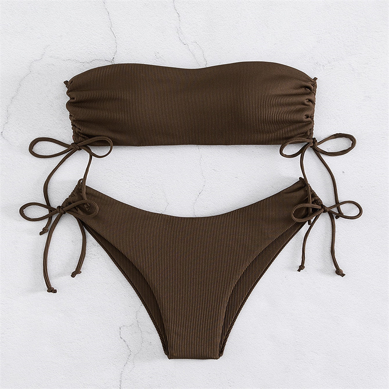 2024 새로운 유럽과 미국의 대외 무역 분할 튜브 탑 비키니 수영복 여성 솔리드 컬러 섹시한 여성 수영복 다색 수영복