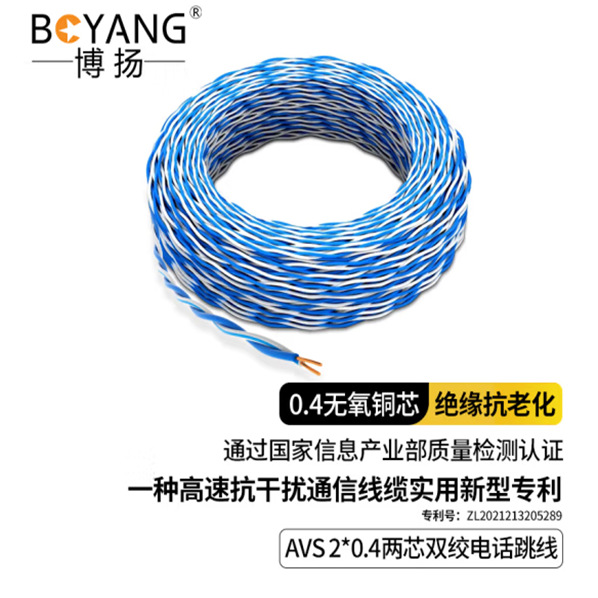 博扬 两芯双绞电话跳线 AVS2*0.4无氧铜蓝白电话线缆 电信机房语音跳线 200米 BY-AVS-200*1 合格证*1