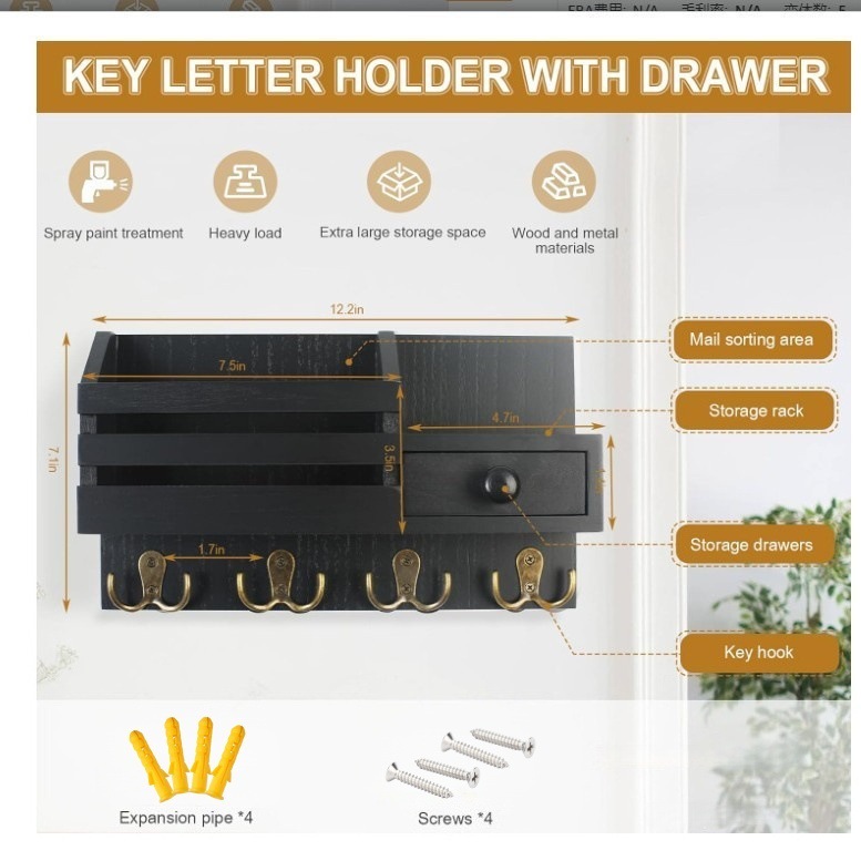 나무 벽 랙 홈 입구 키 배낭 옷걸이 벽 장착 편지 사진 엽서 보관 랙스토어 가기