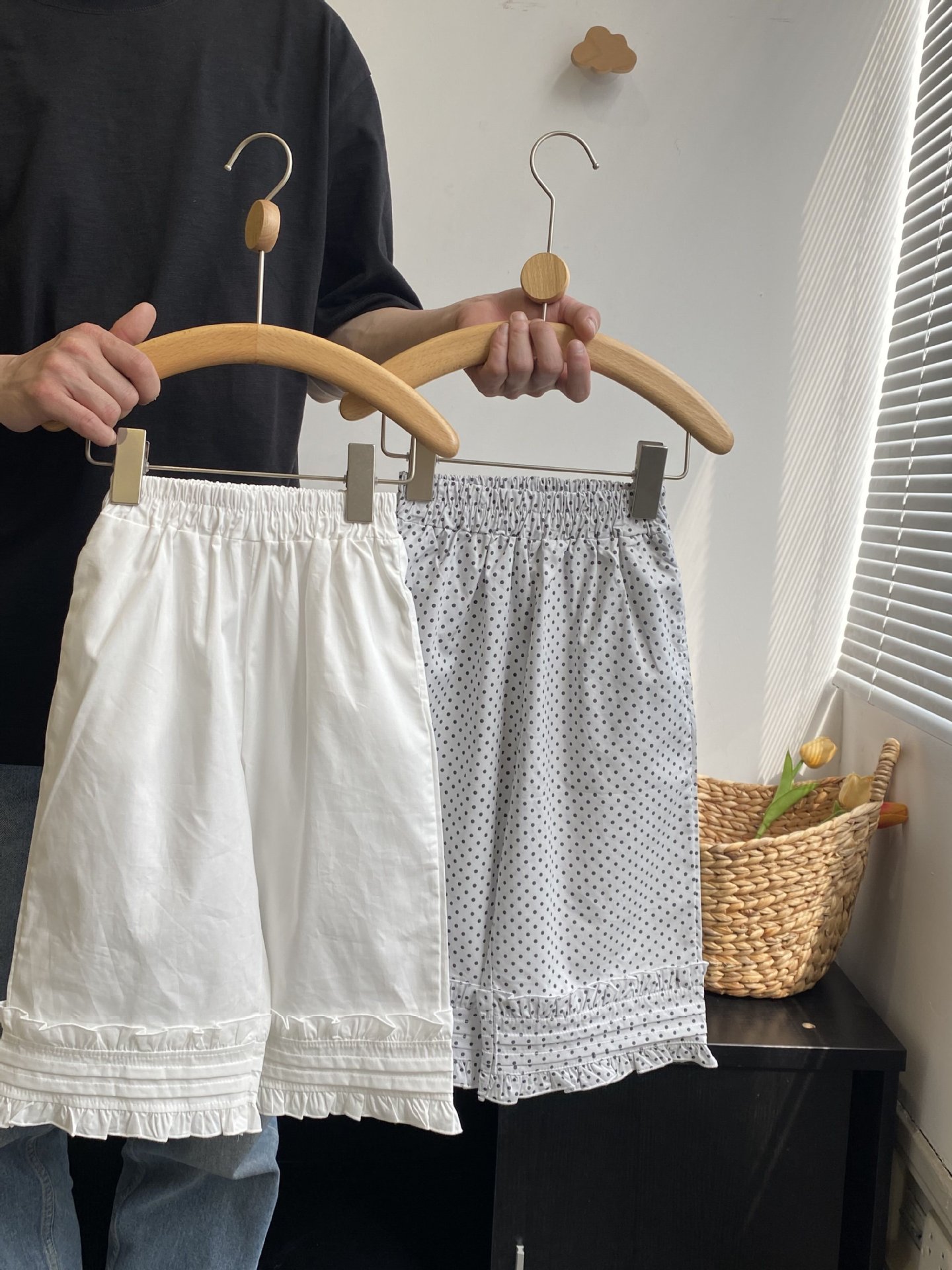 모리 바느질 레이스 화이트 반바지 소녀 2024 여름 디자인 감각 느슨한 캐주얼 느슨한 허리 바지스토어 가기