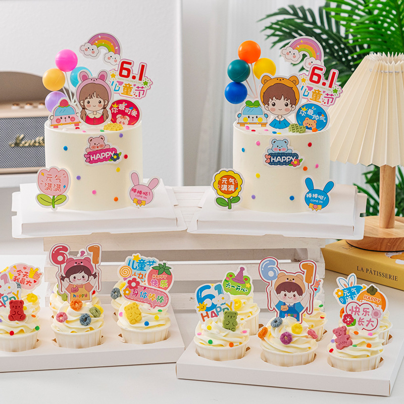 저작권 어린이 날 컵 케이크 장식 플러그인 귀여운 61 해피 풍선 소년과 소녀 휴일 카드스토어 가기