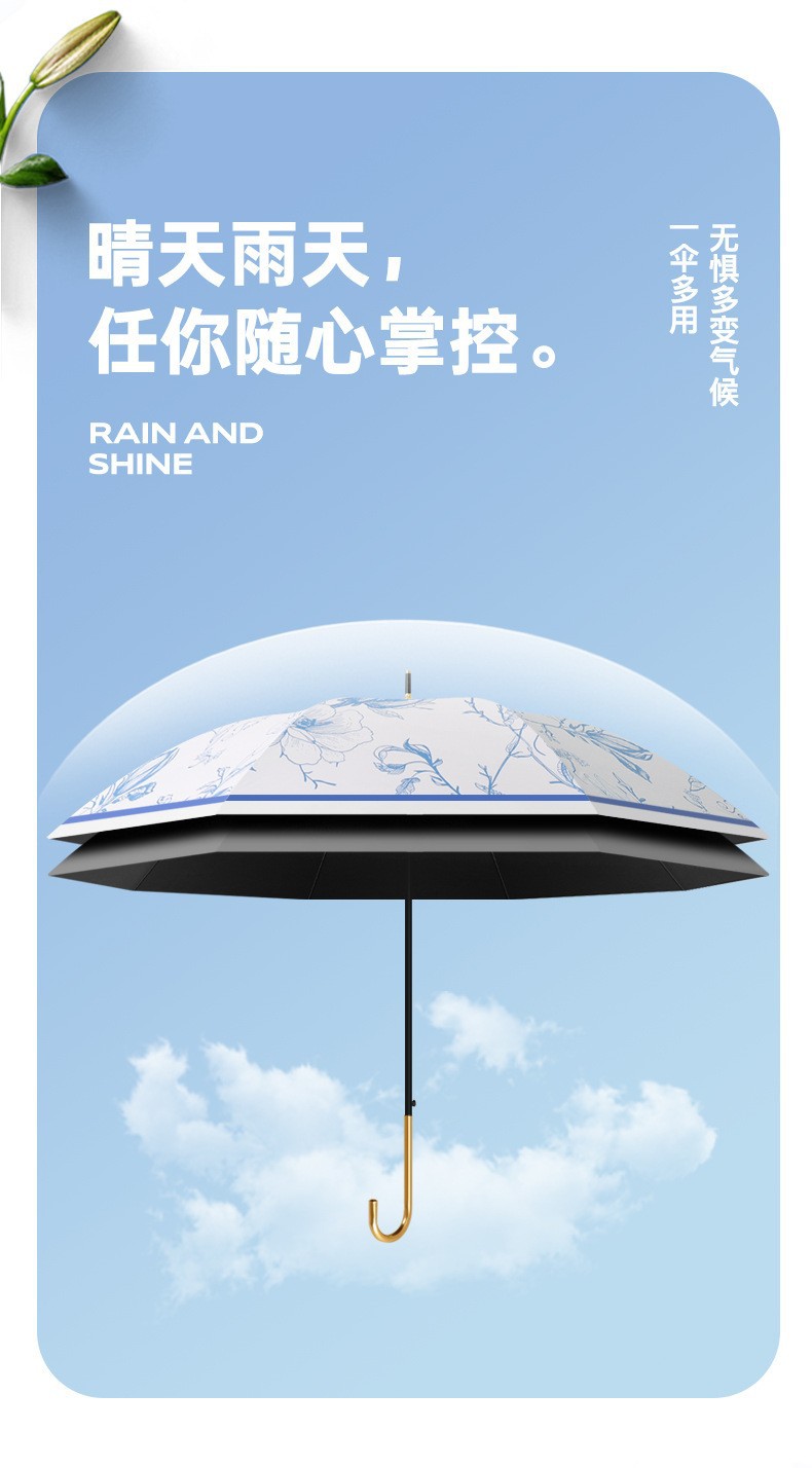 새로운 스타일 작은 신선한 스트레이트 로드 우산 블랙 고무 우산 긴 손잡이 양산 우산 남성과 여성을위한 비즈니스 황금 작은 곡선 손잡이 맑은 비 우산