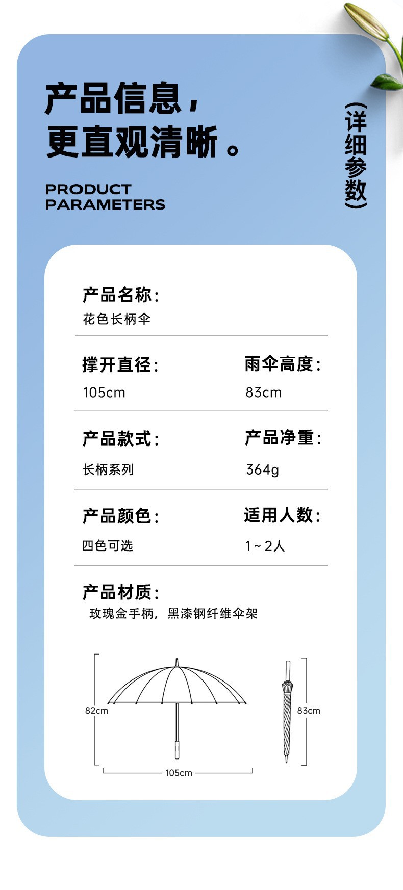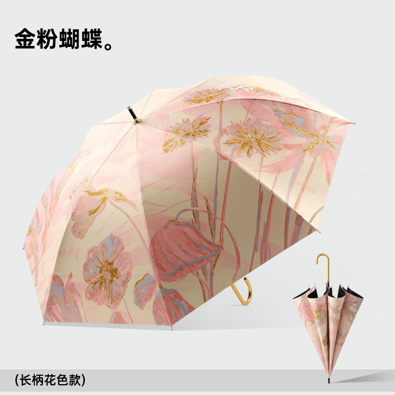 새로운 스타일 작은 신선한 스트레이트 로드 우산 블랙 고무 우산 긴 손잡이 양산 우산 남성과 여성을위한 비즈니스 황금 작은 곡선 손잡이 맑은 비 우산스토어 가기