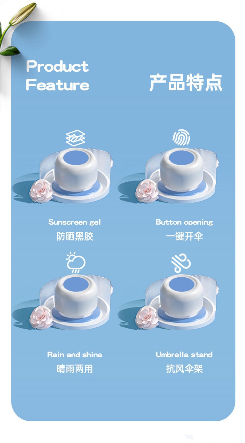 • 골드 파우더 나비 [8 뼈 스트레이트 로드 블랙 접착제 디지털 인쇄] 작은 골드 후크