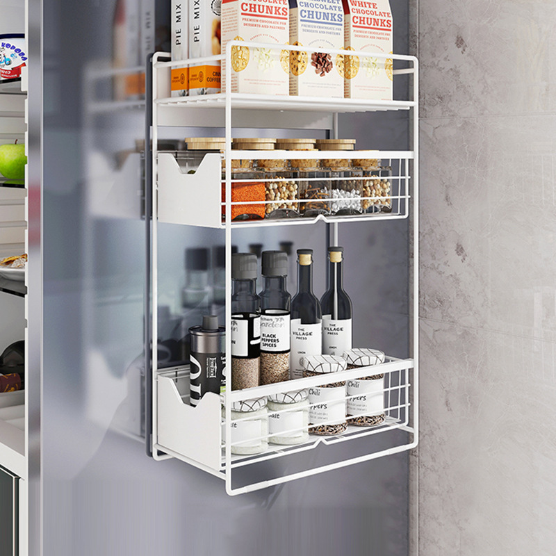 직접 마그네틱 냉장고 랙 다기능 냉장고 세탁기 스토리지 랙 설치 무료 풀아웃 다층 스토리지 랙