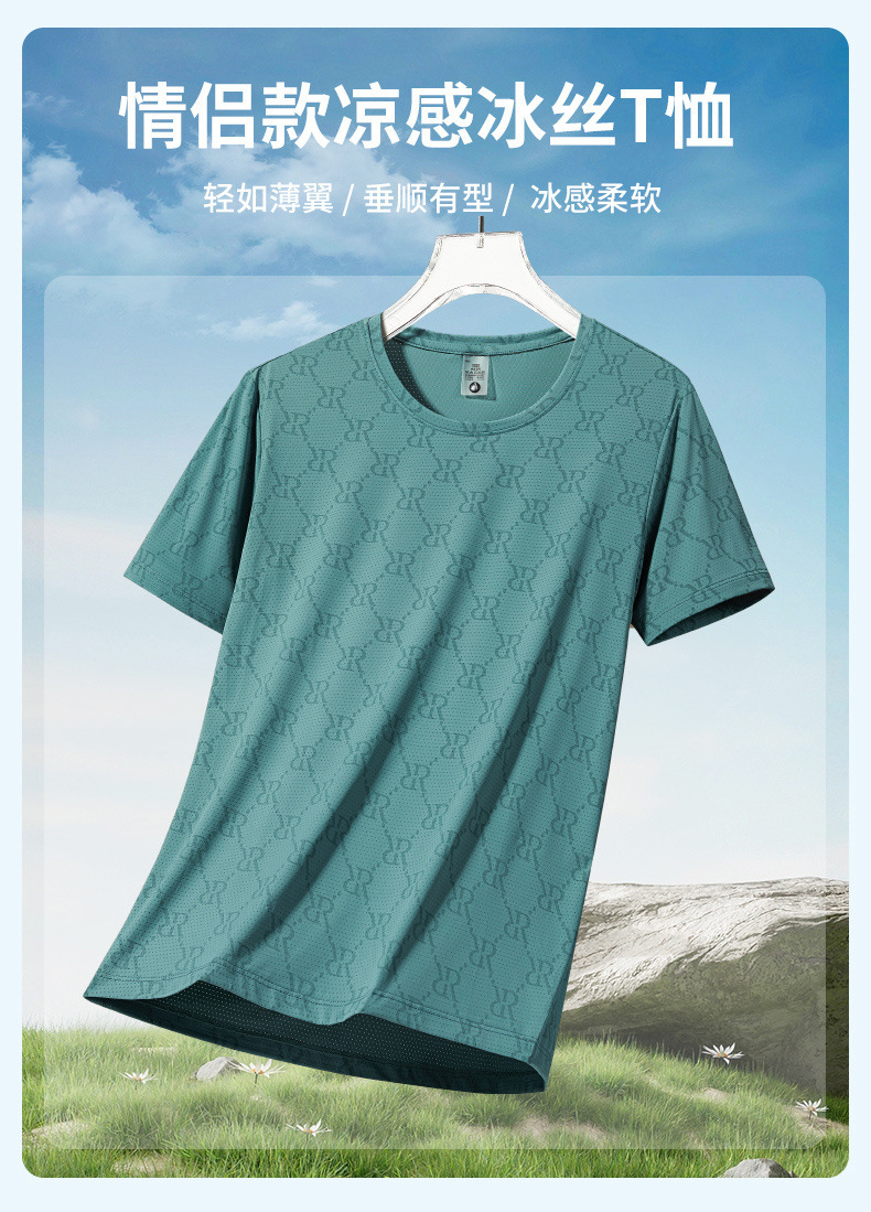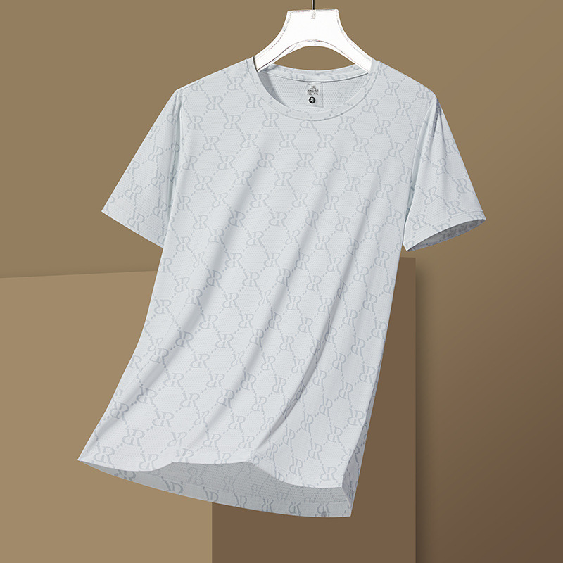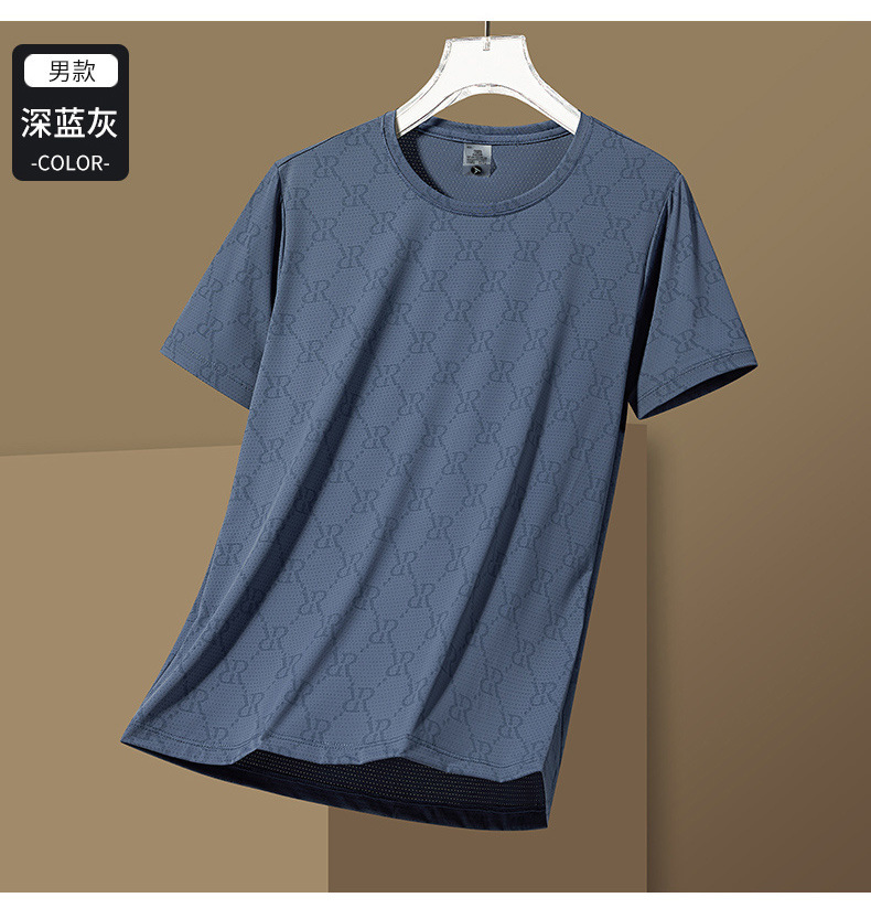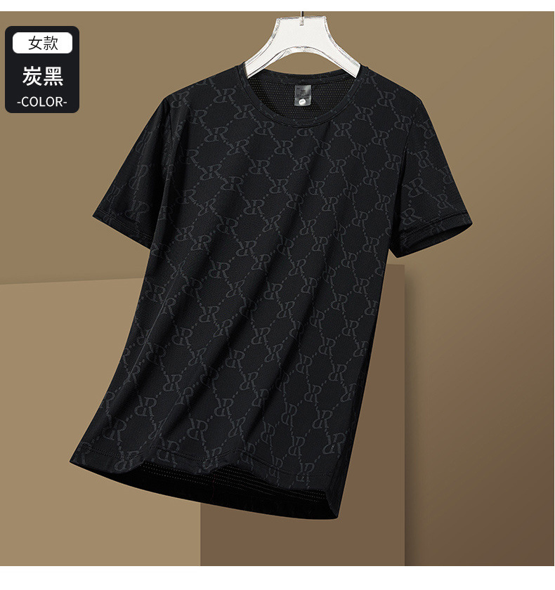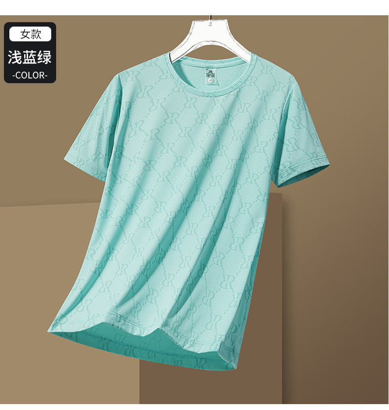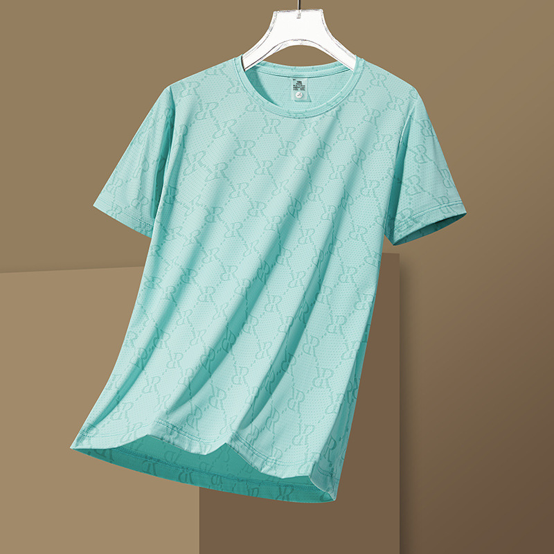 아이스 실크 빠른 건조 티셔츠 남자 여름 새로운 유행 자카드 느슨한 플러스 사이즈 티셔츠 커플 스포츠 캐주얼 탑스토어 가기