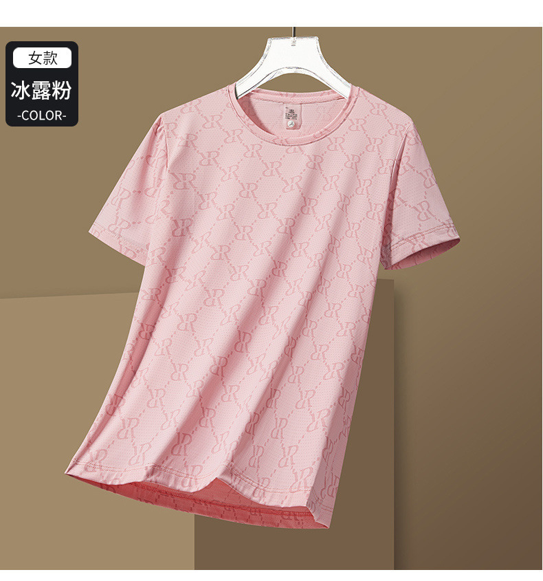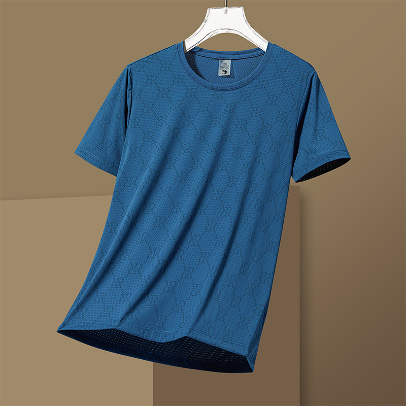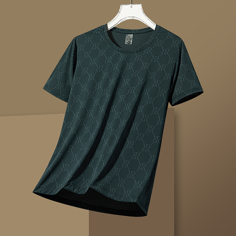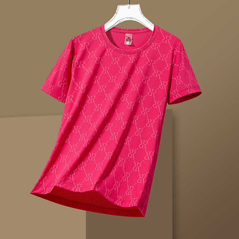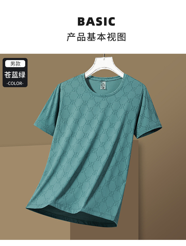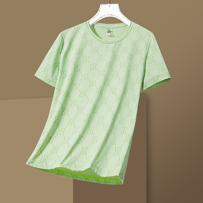 아이스 실크 빠른 건조 티셔츠 남자 여름 새로운 유행 자카드 느슨한 플러스 사이즈 티셔츠 커플 스포츠 캐주얼 탑스토어 가기