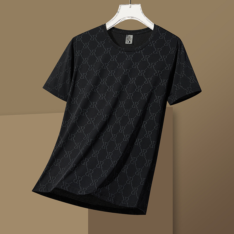 아이스 실크 빠른 건조 티셔츠 남자 여름 새로운 유행 자카드 느슨한 플러스 사이즈 티셔츠 커플 스포츠 캐주얼 탑