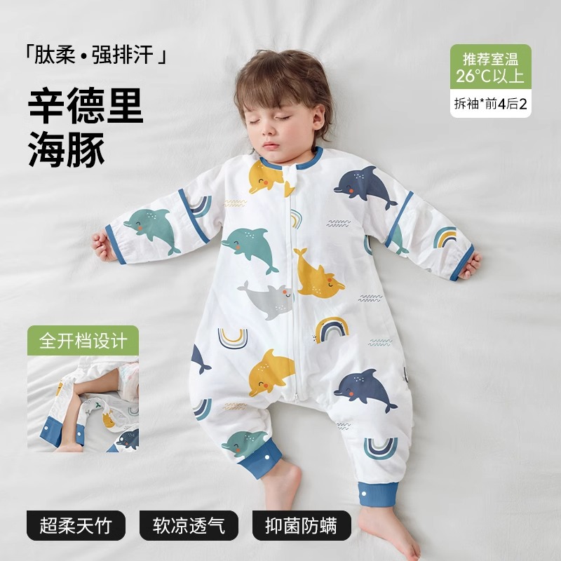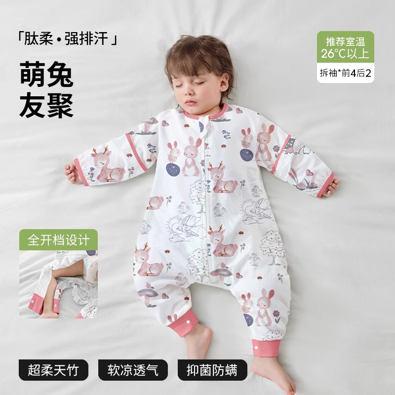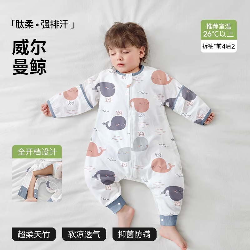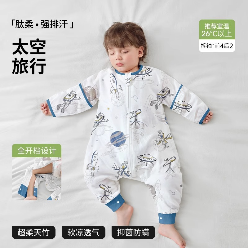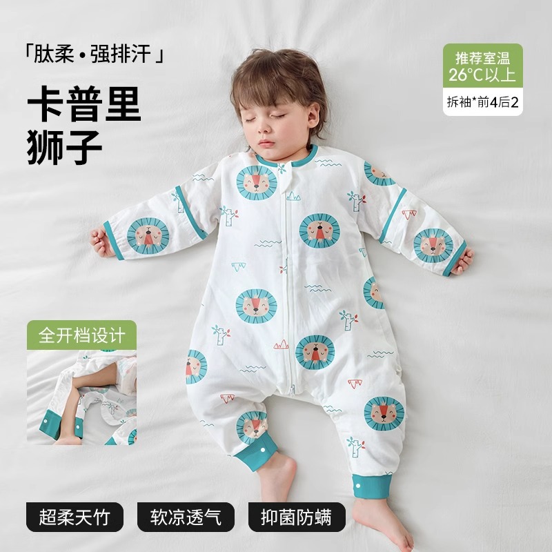 베이티스 아기 침낭 봄가을 신상 거즈 아동용 유아용 봄가을 스타일 다리 분리형 발차기 방지 이불 사계절용스토어 가기