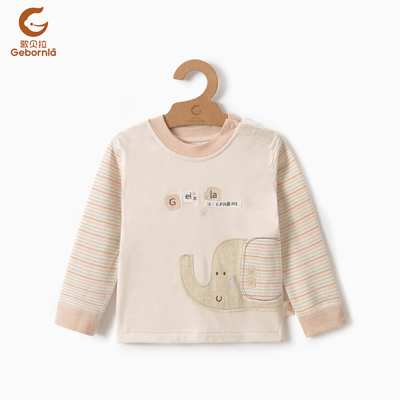 유색 면 자수 어깨 버클 탑 아기의 가을 옷 면 소년과 소녀를위한 긴 소매 탑 아기 속옷스토어 가기