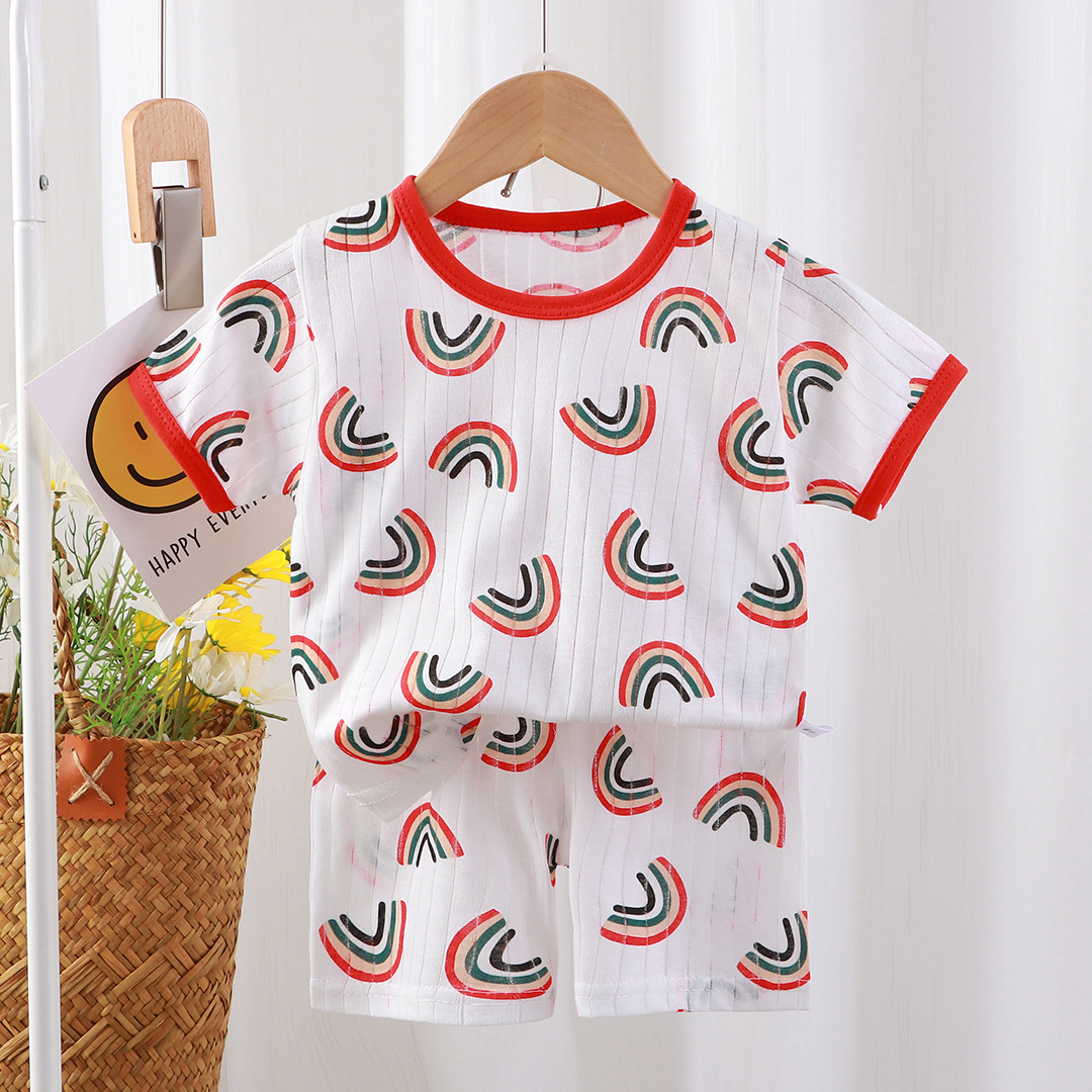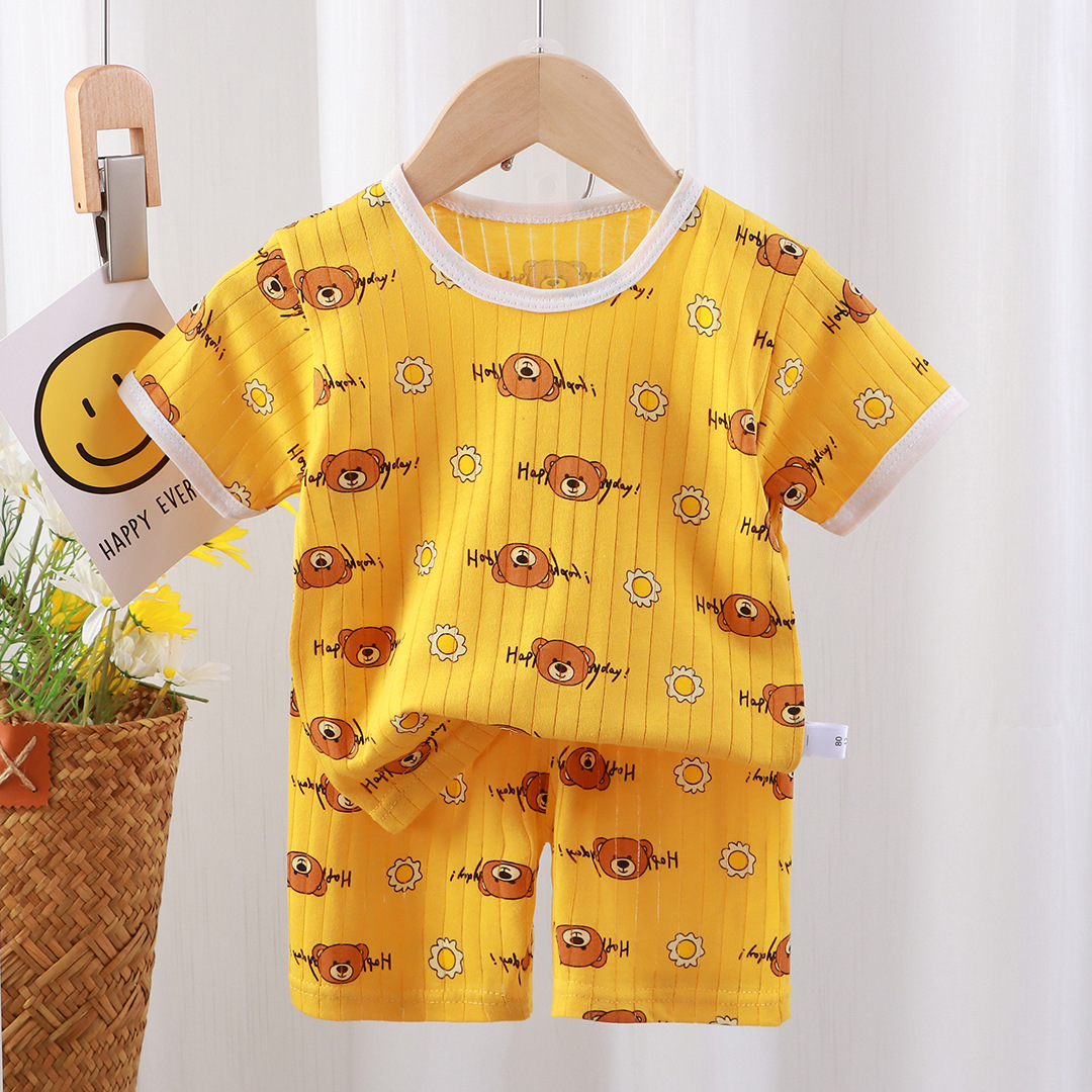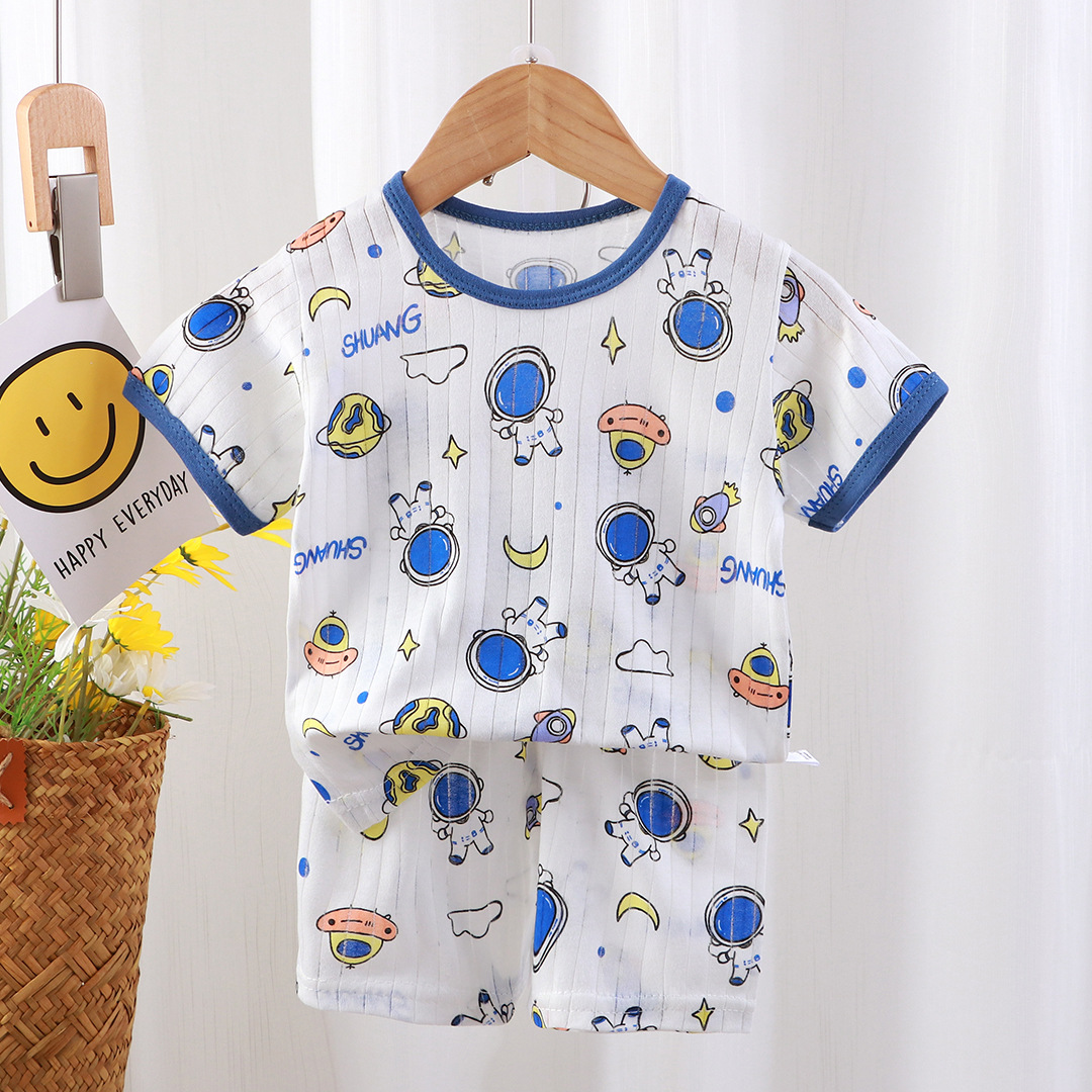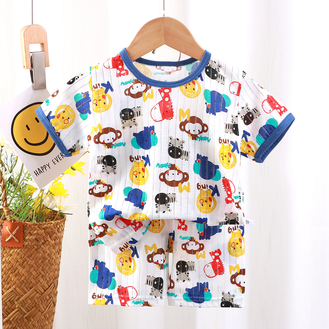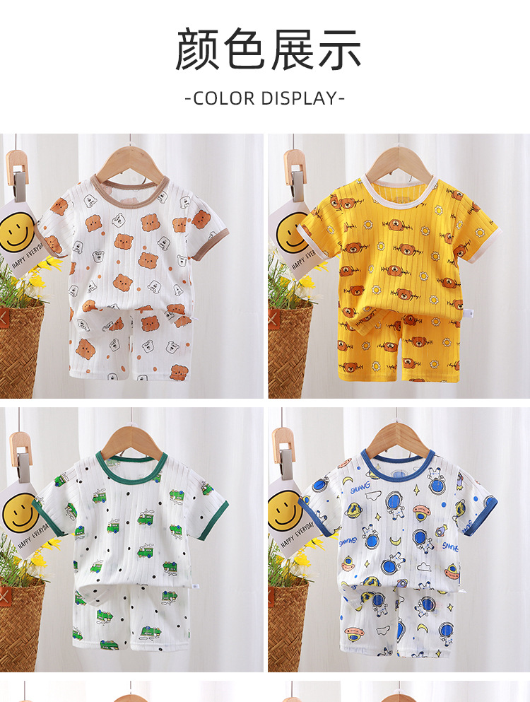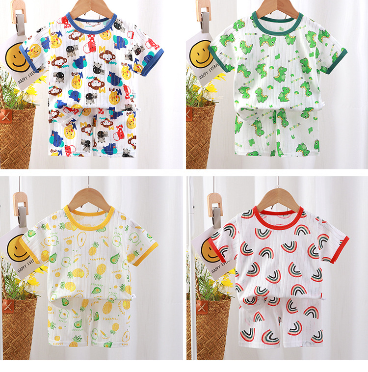 새로운 여름 어린이 홈 의류 속옷 세트 캐주얼 얇은 남녀 에어컨 의류 면 파자마 투피스 세트스토어 가기
