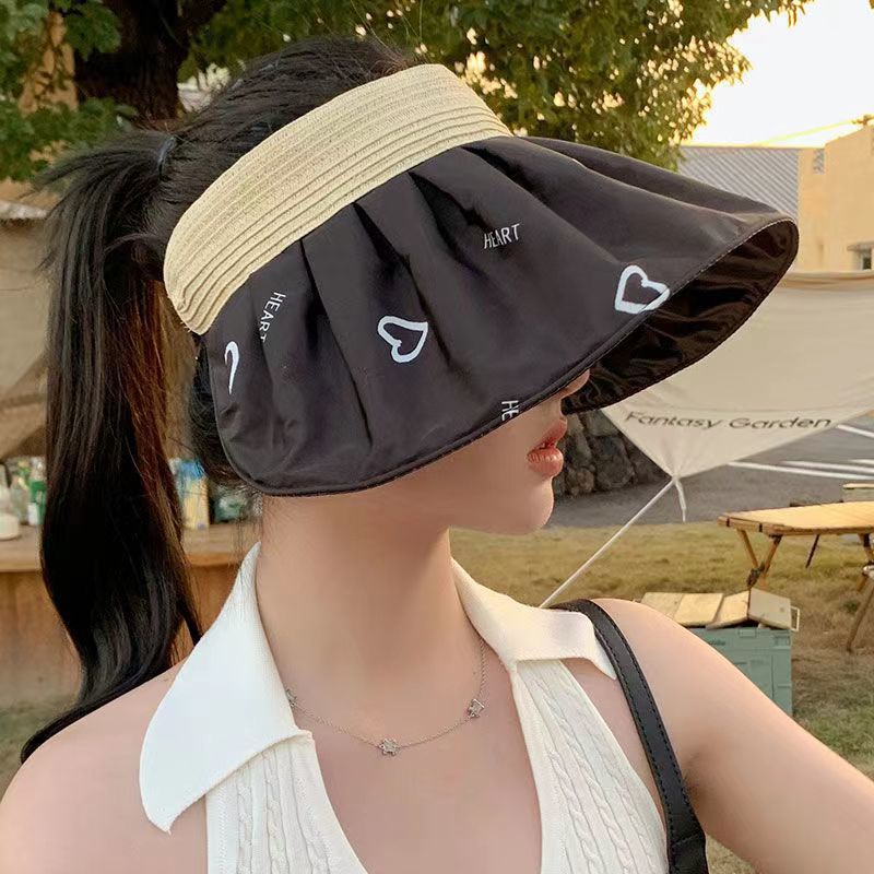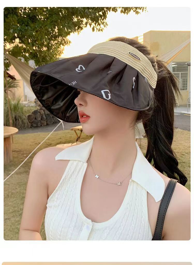 Yi Yi 새로운 검은 고무 선 스크린 모자 여성의 안티 UV 태양 모자 사이클링 빈 탑 태양 모자 여름 쉘 모자스토어 가기