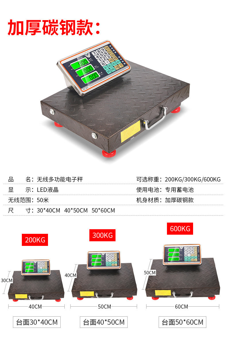 • [휴대용 무선 스케일] 탄소 강철 두꺼운 600kg 52*62cm
