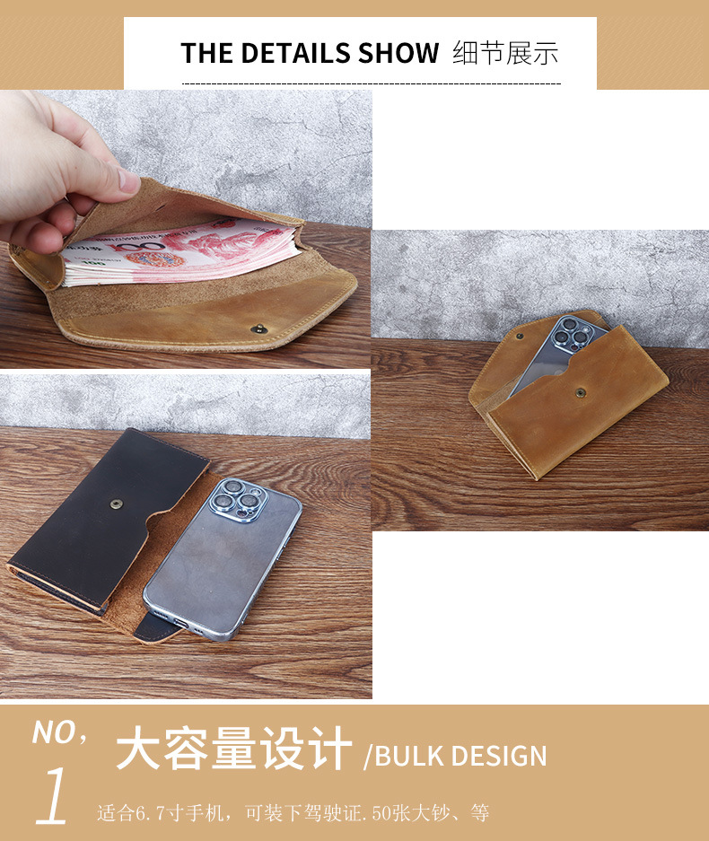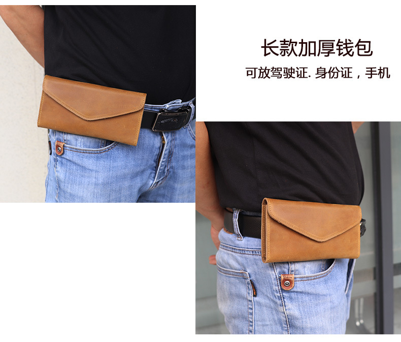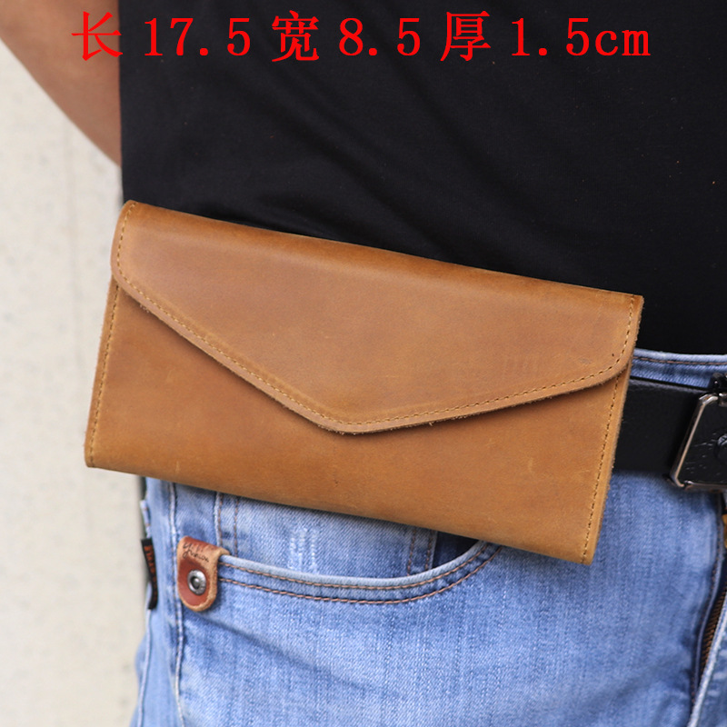 대외 무역 국경 간 공장 남성 휴대 전화 가방 매달려 허리 착용 벨트 보호 커버 레이어 Cowhide 미친 말 가죽 지갑스토어 가기
