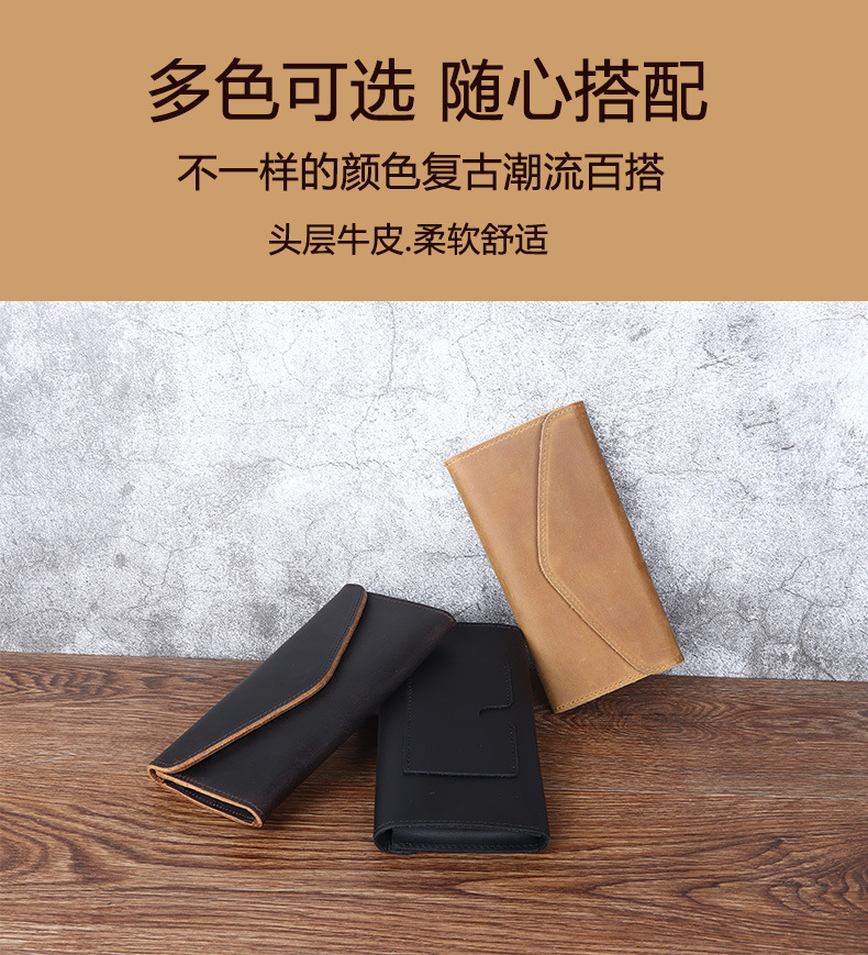 대외 무역 국경 간 공장 남성 휴대 전화 가방 매달려 허리 착용 벨트 보호 커버 레이어 Cowhide 미친 말 가죽 지갑