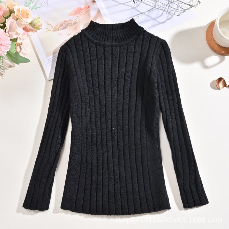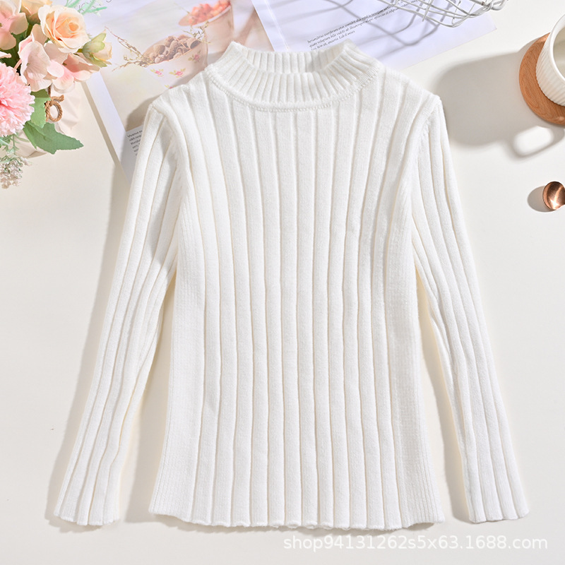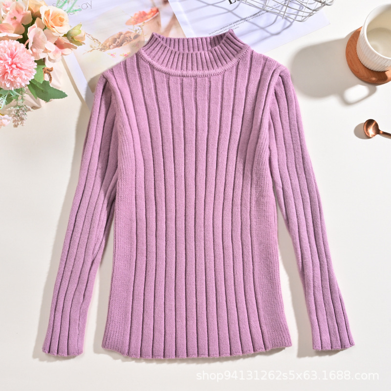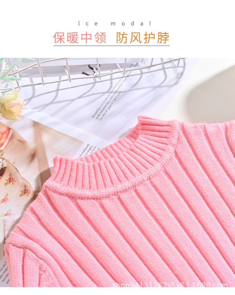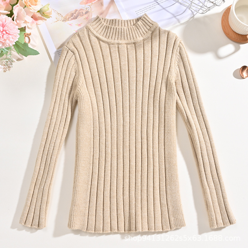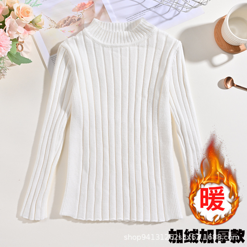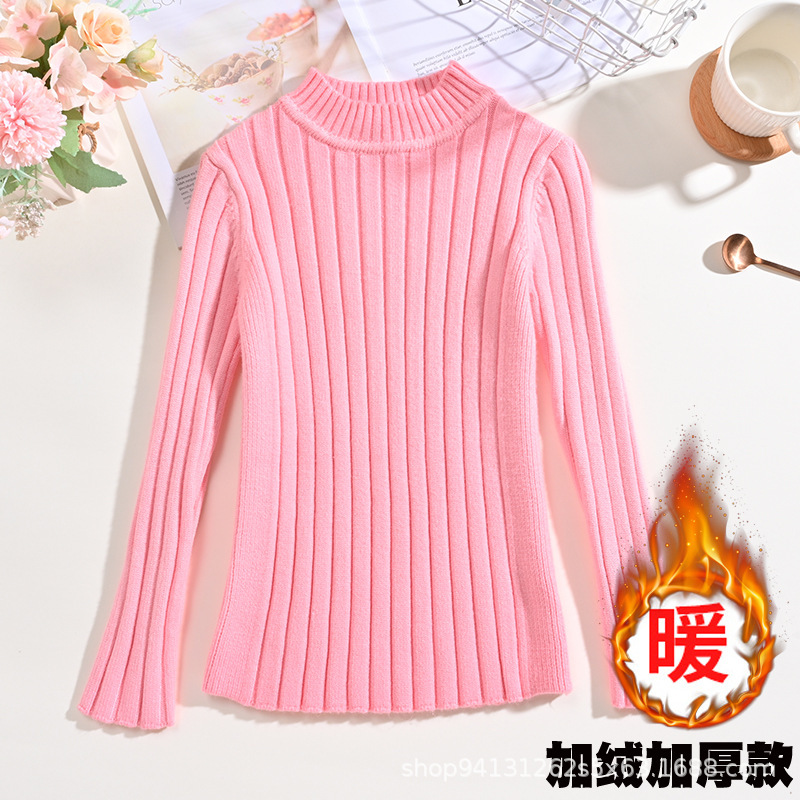 두꺼운 아동용 스웨터 가을 겨울 신상 남녀 아동용 니트 스웨터 반터틀넥 중대형 아동용 플리스 니트 베이스 셔츠