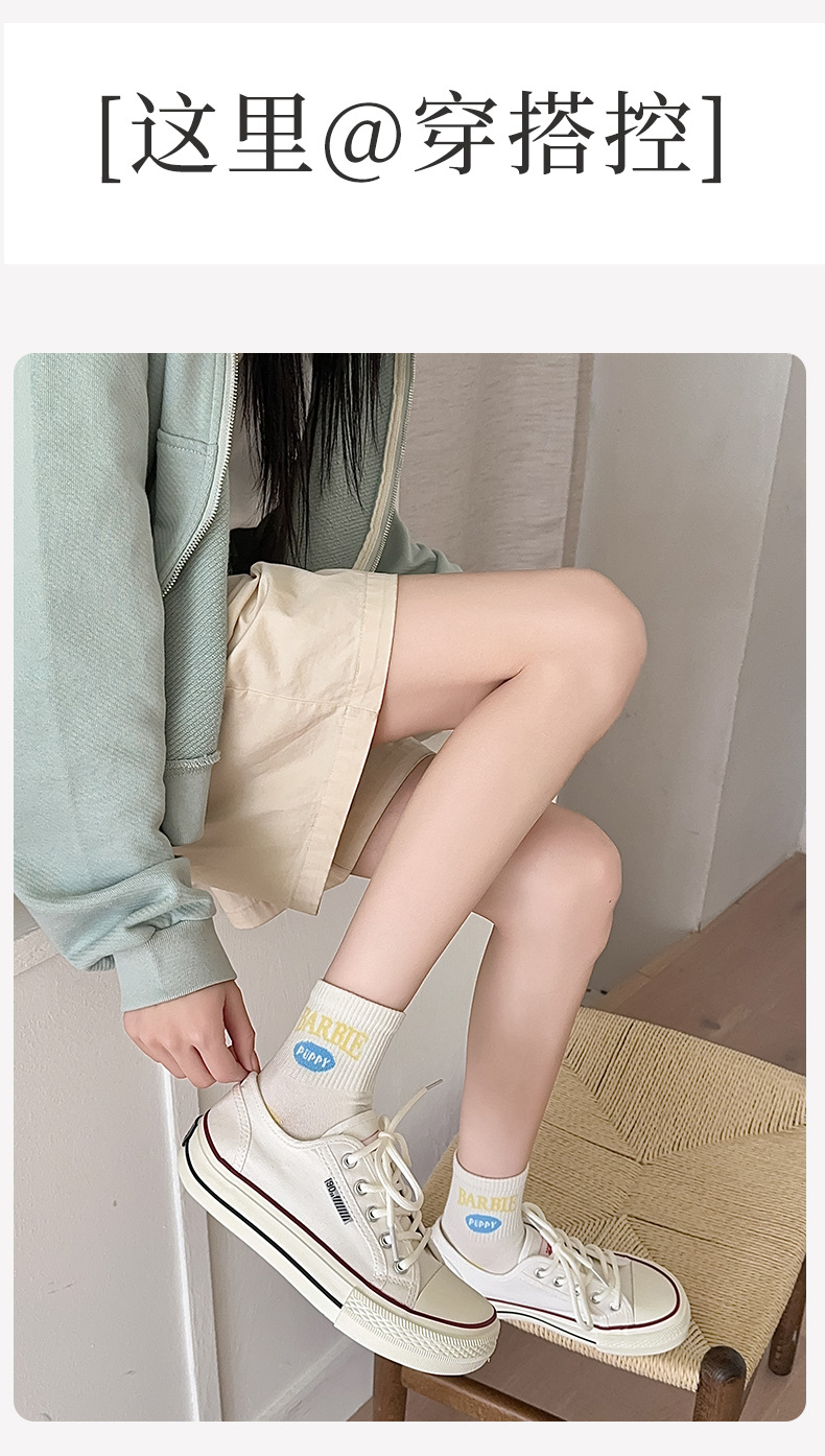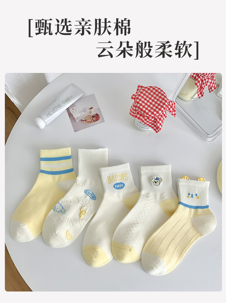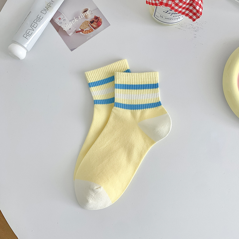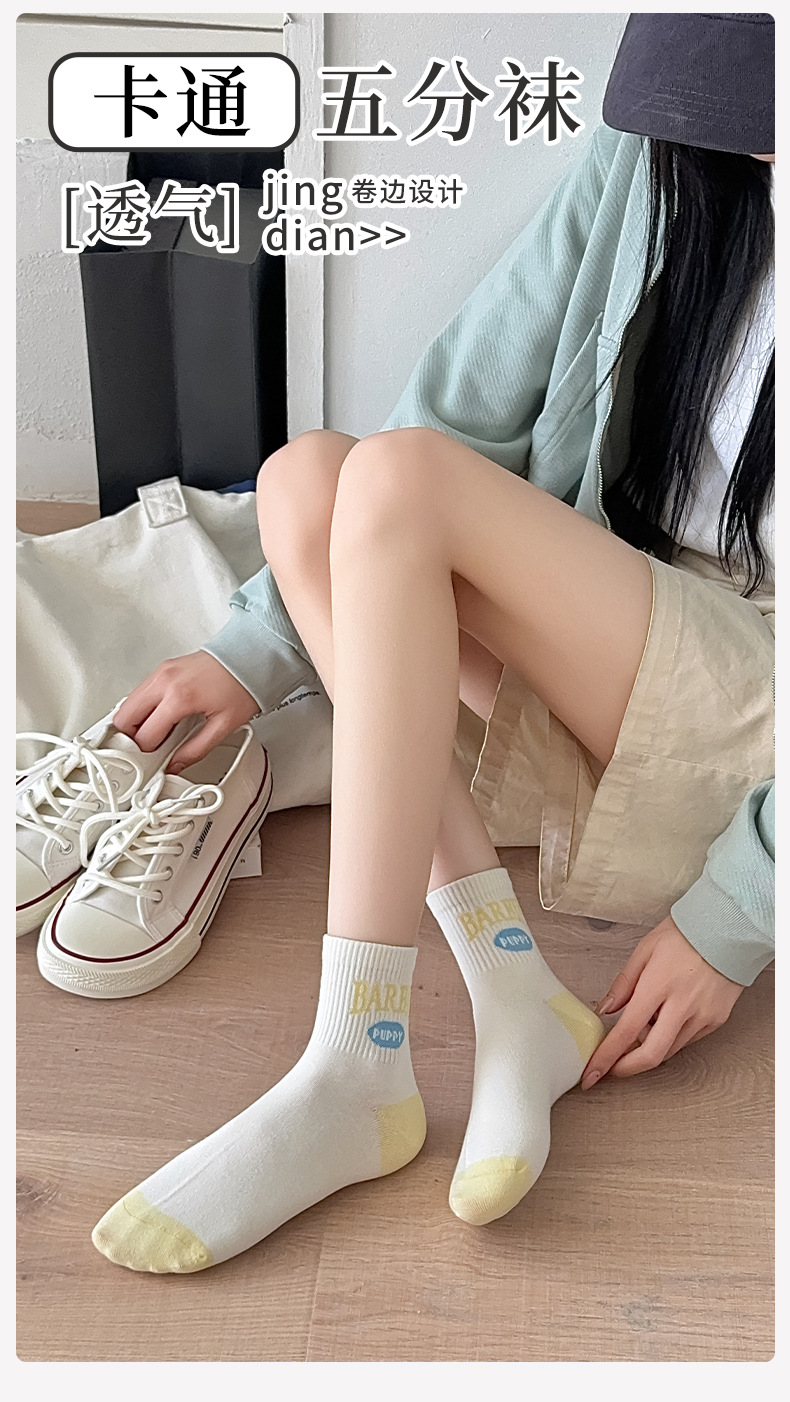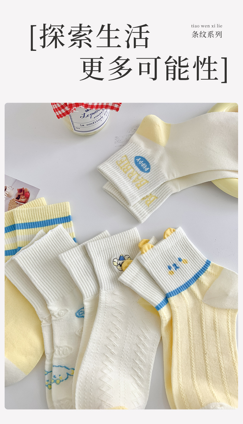 봄과 여름 새 크림 줄무늬 편지 짧은 5 점 양말 여성 통기성 면 양말 한국 자수 만화 여성 양말스토어 가기