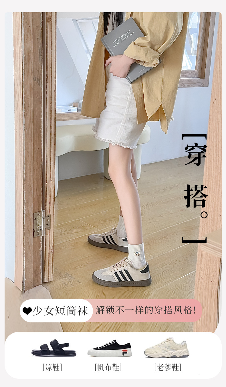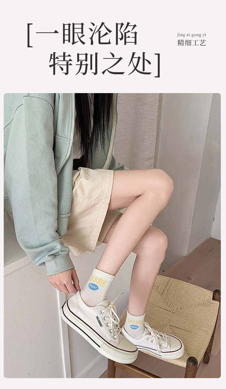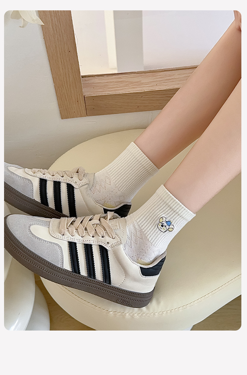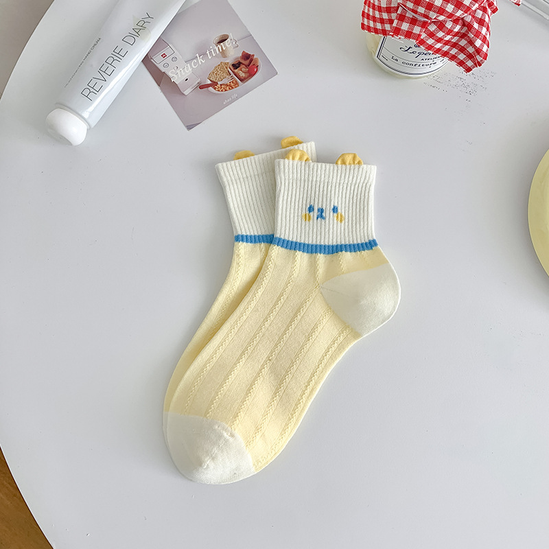 봄과 여름 새 크림 줄무늬 편지 짧은 5 점 양말 여성 통기성 면 양말 한국 자수 만화 여성 양말스토어 가기