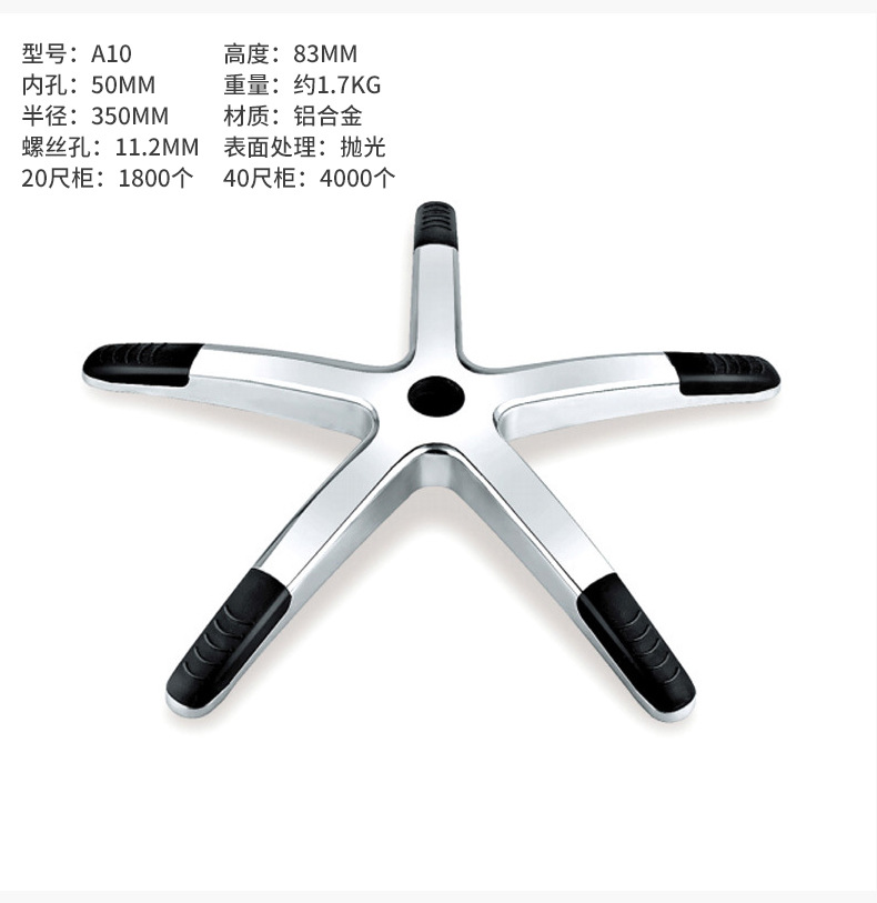 알루미늄 합금 5 발톱 발 섀시 현대 간단한 사무실 의자 5 성급 발 회전 의자 알루미늄 합금 발 제조 업체스토어 가기