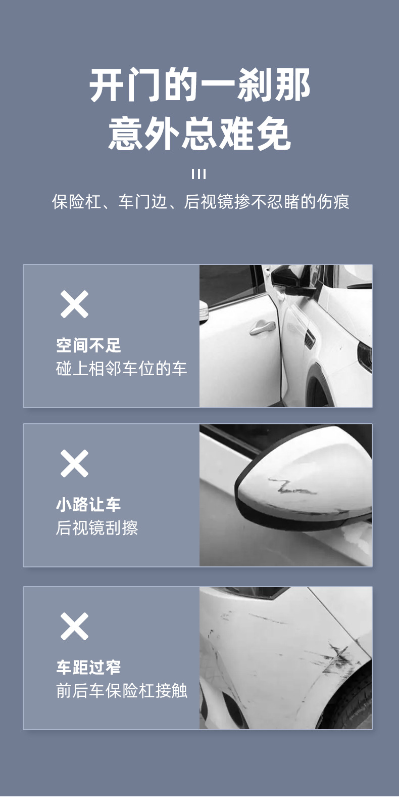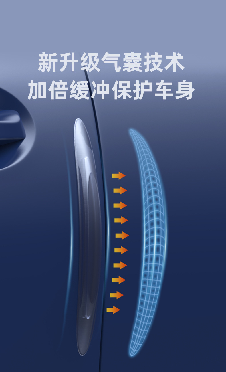 产品特点:真空气囊可以缓解碰撞,可贴车门、门把手、后视镜、后车保险杠。