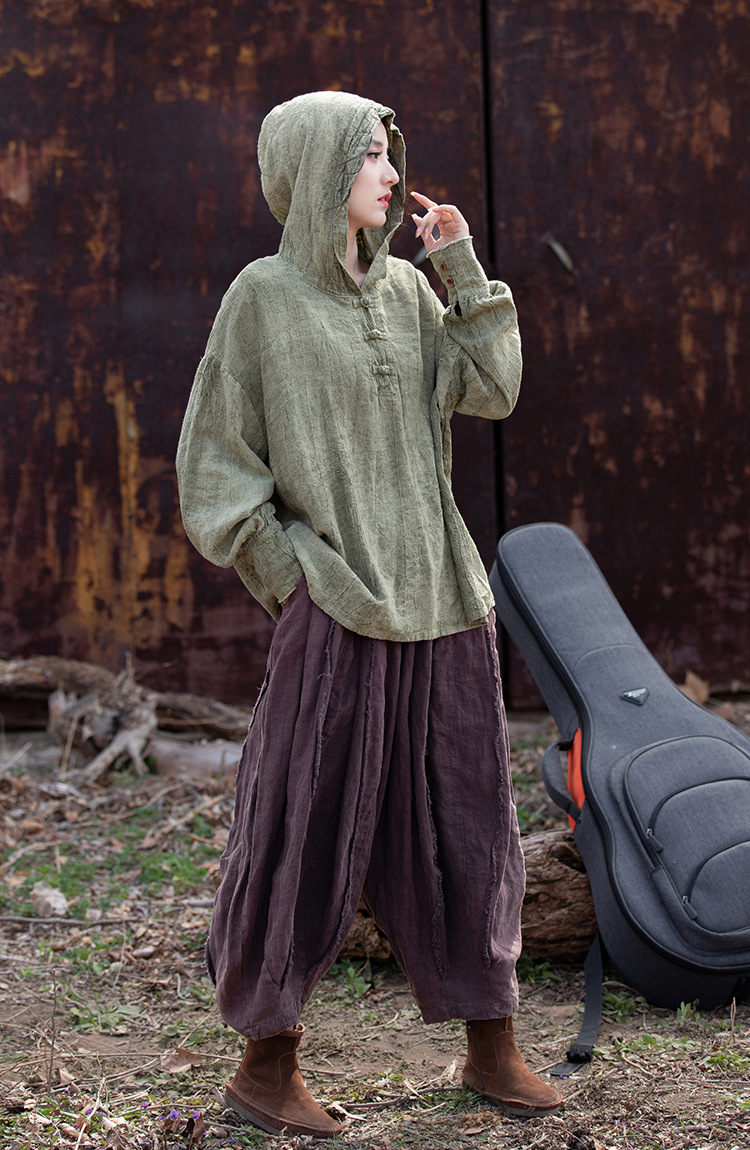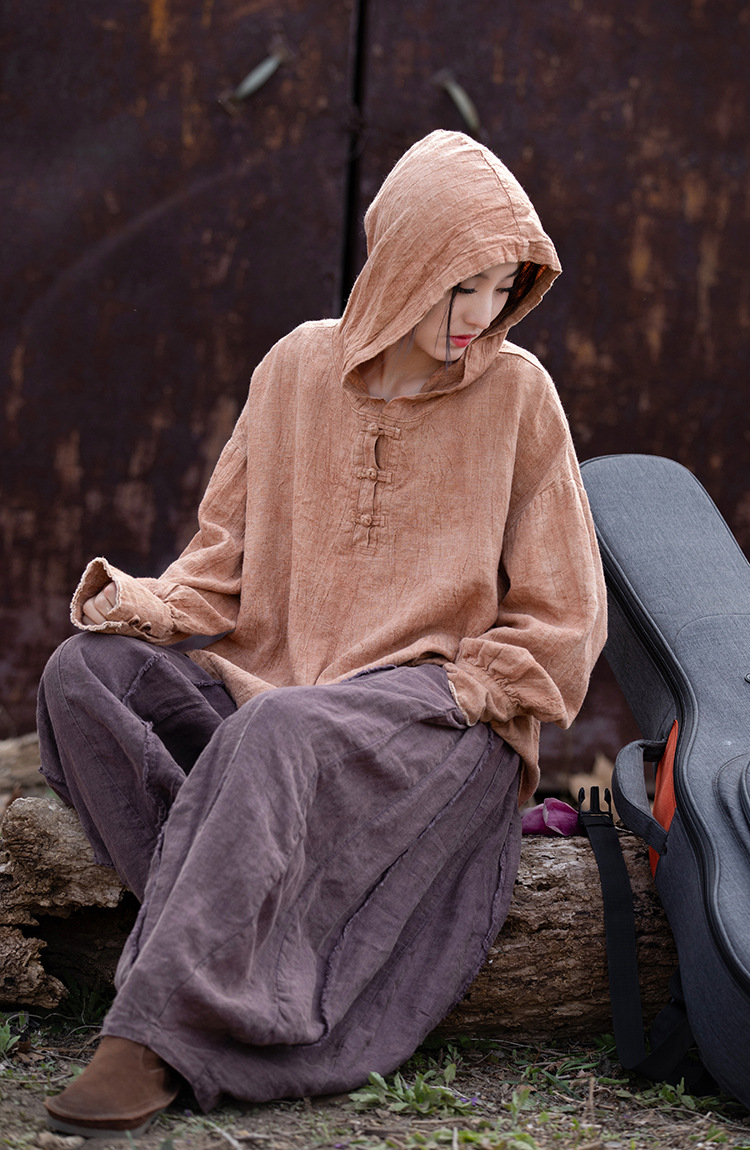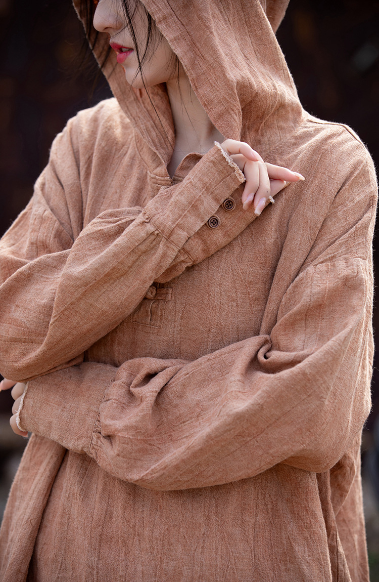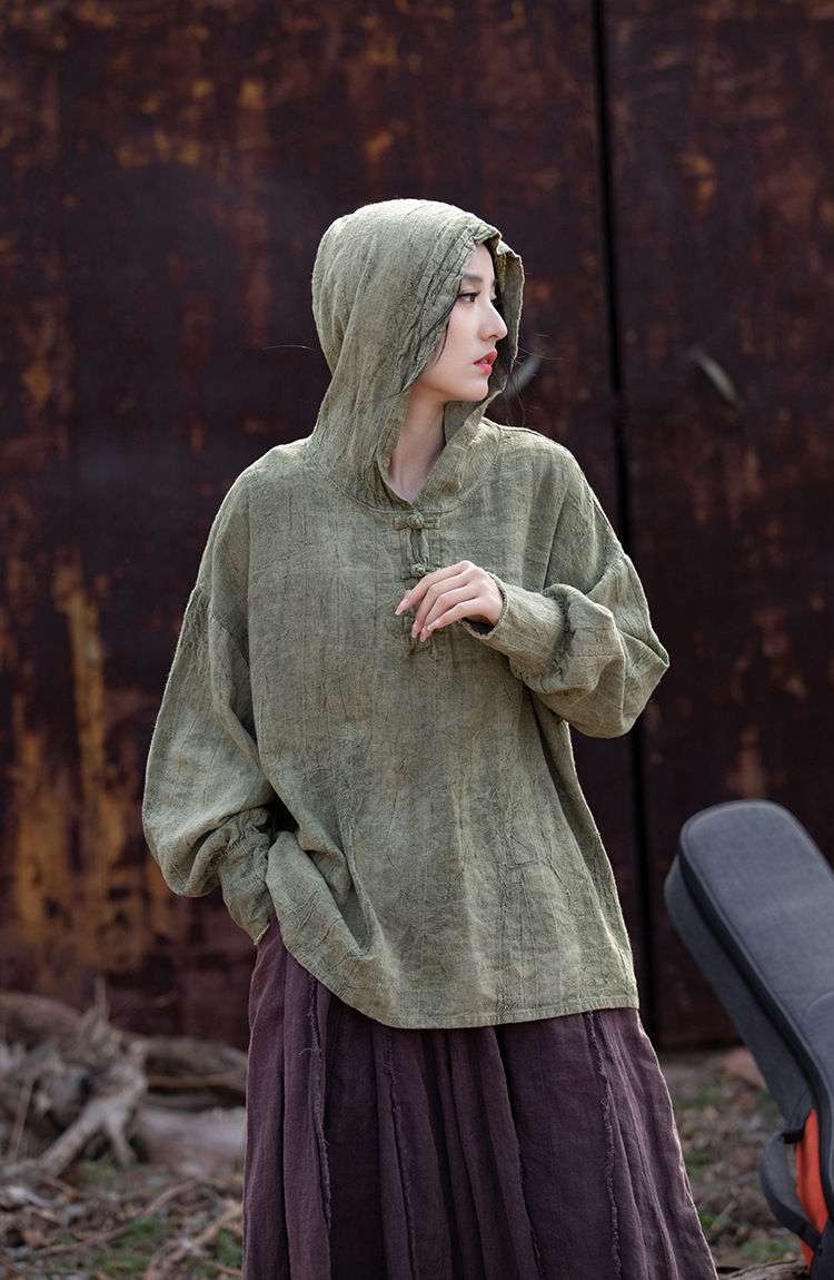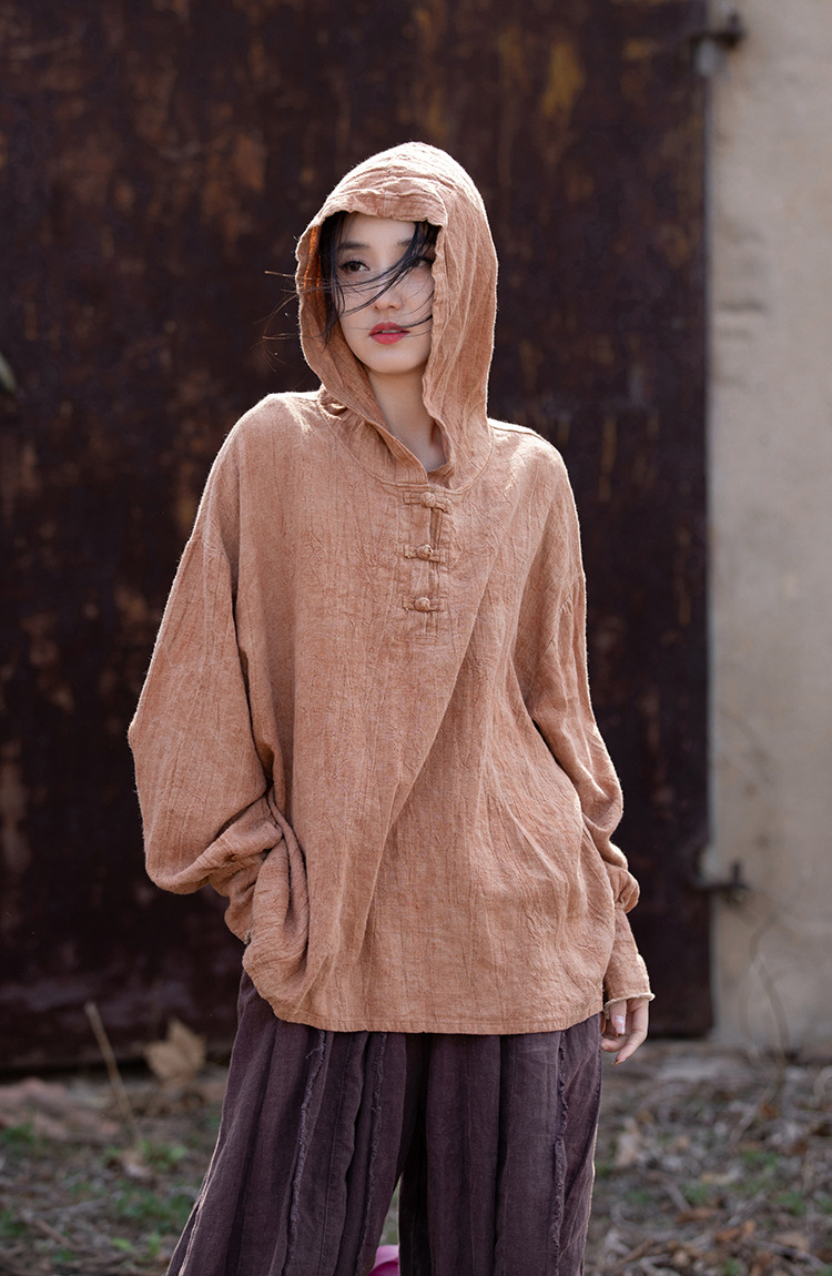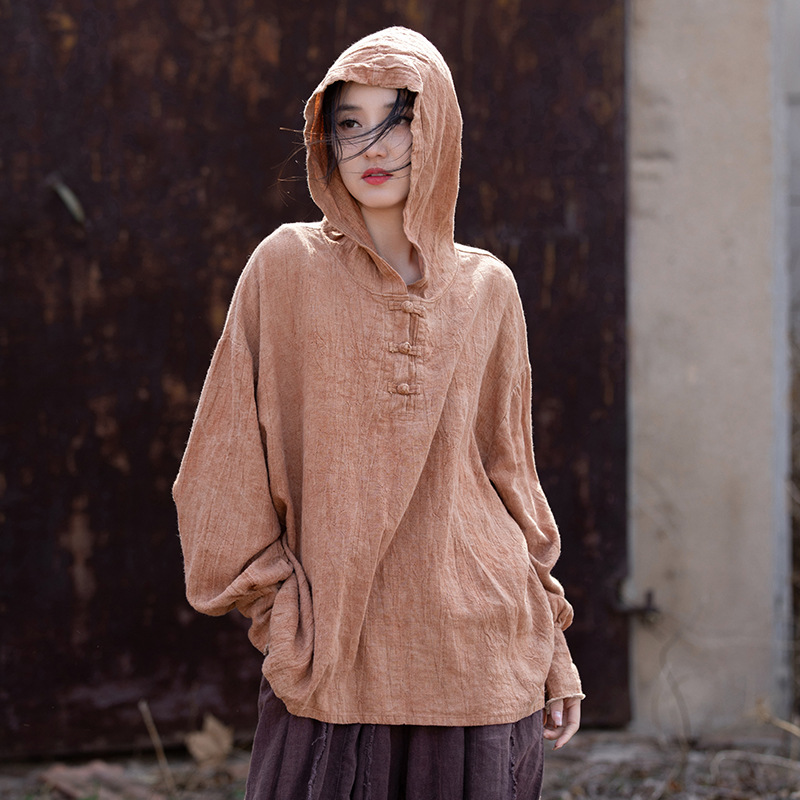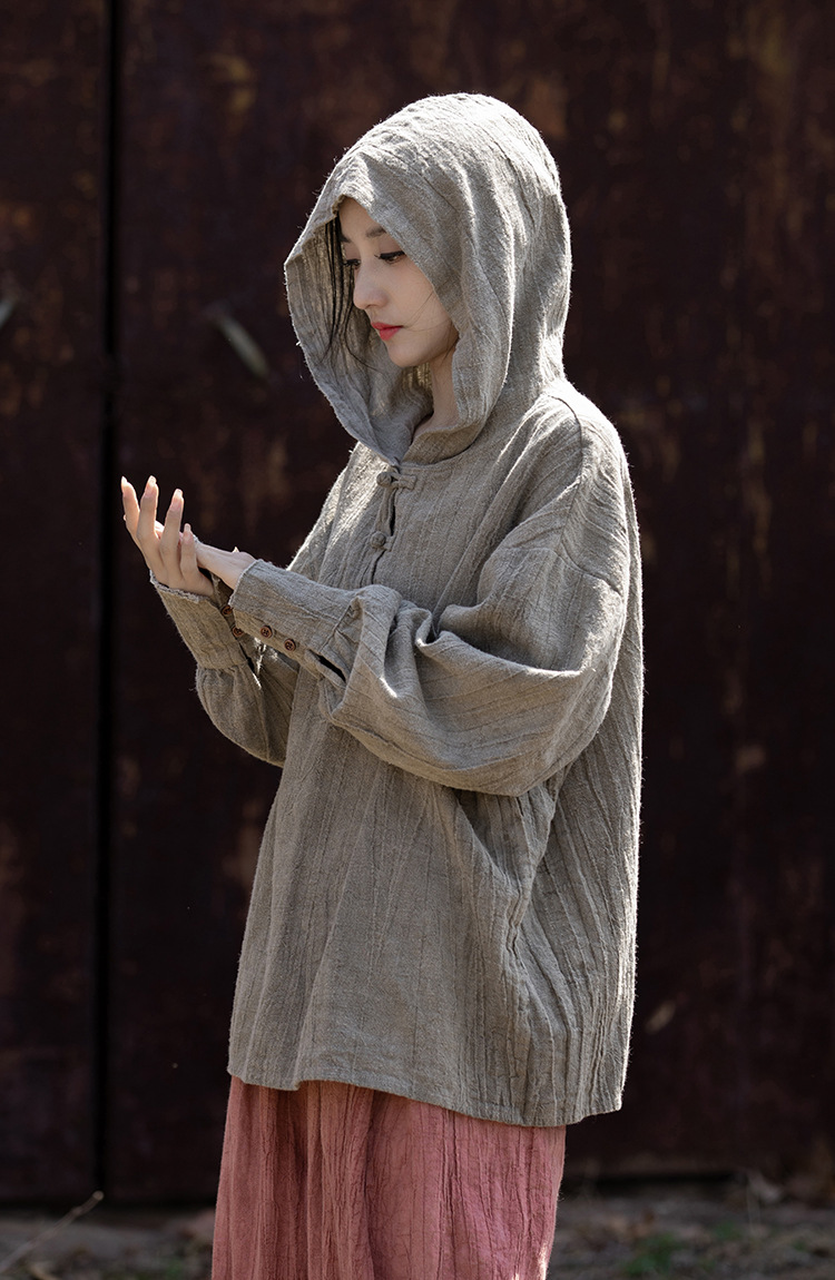 25 가을 겨울 중국풍 개량형 오리지널 모시면 수제 타이다이 우아한 여성용 중국풍 차복 단추 후드티