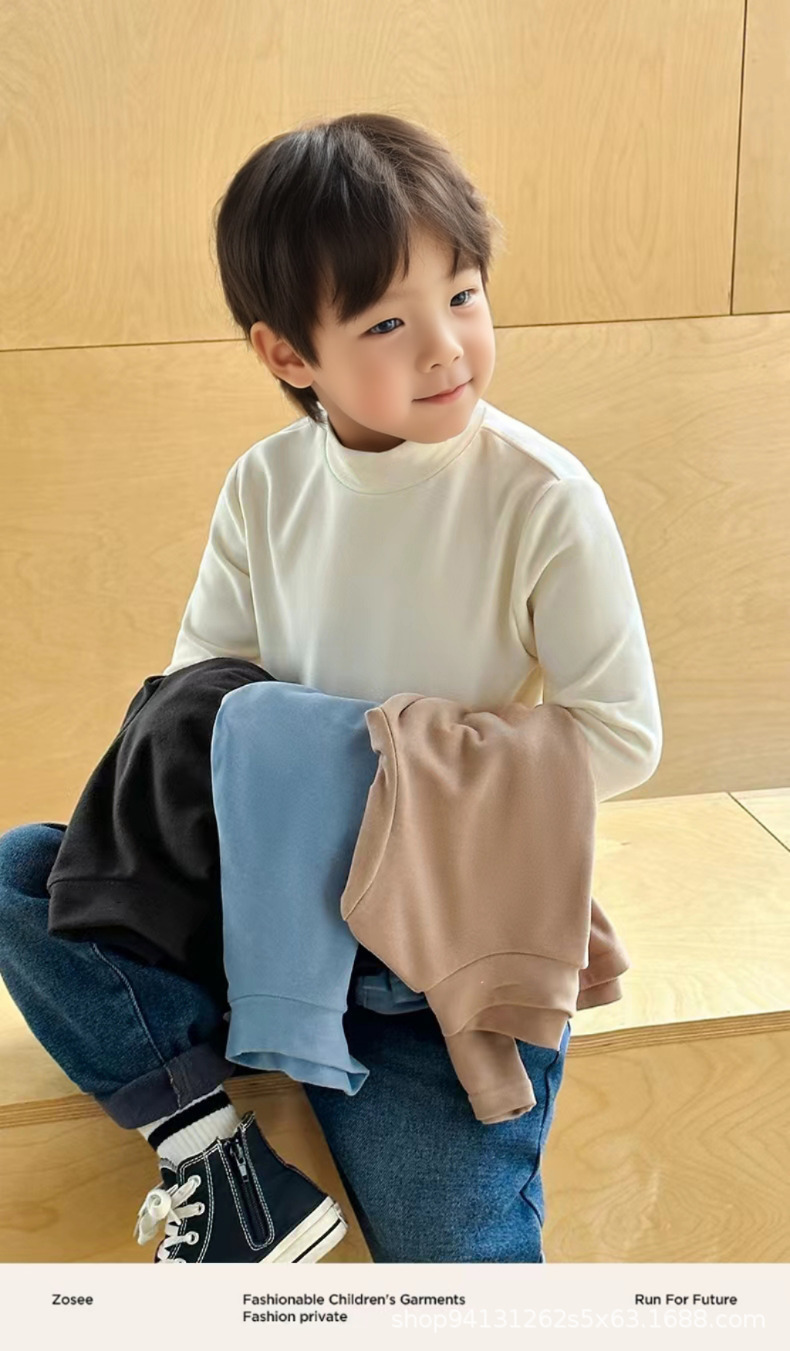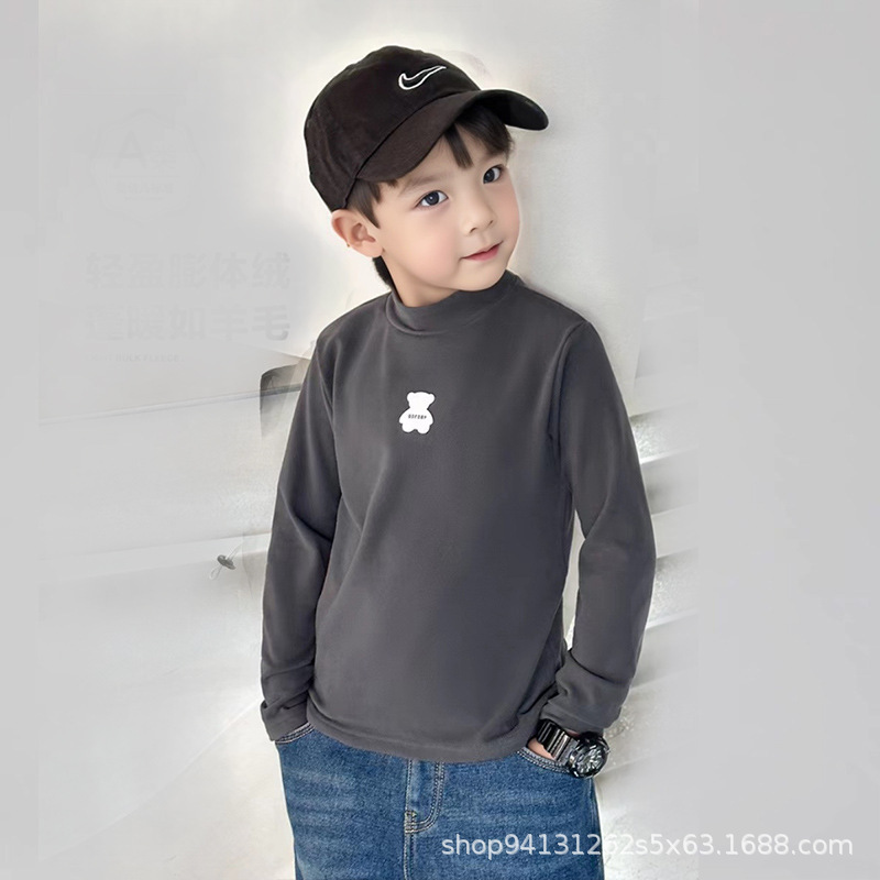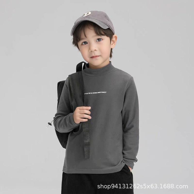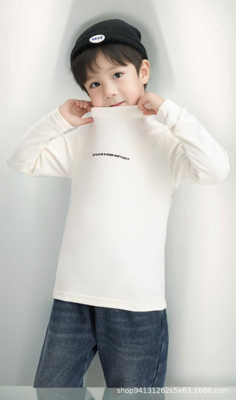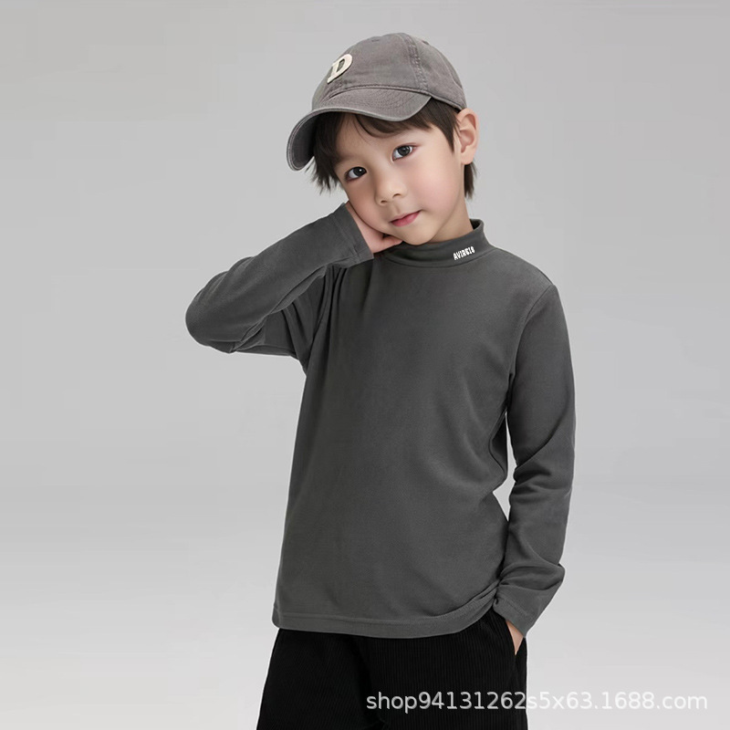 남학생 바지 셔츠 가을과 겨울 어린이 세미 하이 칼라 벨벳 내부 2023 새로운 항균 따뜻한 긴 소매 티셔츠 조수스토어 가기