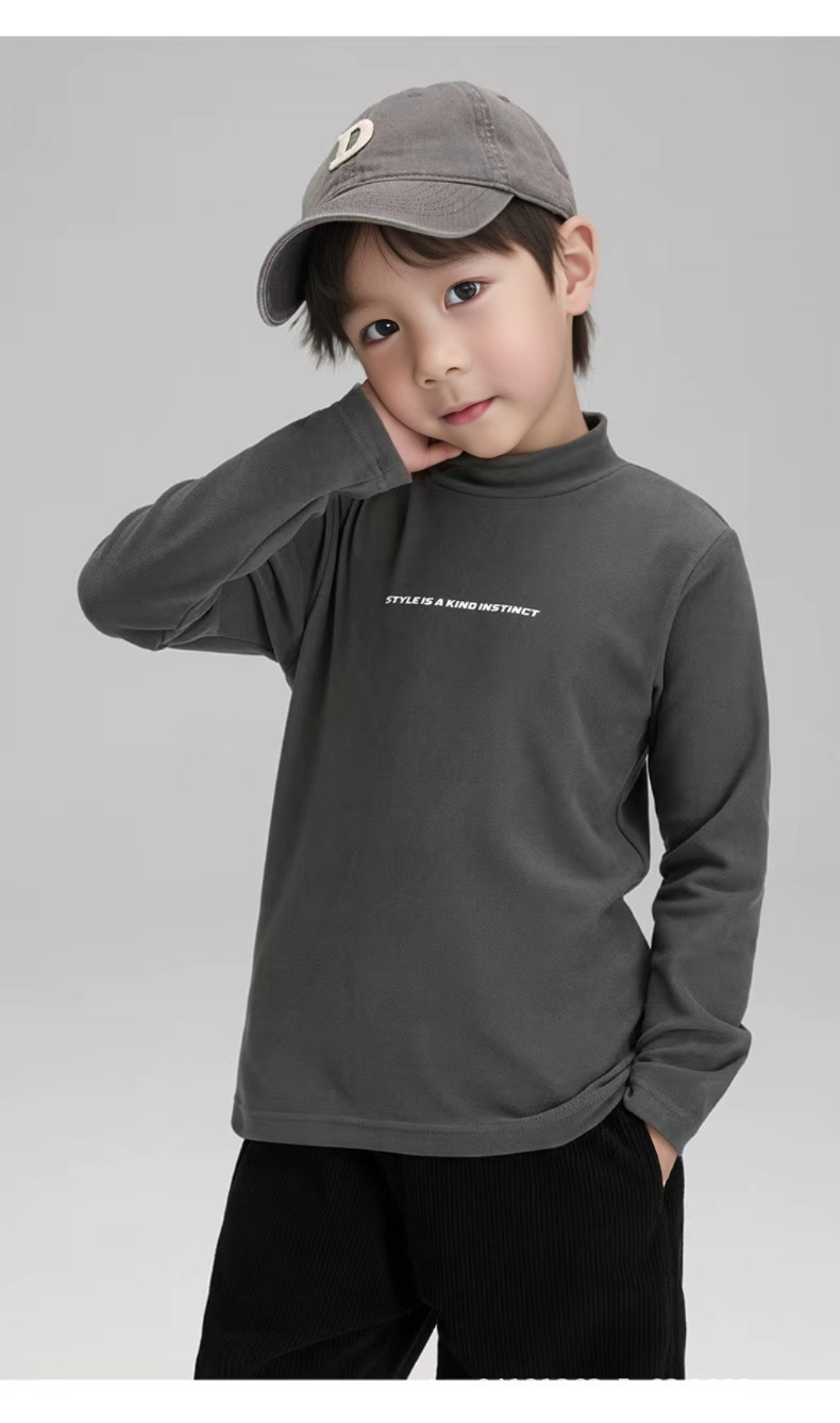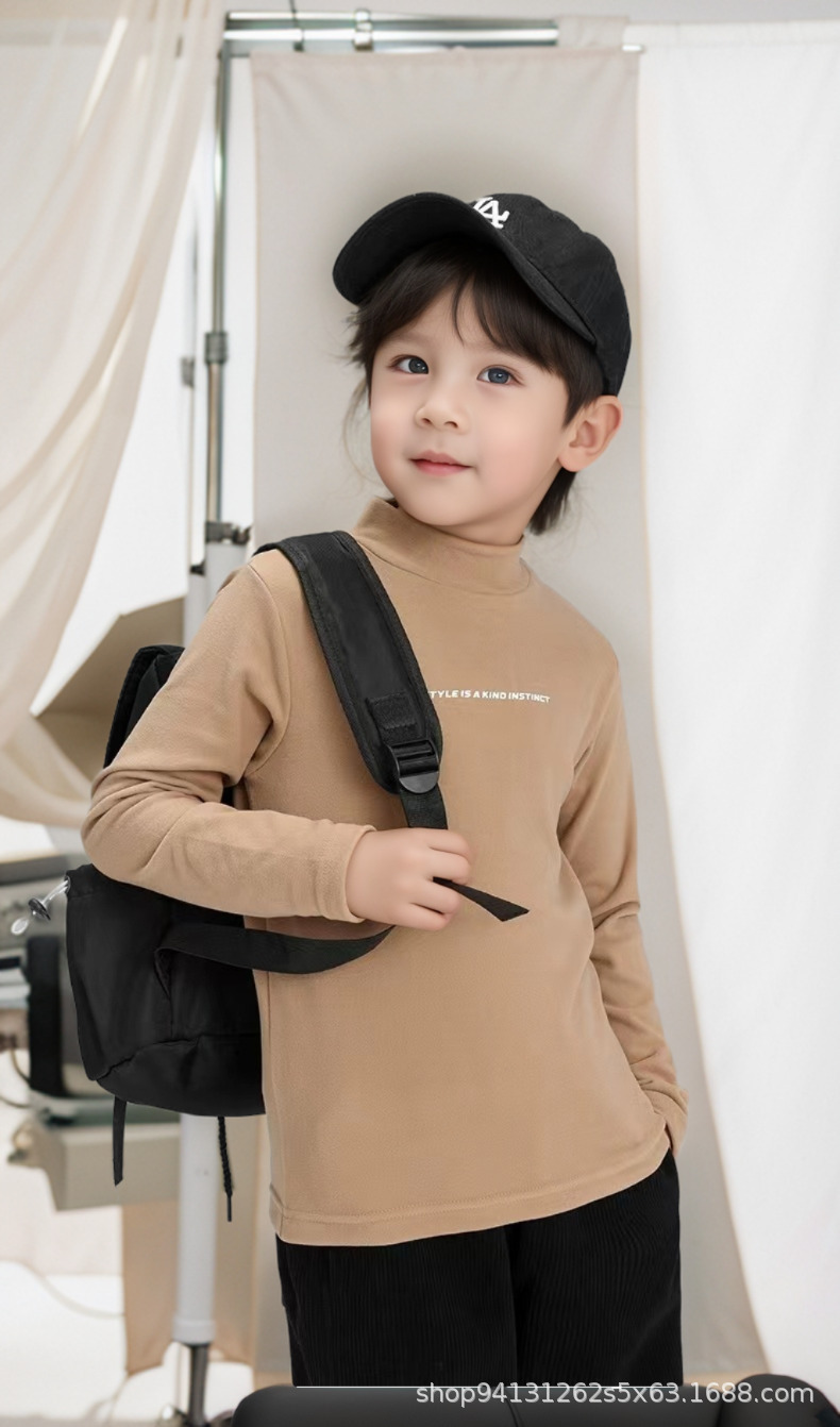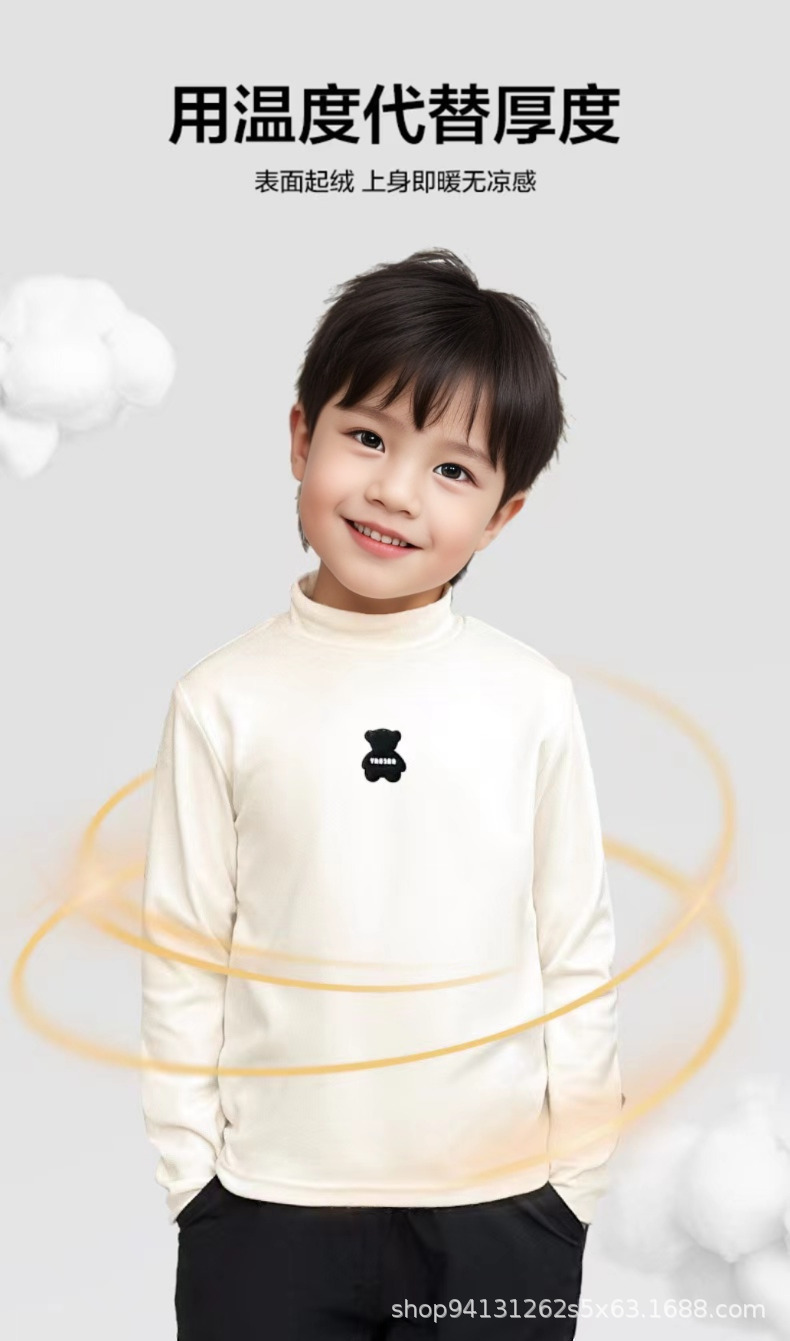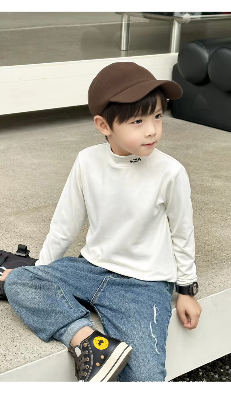 남학생 바지 셔츠 가을과 겨울 어린이 세미 하이 칼라 벨벳 내부 2023 새로운 항균 따뜻한 긴 소매 티셔츠 조수스토어 가기