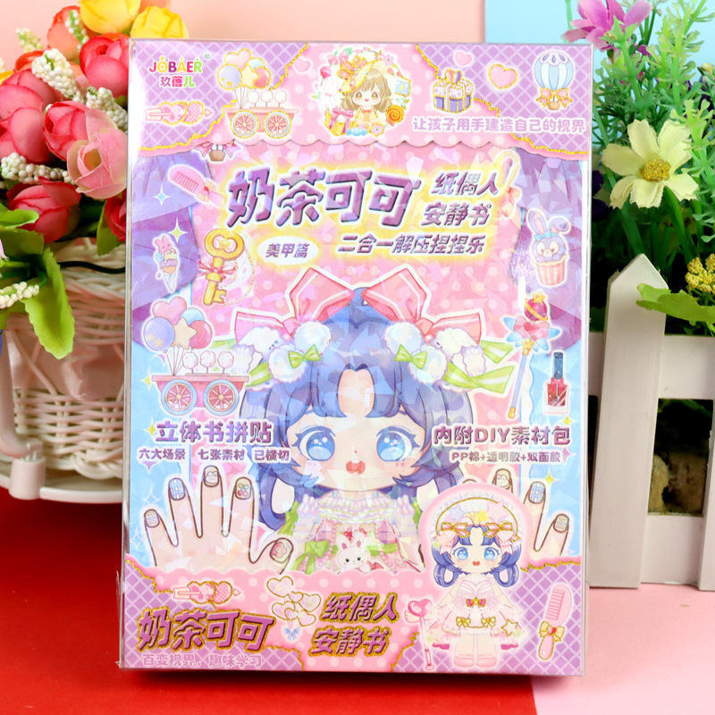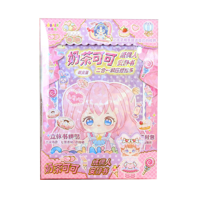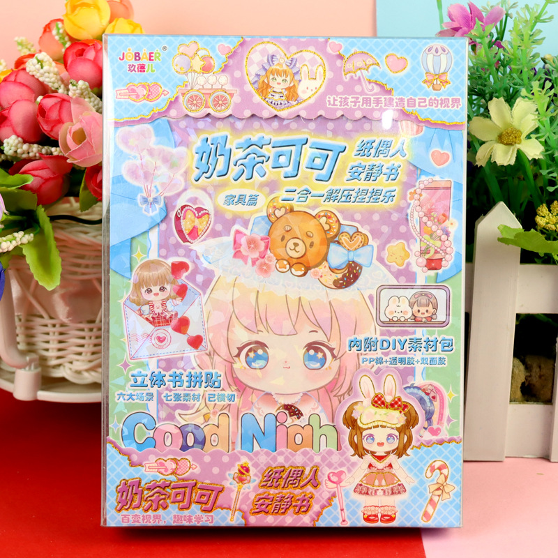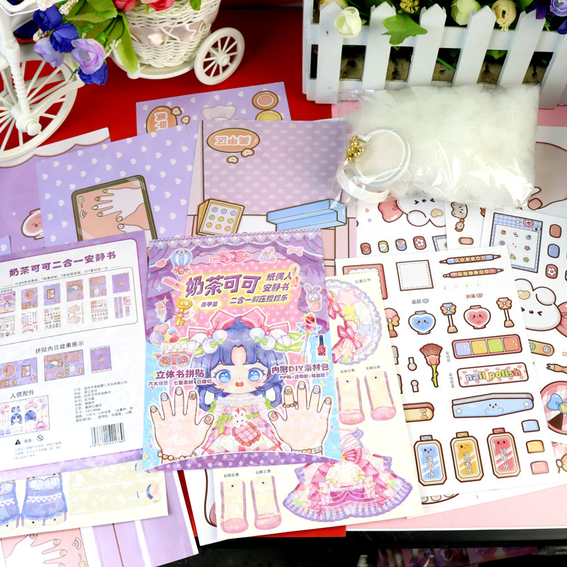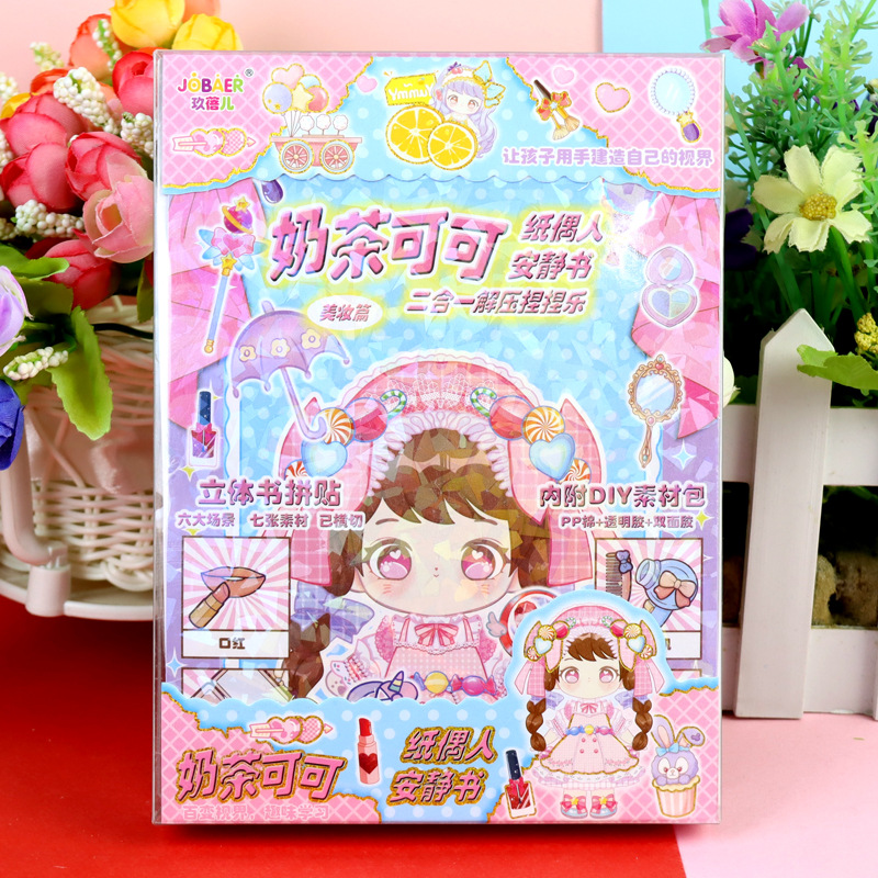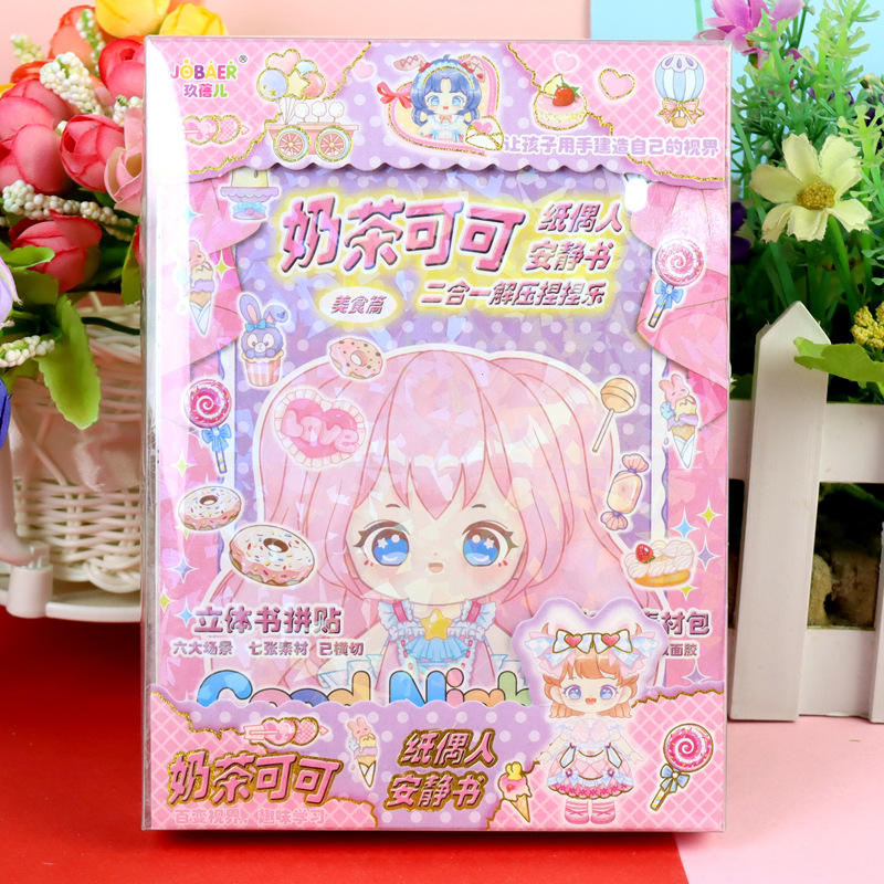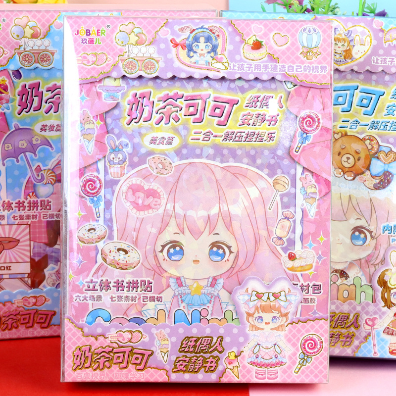 새로운 우유 차 코코아 종이 인형 조용한 책 투인원 감압 핀치 음악 변화 스티커 책 어린이 장난감 배치