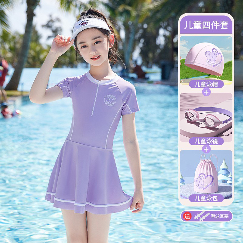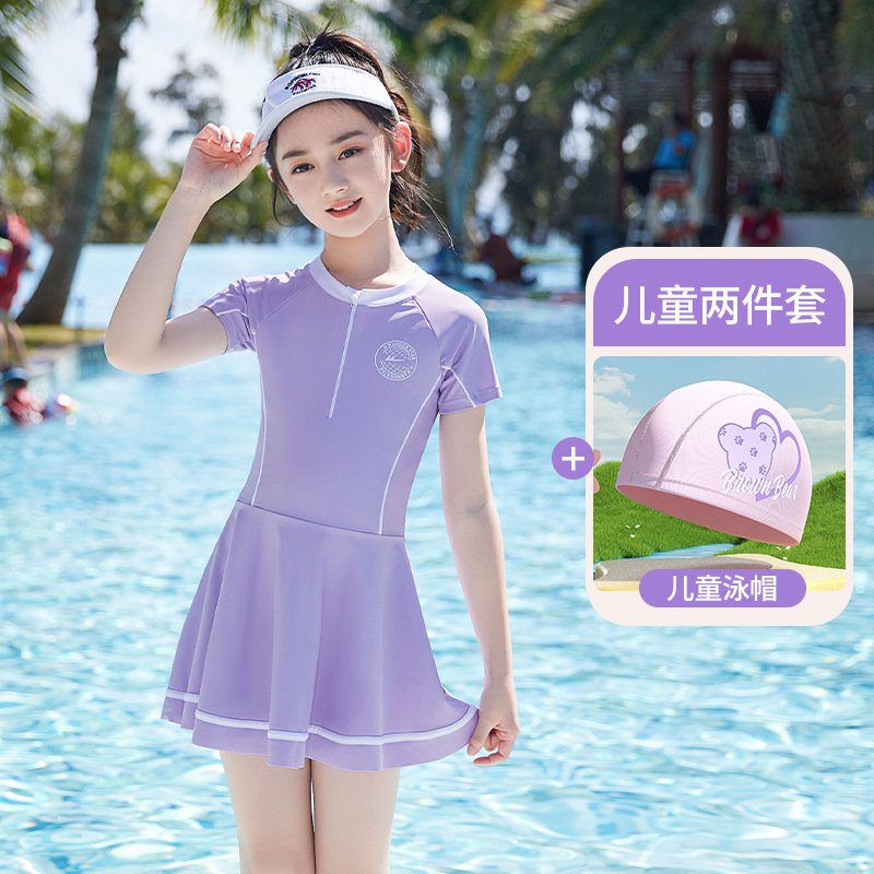 어린이 수영복 소녀 2025 새로운 원피스 중대형 어린이 전문 훈련 소녀 수영복 도매스토어 가기