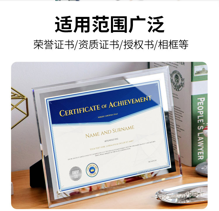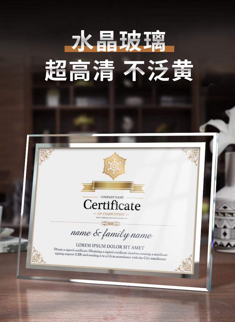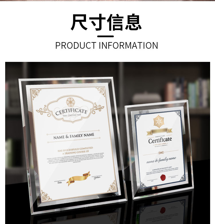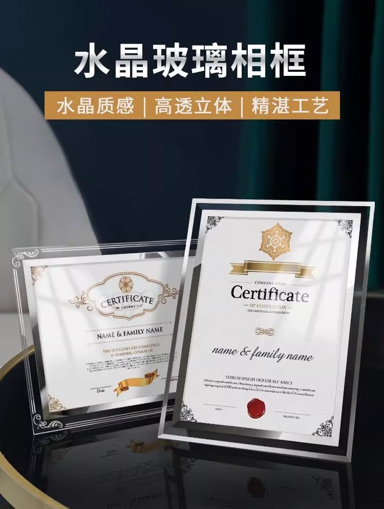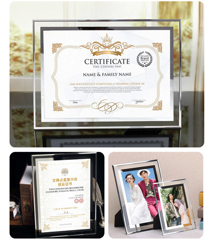 간단한 투명 크리스탈 유리 사진 프레임 테이블 6inch 7inch 명예 인증서 프레임 창조적 인 성격 비즈니스 라이센스 사진 프레임