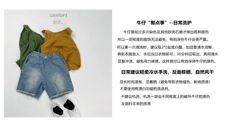 한국 스타일 아동복 어린이 데님 반바지 여름 새로운 유행 흩어져있는 사이드 캐주얼 데님 바지