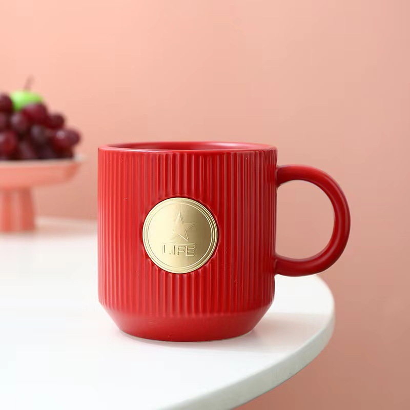 • 빨간색 수직 패턴 청동 컵