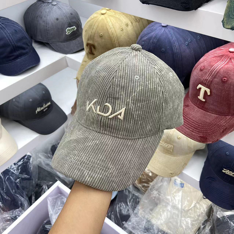 Jichu H57 한국 자수 편지 Corduroy 모자 남성 여행 소프트 탑 와이드 브림 페이스 커버 빈티지 패션 스틱스토어 가기