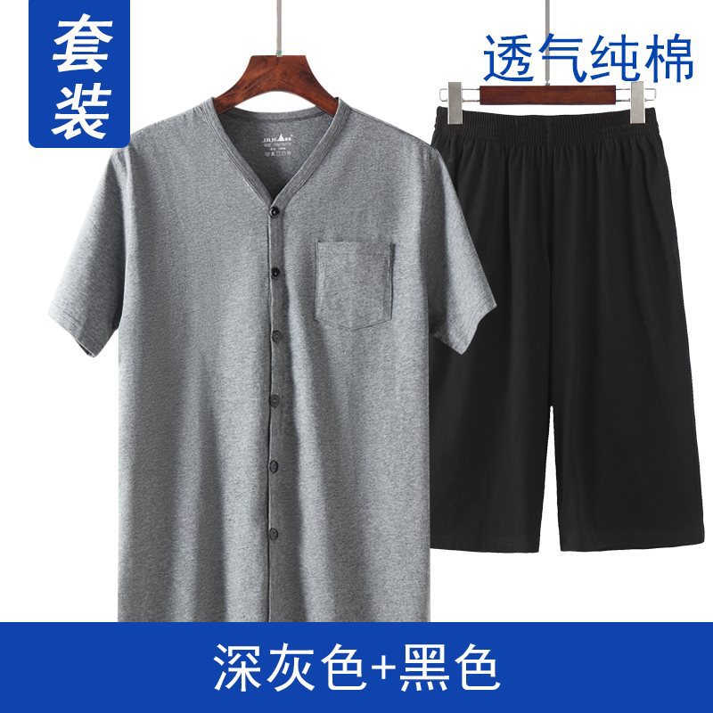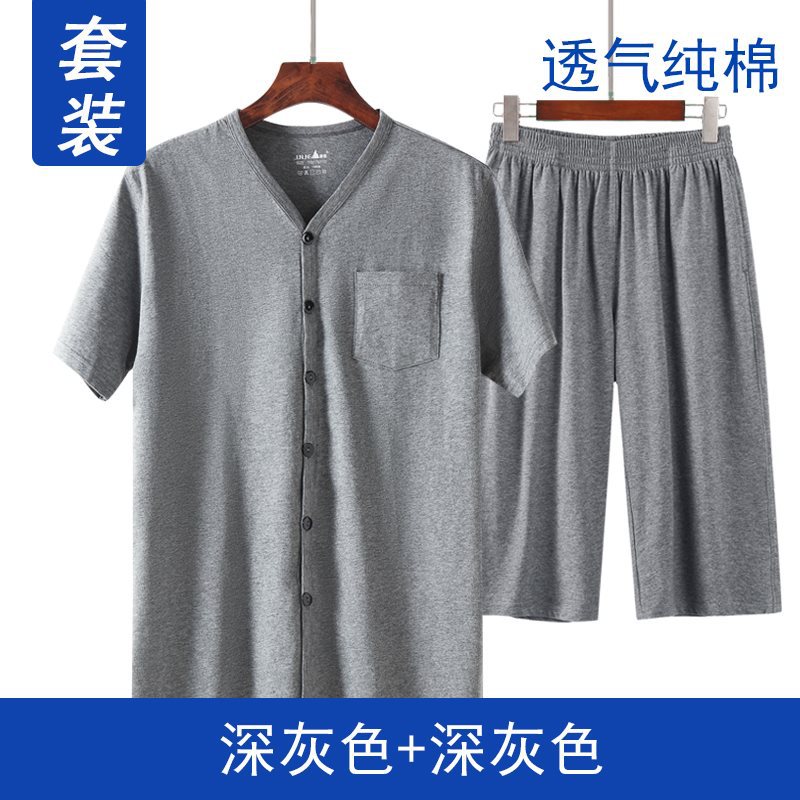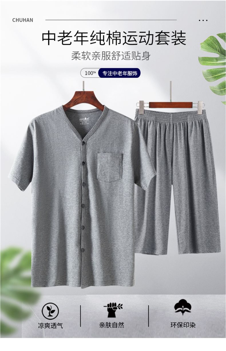중년 및 노인 세트 반팔 티셔츠 남성용 티셔츠 버클 카디건 블레이드 투피스 세트 할아버지의 더블 브레스트 반팔 올드 헤드 라인 셔츠스토어 가기