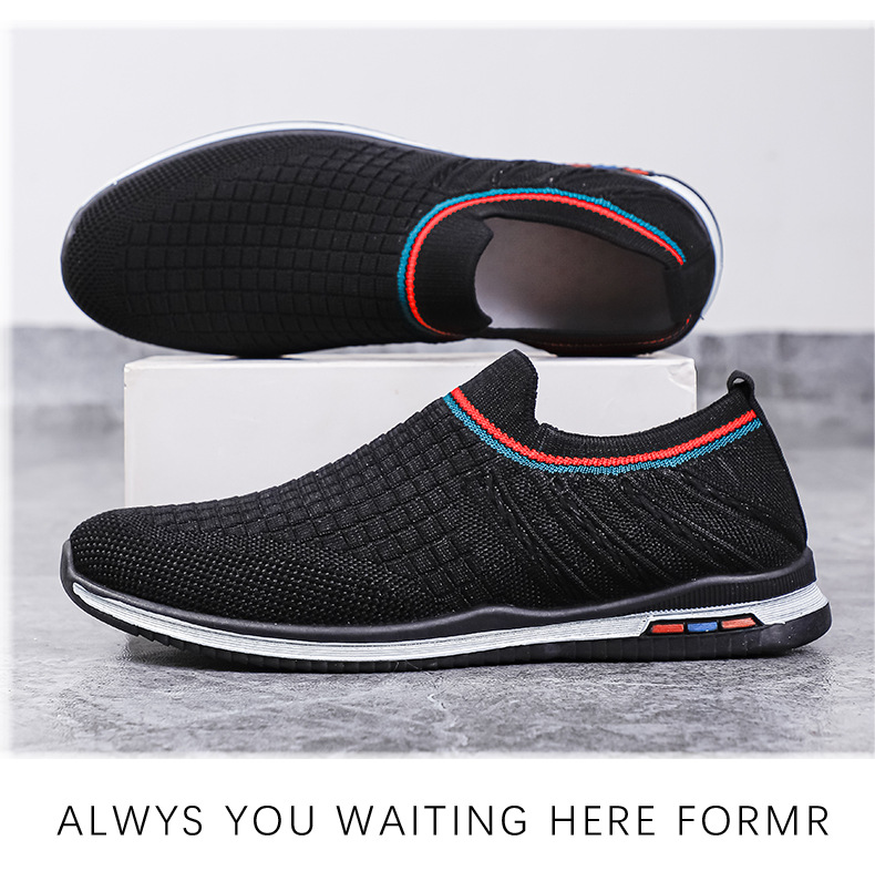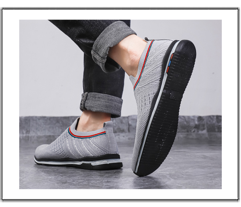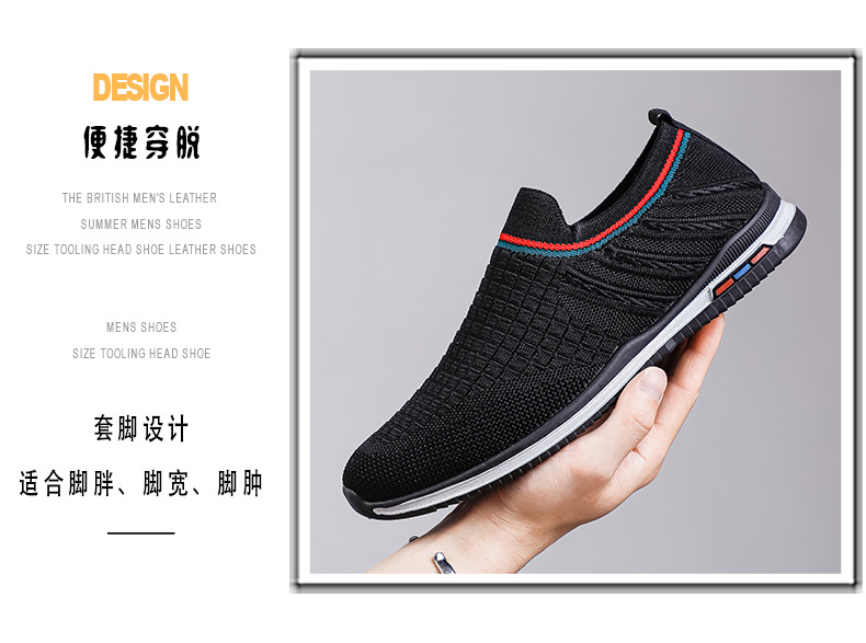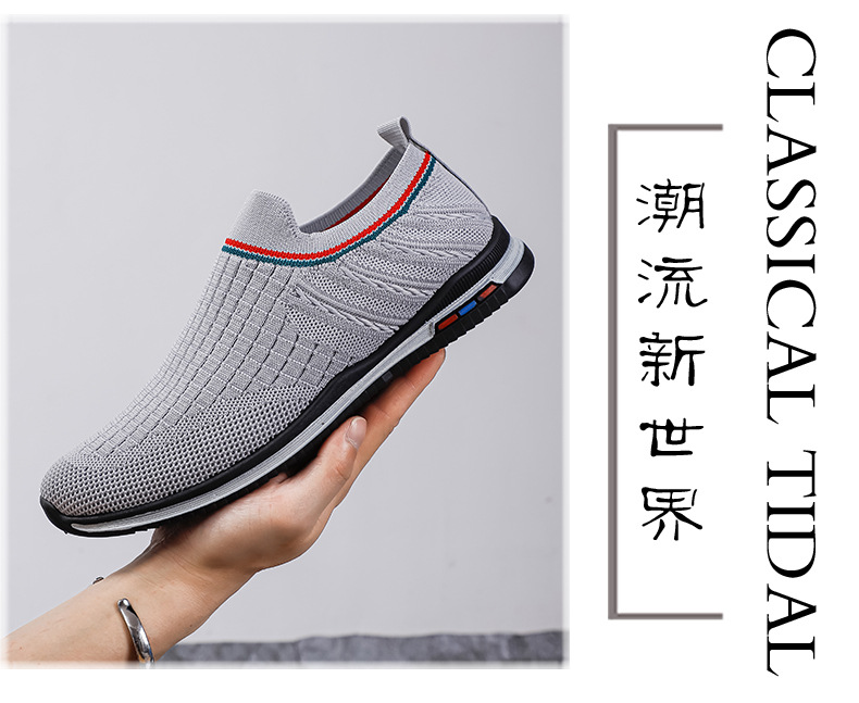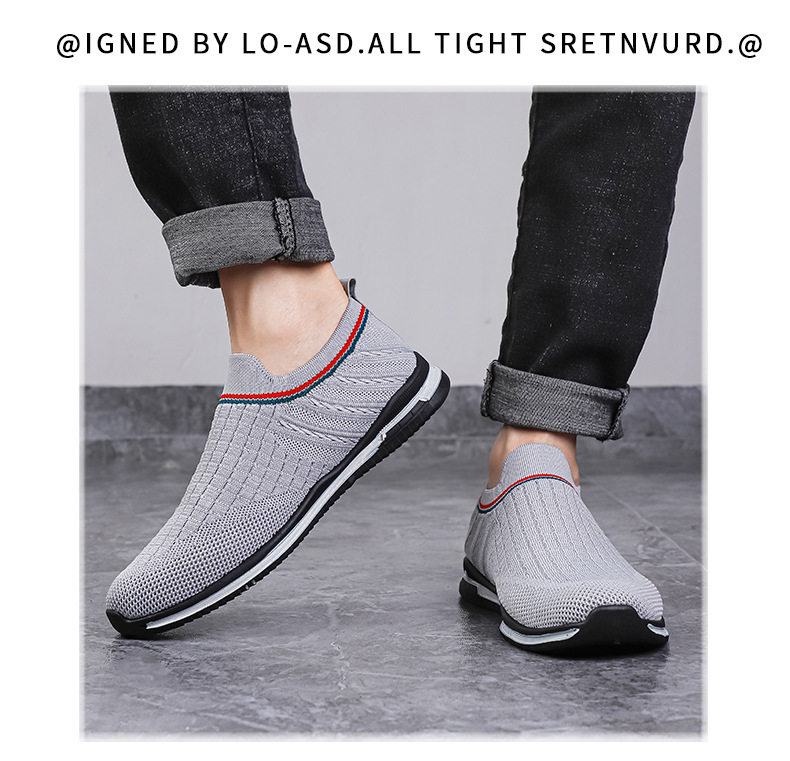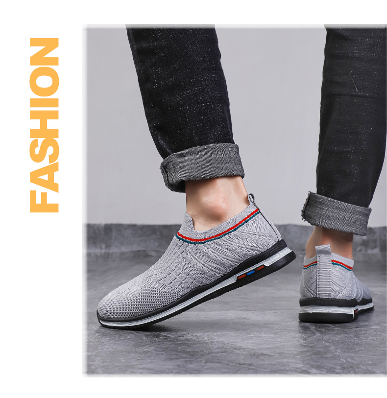 여름용 플라이니트 메쉬 남성화, 패셔너블하고 통기성 좋은 슬립온 운동화, 캐주얼 남성화스토어 가기