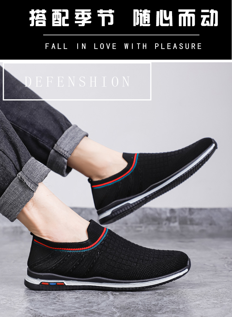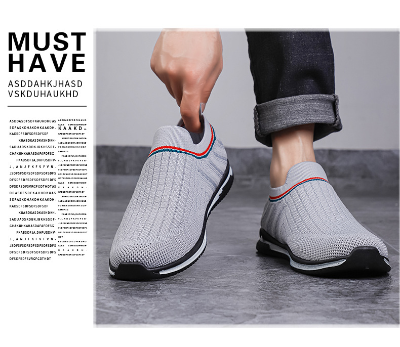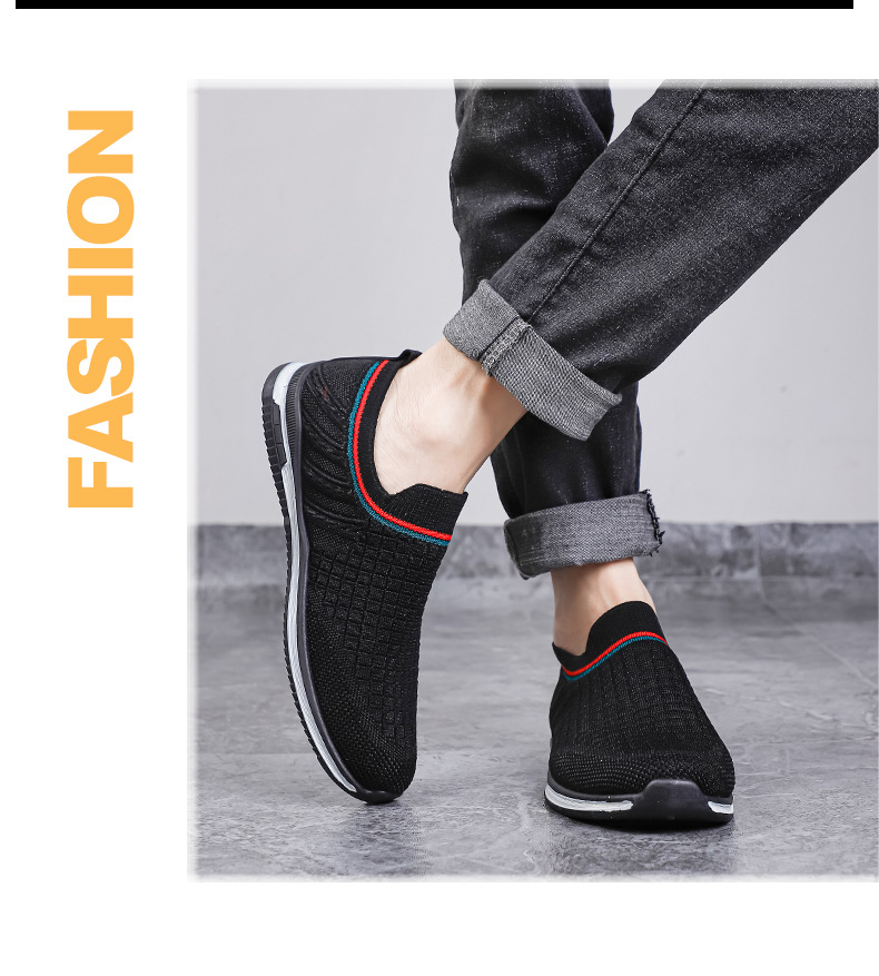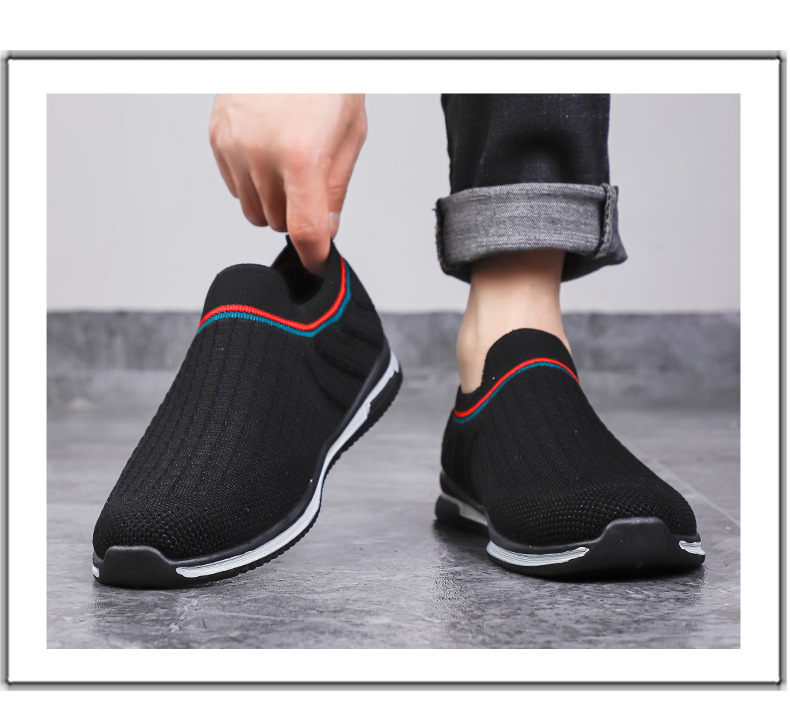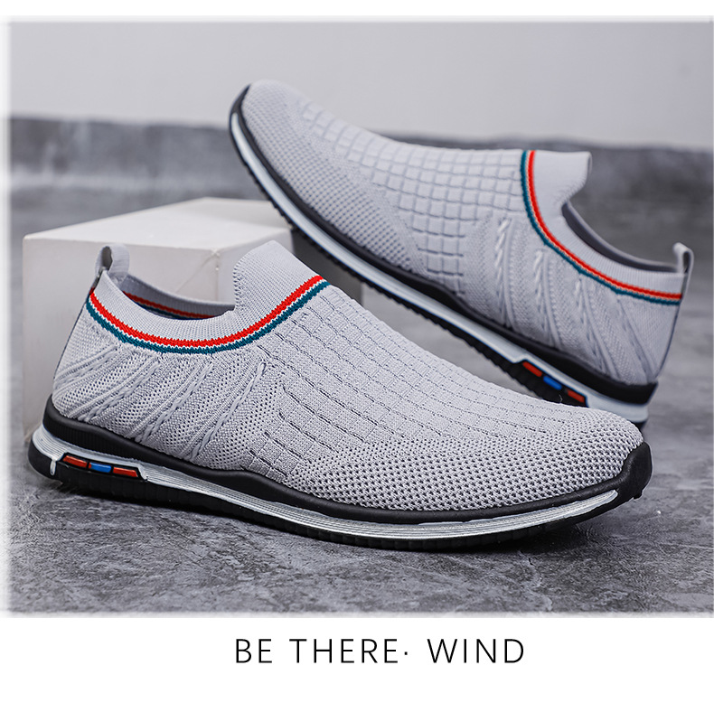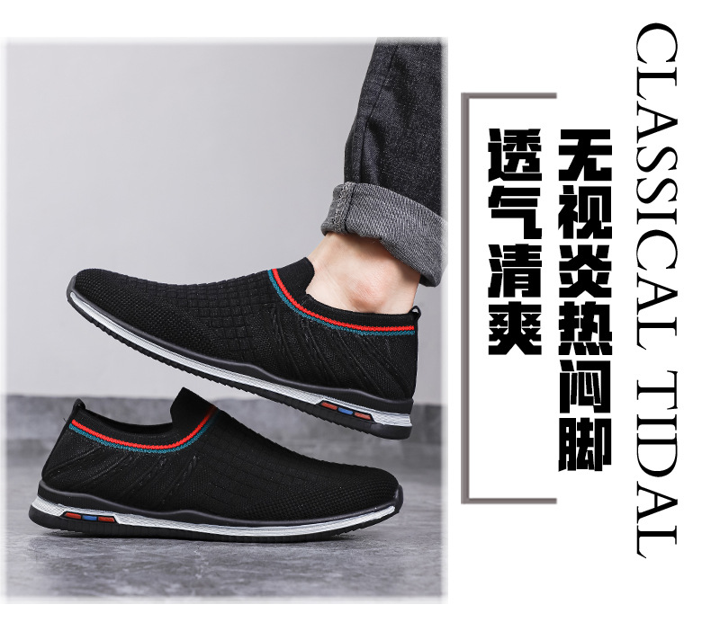 여름용 플라이니트 메쉬 남성화, 패셔너블하고 통기성 좋은 슬립온 운동화, 캐주얼 남성화스토어 가기