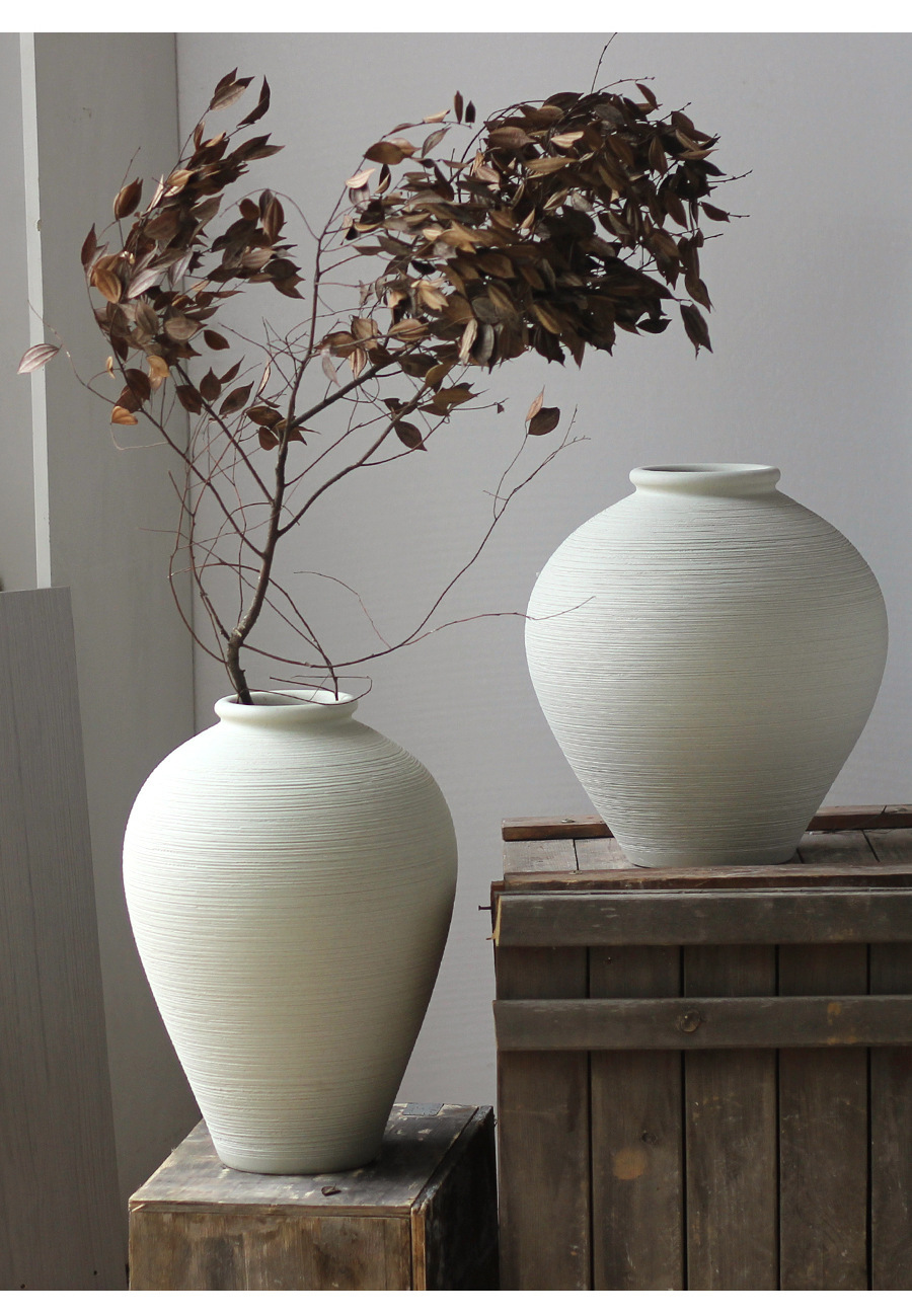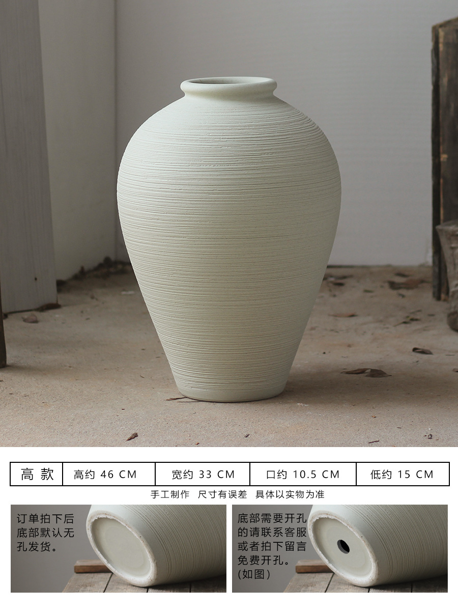 거실 말린 꽃을위한 바닥 세라믹 큰 꽃병 간단한 장식 아이보리 거실을위한 거친 도자기 냄비 새로운 장식스토어 가기
