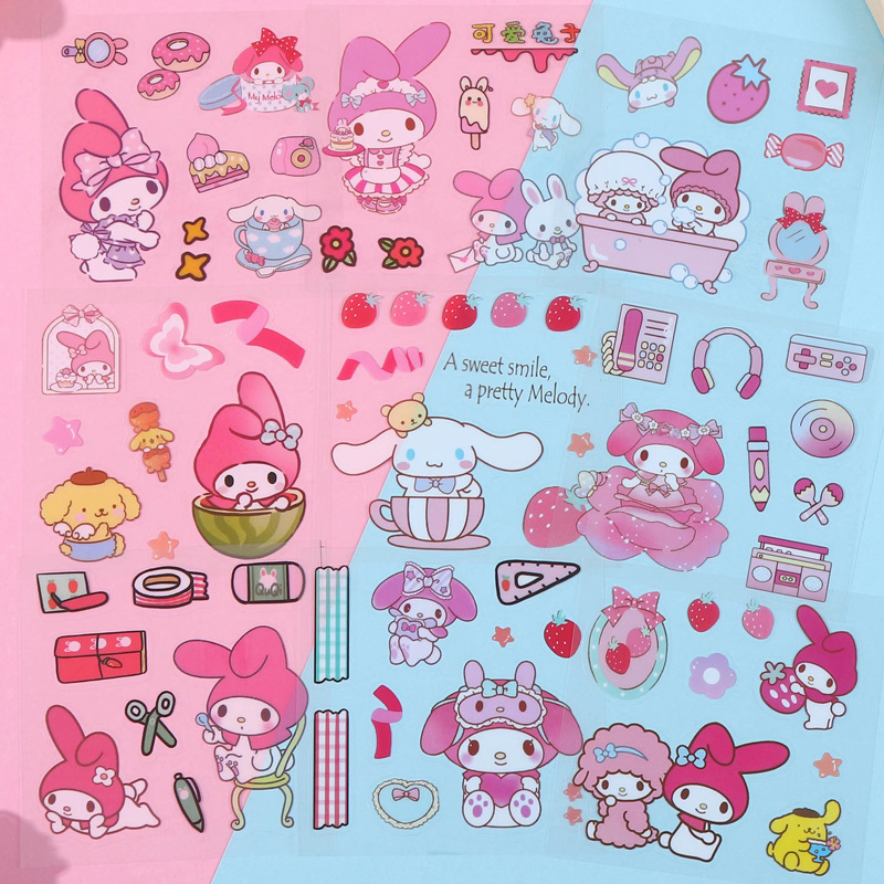 100 딸기 곰 Sanrio kulomi 멜로디 옥 개 푸딩 개 파르 치아 개 PVC 박스 손 계정 스티커