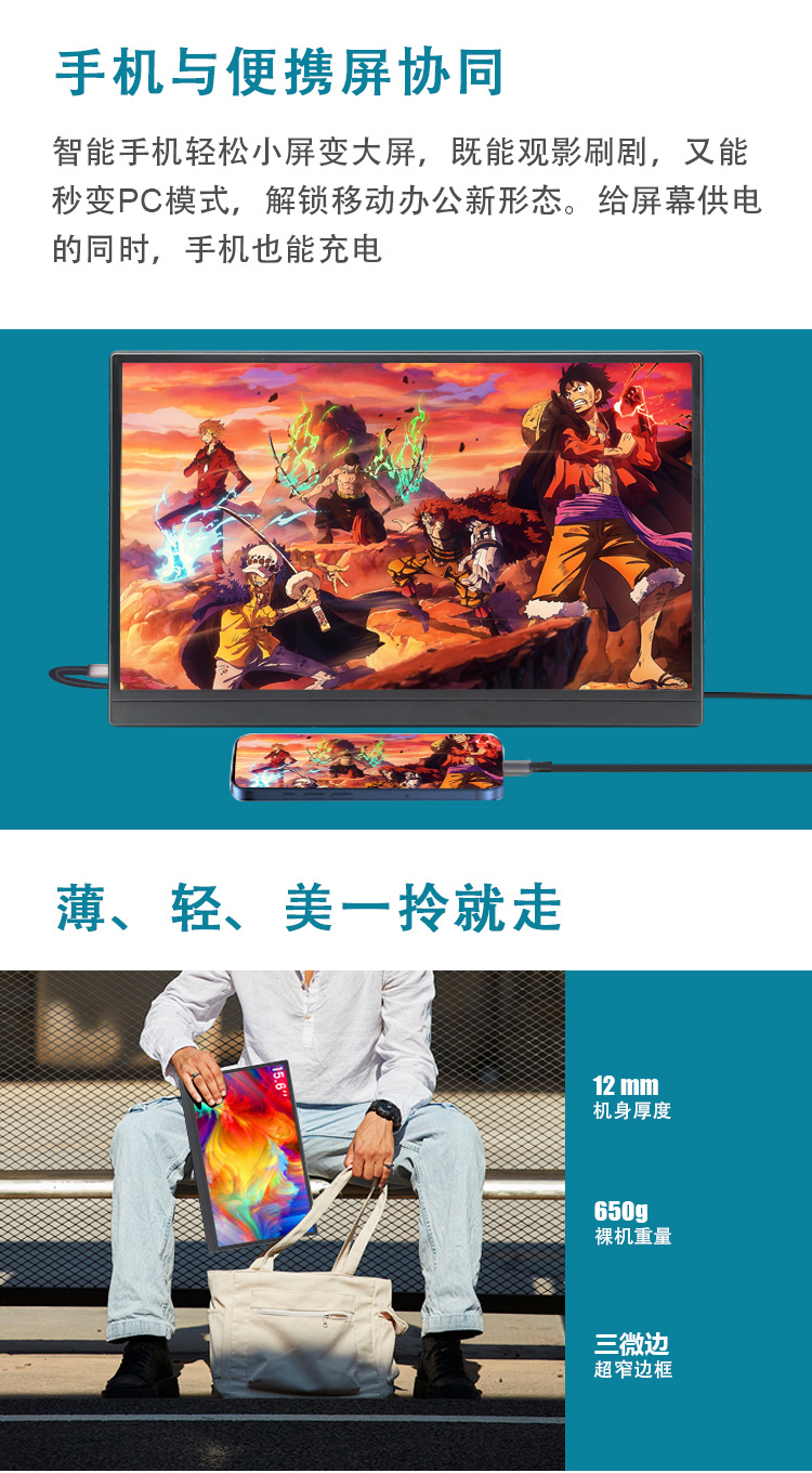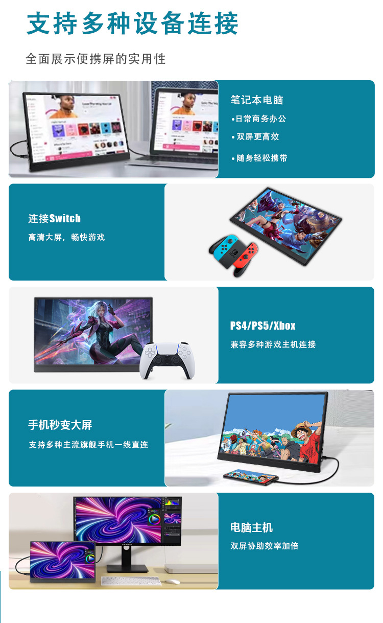 공장 재고 15.6 인치 HDMI 휴대용 모니터 휴대 전화 컴퓨터 노트북 PS4/스위치스토어 가기